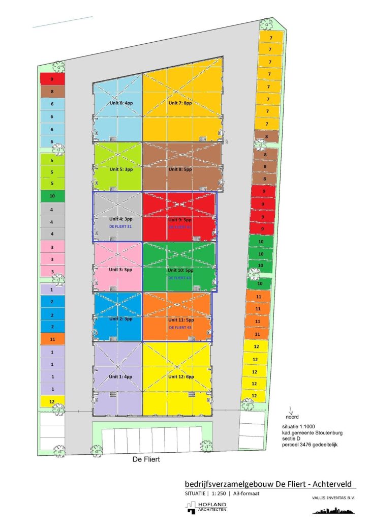 Het bedrijfsverzamelgebouw is gerealiseerd op het bedrijventerrein "De Fliert". Dit bedrijventerrein ligt aan de rand van Achterveld en is kleinschalig van karakter. Binnen circa 6 autominuten bereikt u de op- en afritten van Rijksweg A30 (Barneveld-Ede) en binnen circa 10 minuten de Rijksweg A1 (Amersfoort-Apeldoorn).