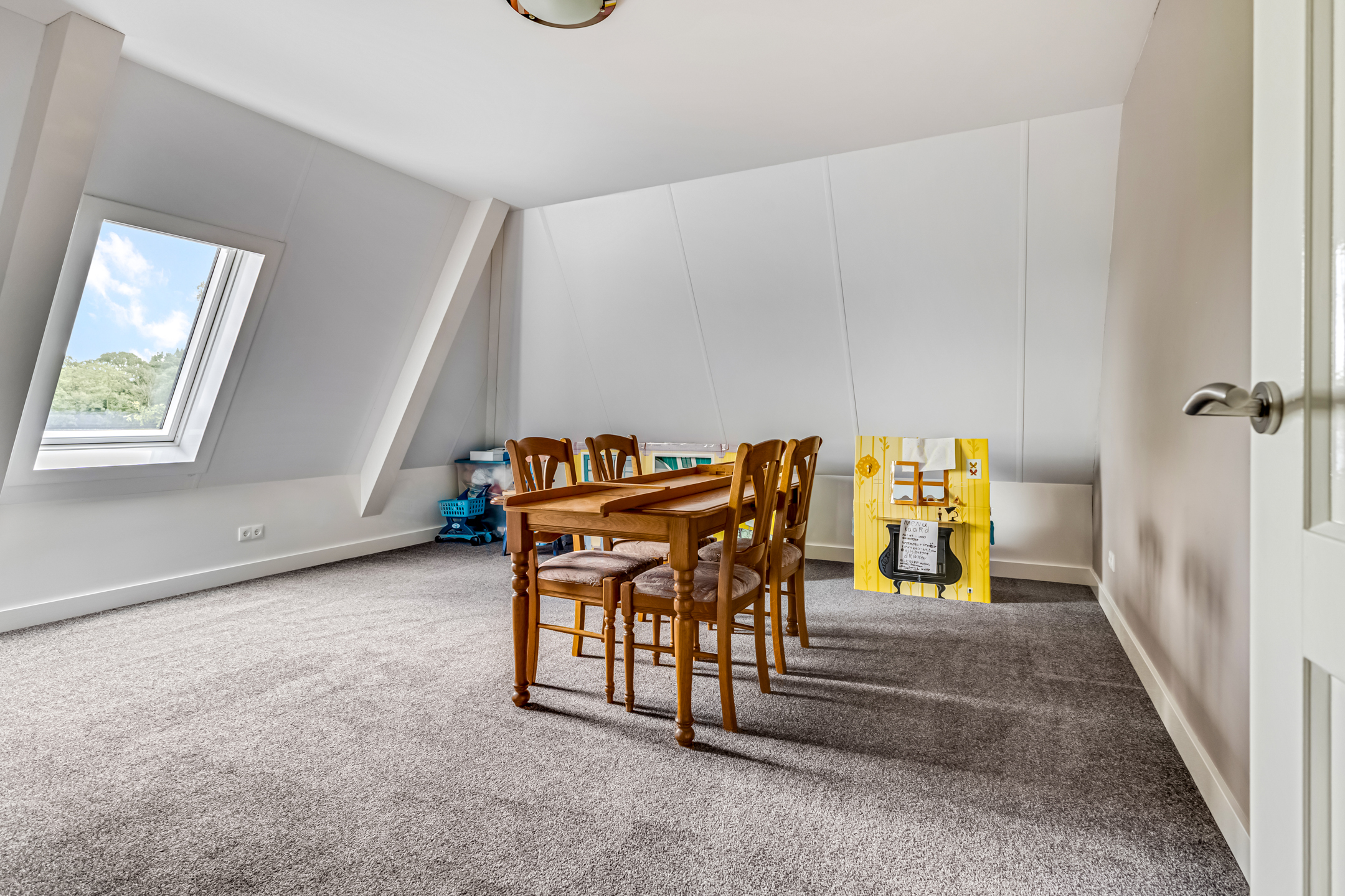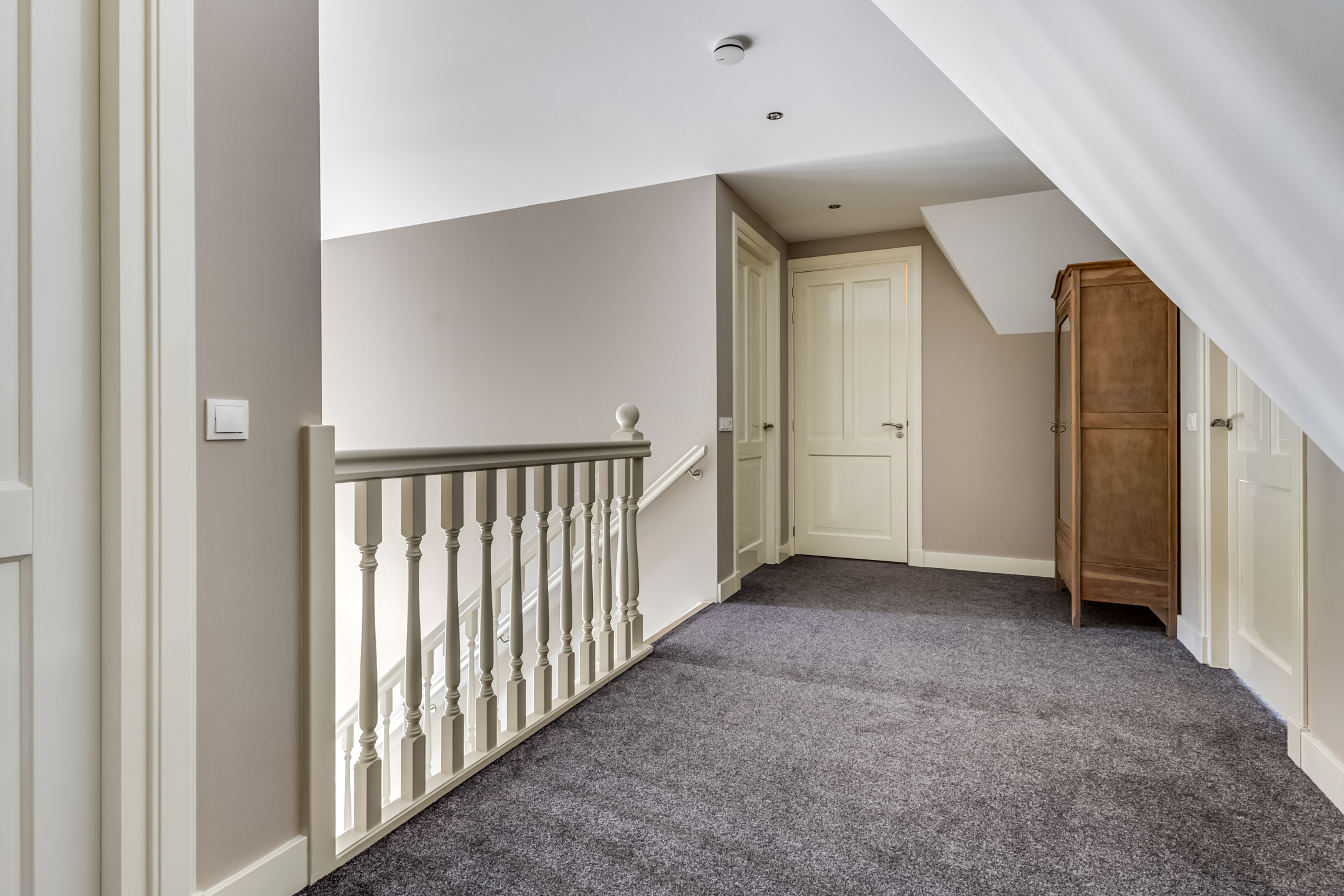 Op de eerste verdieping treft u de overloop met vide, een bergkast en drie royale slaapkamers, waarvan er één is voorzien van een vaste kastenwand. Op de gehele eerste etage is vloerbedekking aangebracht.