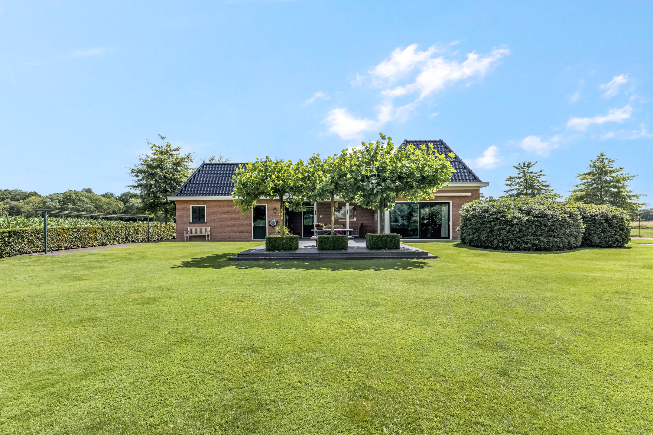 Het landelijke keukenblok met granieten blad is van alle gemakken voorzien, zoals onder andere een inductie-kookplaat, afzuigkap, heteluchtoven/magnetron, vaatwasser en koelkast. De woonkeuken biedt voldoende ruimte voor het plaatsen van een grote eetkamertafel voor het hele gezin en staat via een grote schuifpui in verbinding met de tuin en overkapping. De grote schuifpui geeft niet alleen prachtig zicht op de tuin en achterliggende landerijen, maar ook veel lichtinval in de ruimte.