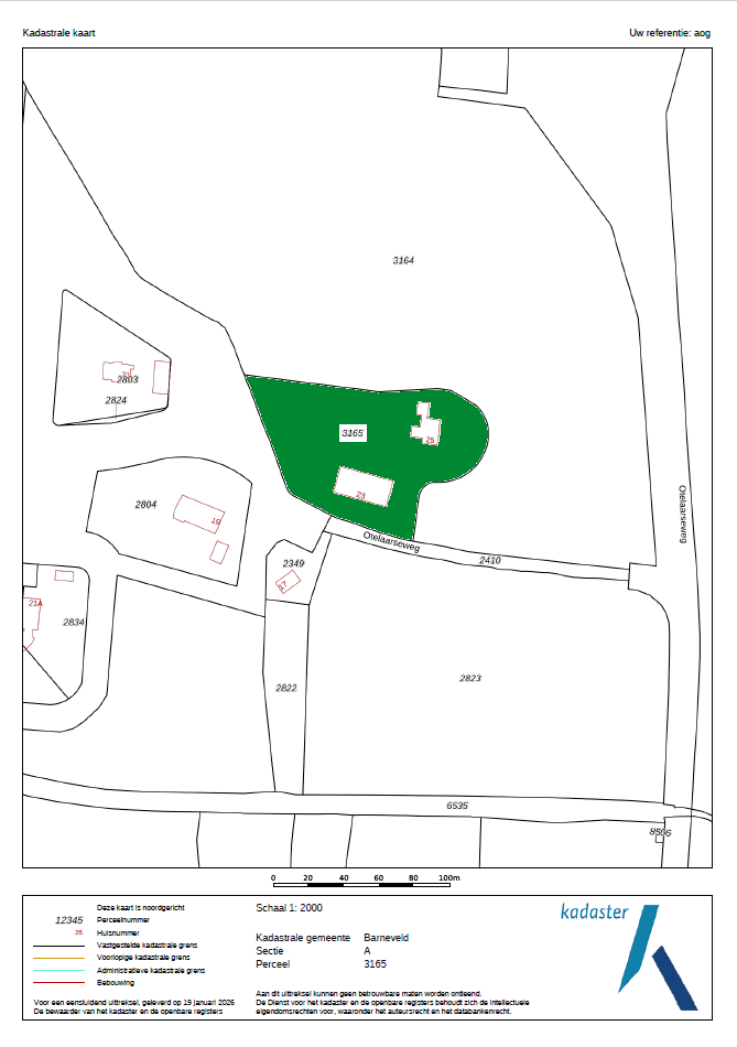 Het perceel is kadastraal bekend gemeente Barneveld, sectie A, nummers 3165, groot ca. 8130 m².