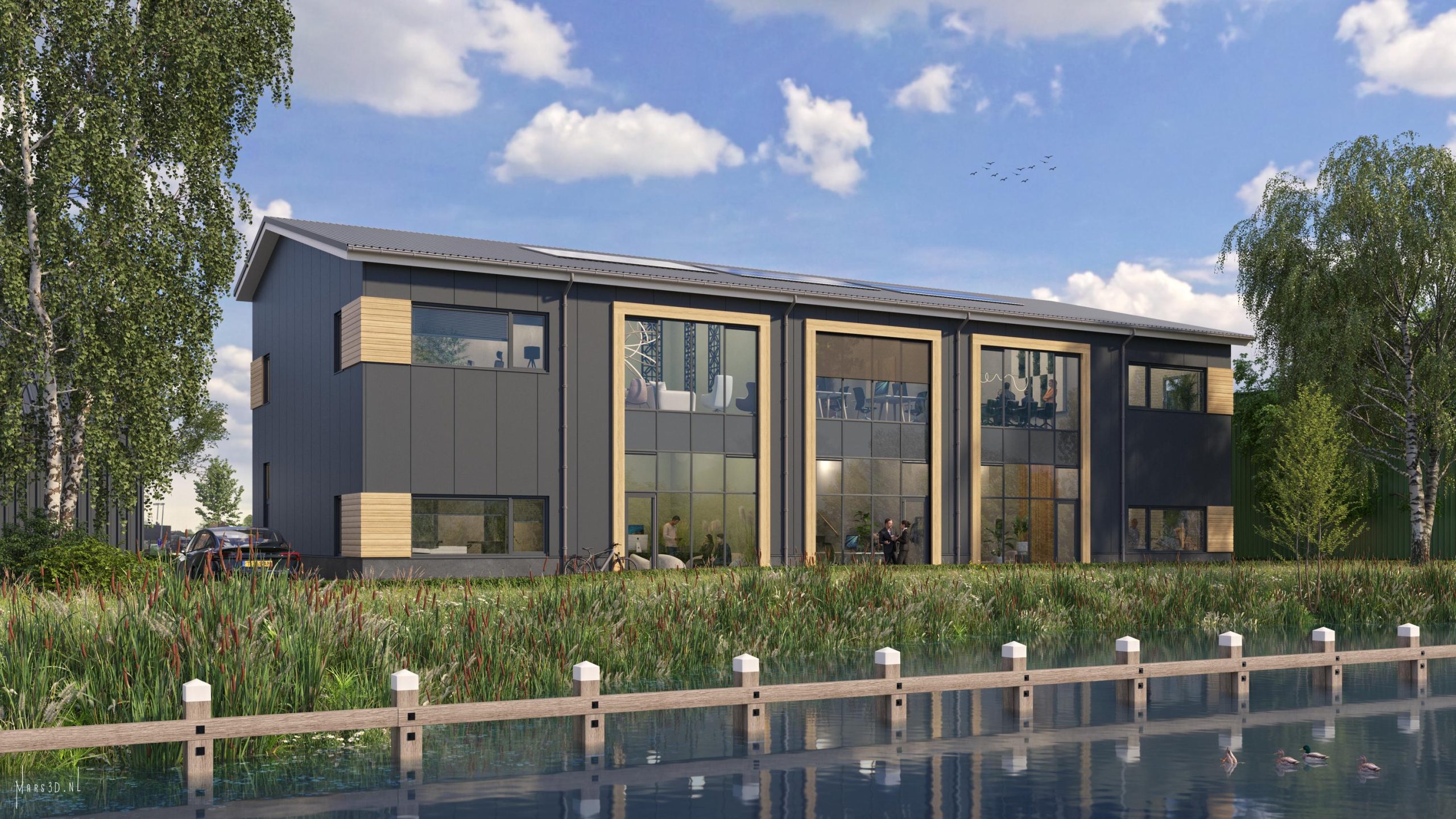 Bedrijfsgebouwen die worden gerealiseerd aan de Holterweg 2 te Deventer.
