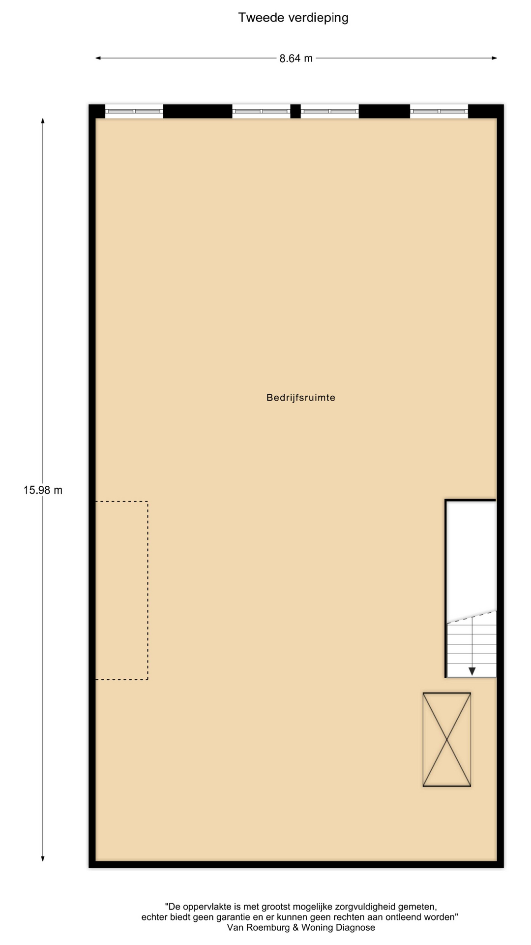 - Monoliet afgewerkte betonvloer op de begane grond met een maximale vloerbelasting van 2.500 kg/m²