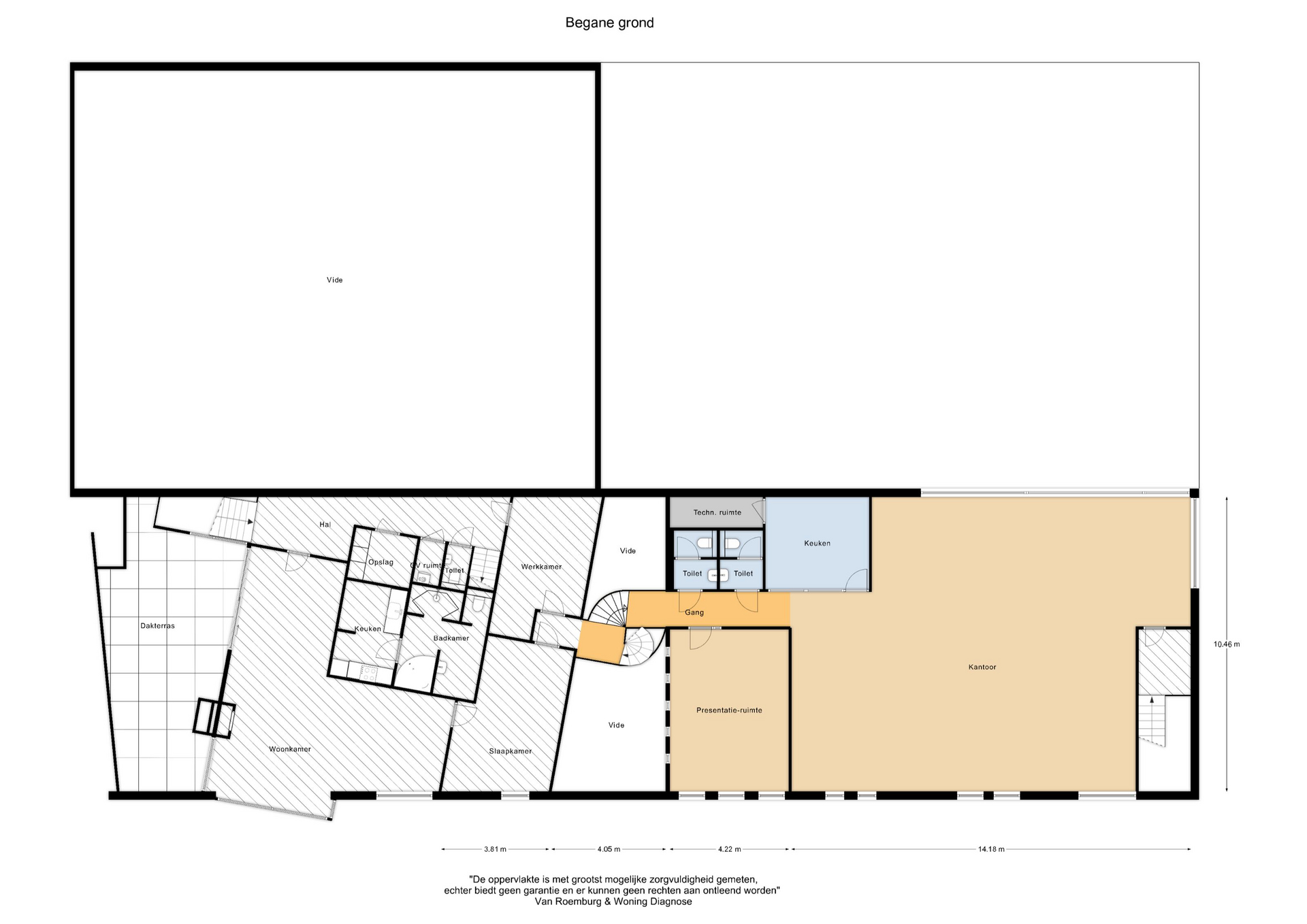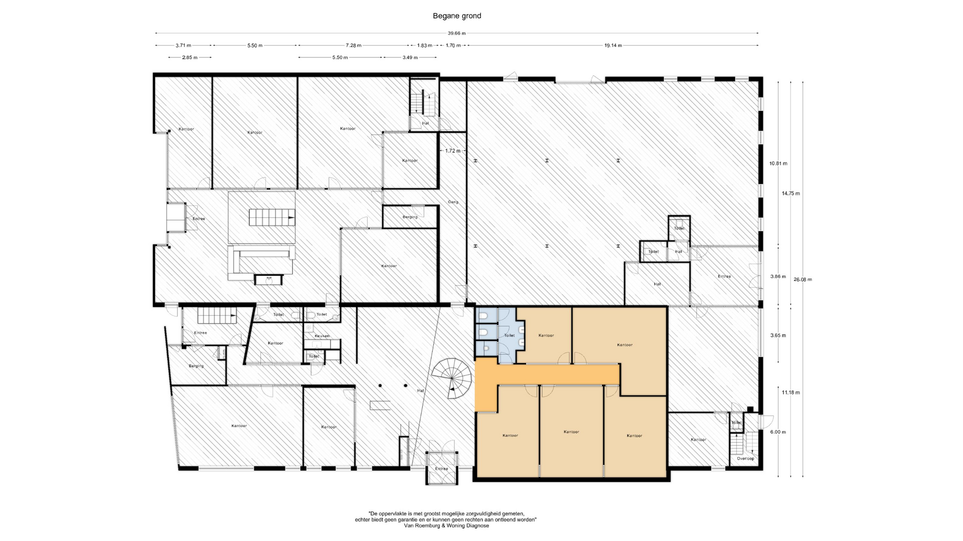 Circa 375 m² verdeeld over de begane grond en de 1e verdieping.
