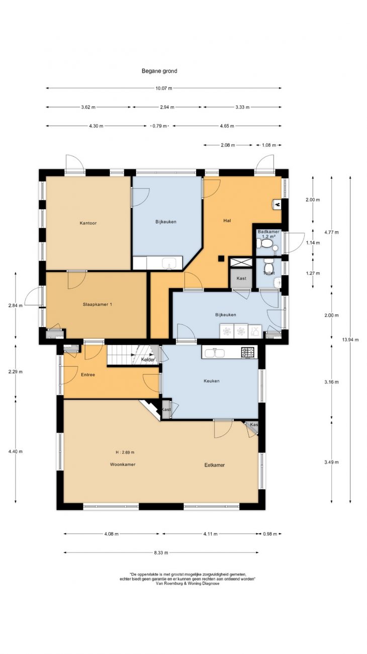 Begane grond: via de hoofdentree komt u de woning aan de zijkant binnen. In de hal bevindt zich de meterkast en de trapopgang naar de eerste verdieping.