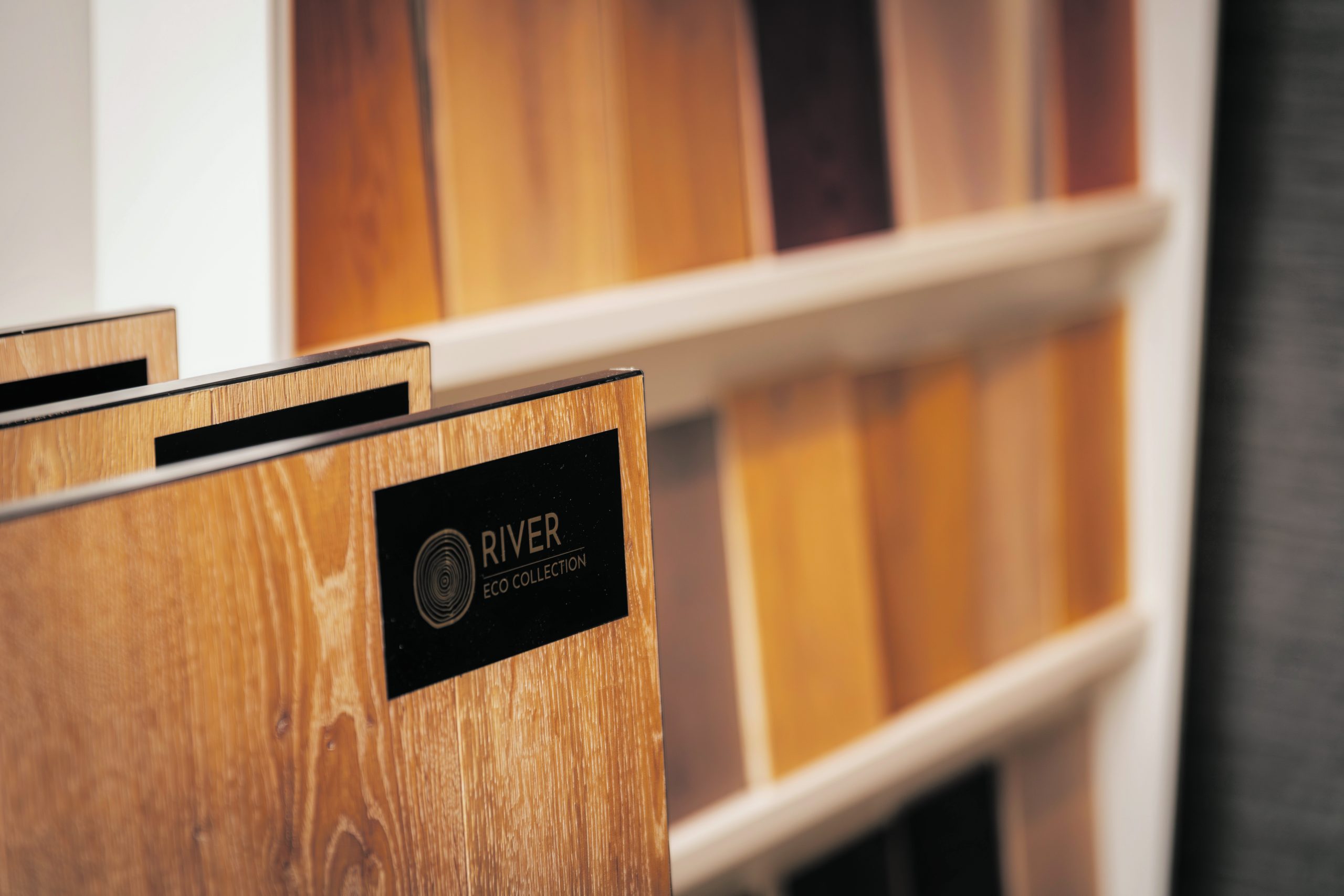 Geen schap vol duizend opties, maar een doordachte selectie. Dat is het idee. “We kiezen bewust voor merken waar we achter staan”, vertelt verkoopadviseur Arjan Ansink. Zoals Parky, een echte houten vloer met een heel dun fineer toplaagje van 0,6 millimeter. Het product combineert de voordelen van pvc – onderhoudsarm en praktisch – met de natuurlijke uitstraling van echt hout. “Als ik van een gewone houten vloer 100 vierkante meter zou willen maken, kost me dat ongeveer 5 kuub ruw hout. Uit diezelfde 5 kuub ruw hout haal ik 3.500 vierkante meter fineervloer”, vertelt Van Dam over de duurzaamheidsvoordelen.
