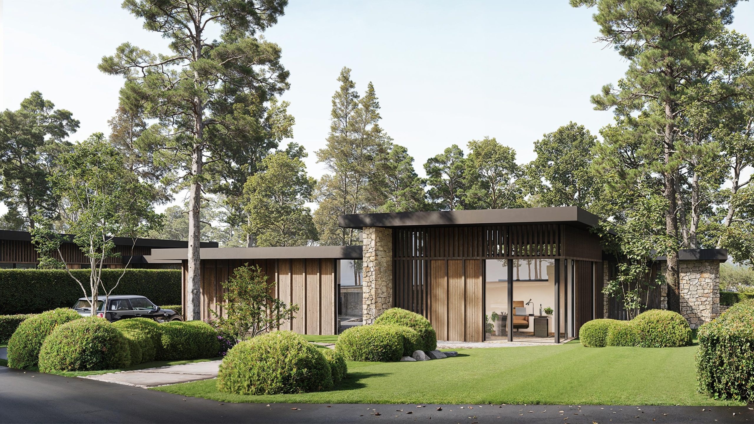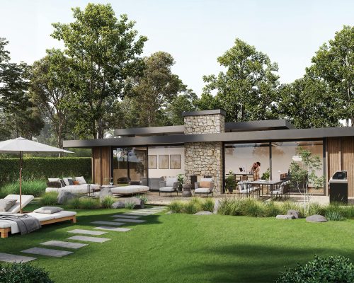 De woningen zijn ontworpen met liefde voor architectuur en een diepe waardering voor het landschap. Domi Architecture liet zich inspireren door boslodges en schuurwoningen, met veel gebruik van natuurlijke materialen zoals Thermo Fraké hout, natuursteen en grote glasvlakken. Eigentijds, duurzaam en volledig klaar voor morgen.
