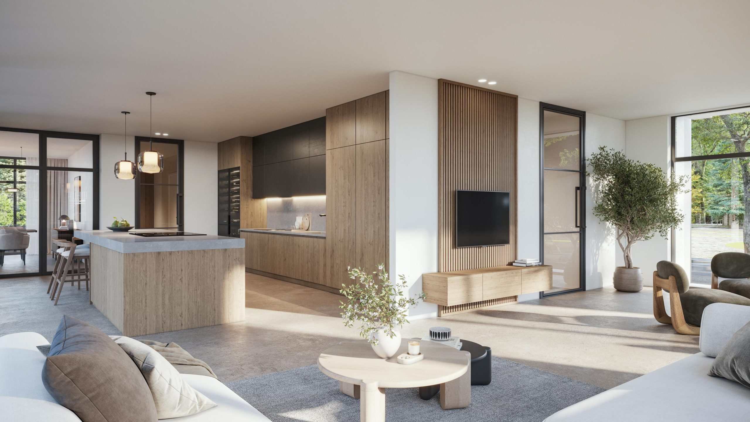 Exclusief wonen op drie woonlagen, ontworpen om volledig op te gaan in de bosrijke omgeving van De Lierdermarke.