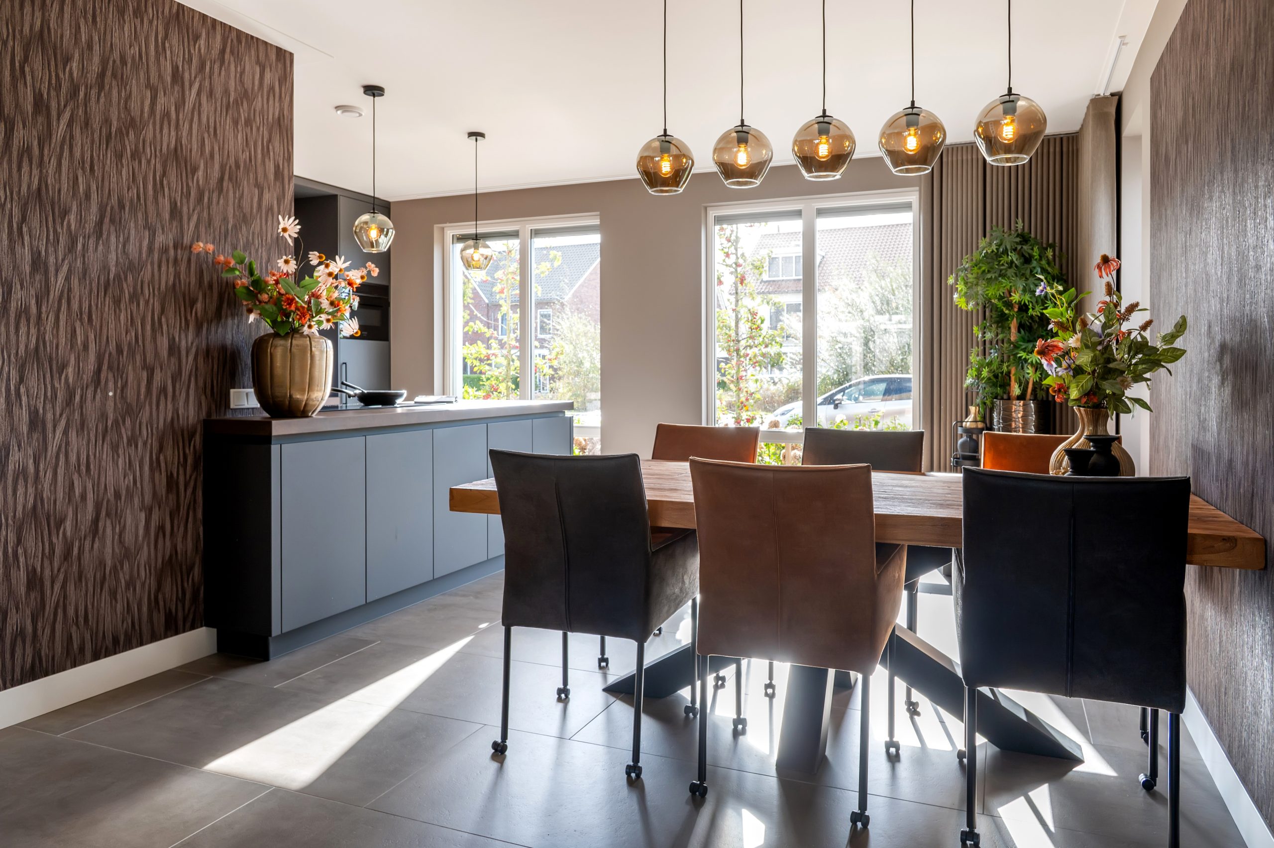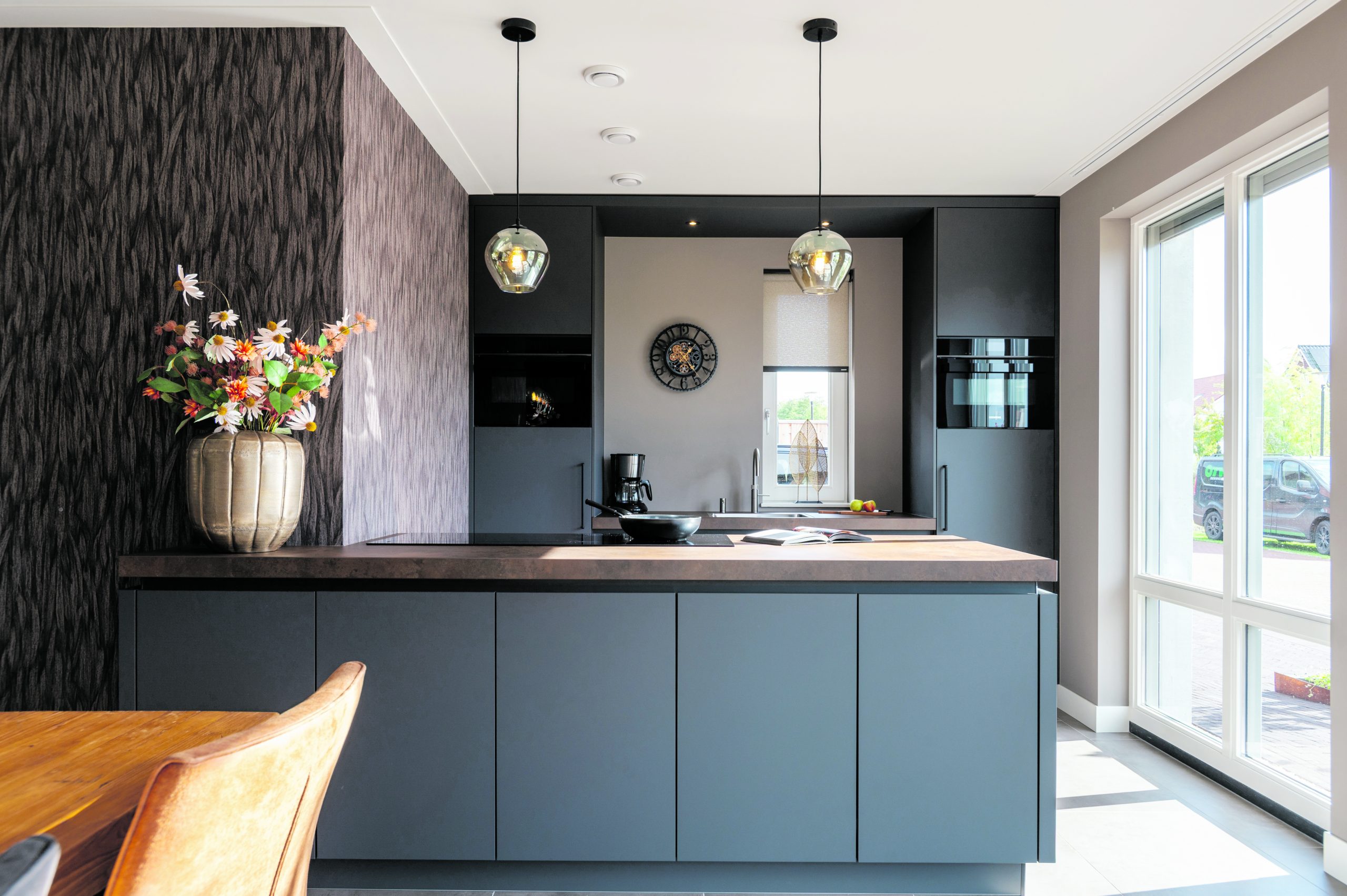 Herma wilde graag een kookeiland, maar was bang dat het niet zou passen. Hars: “Als je een eiland in het midden van een ruimte zet, heb je aan beide kanten zeker een meter loopruimte nodig. Dat was in hun nieuwe woning niet haalbaar. Daarom hebben we gekozen voor een creatieve oplosing. Een schiereiland dat met één zijde tegen de wand staat, met een slimme hoek erin. Zo konden we toch een open uitstraling creëren.” Herma is er nog steeds enthousiast over: “Die hoek maakt het ook weer net even anders. Het geeft extra kastruimte én het voelt als een los meubel. Het klopt gewoon.”