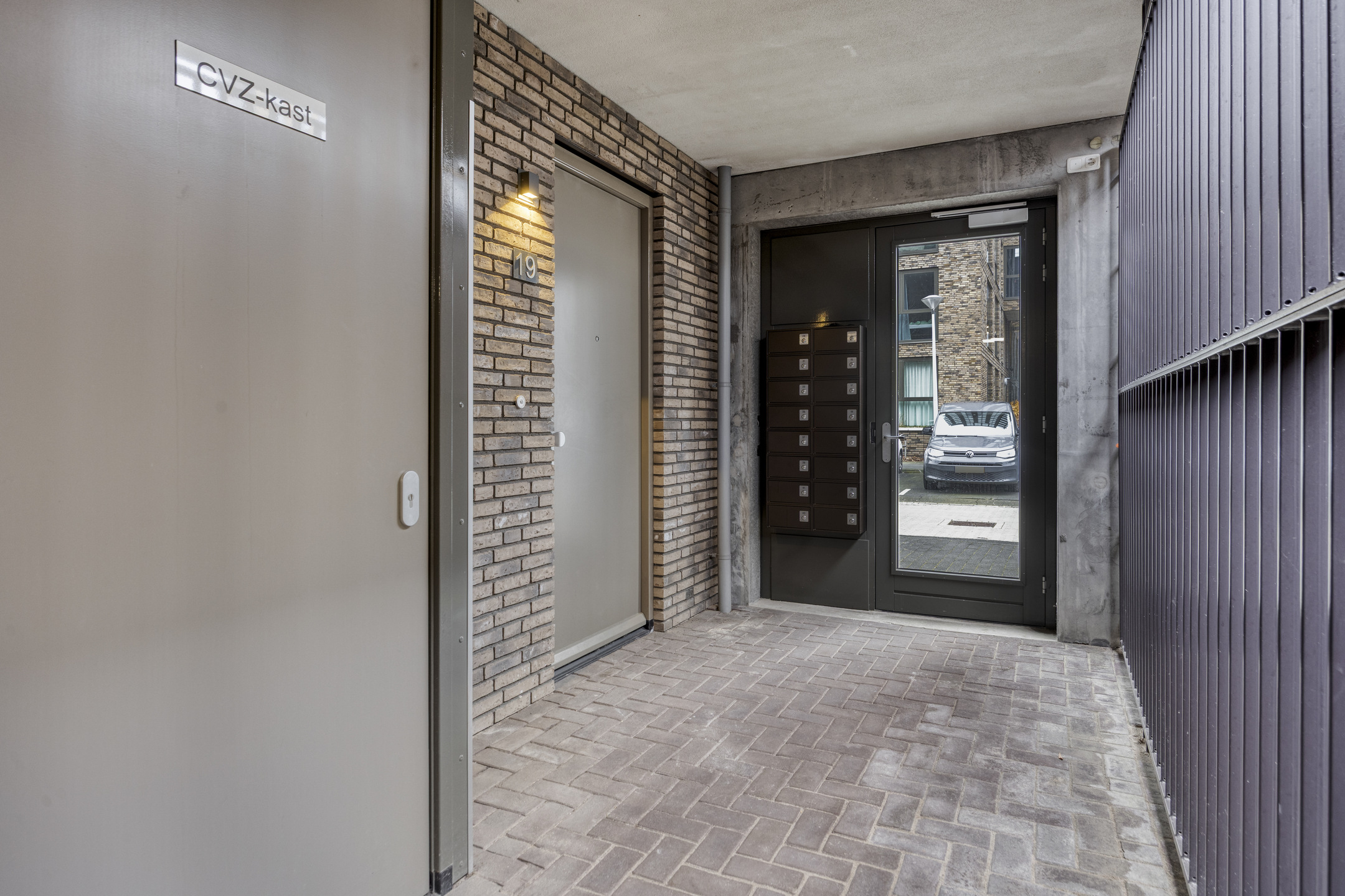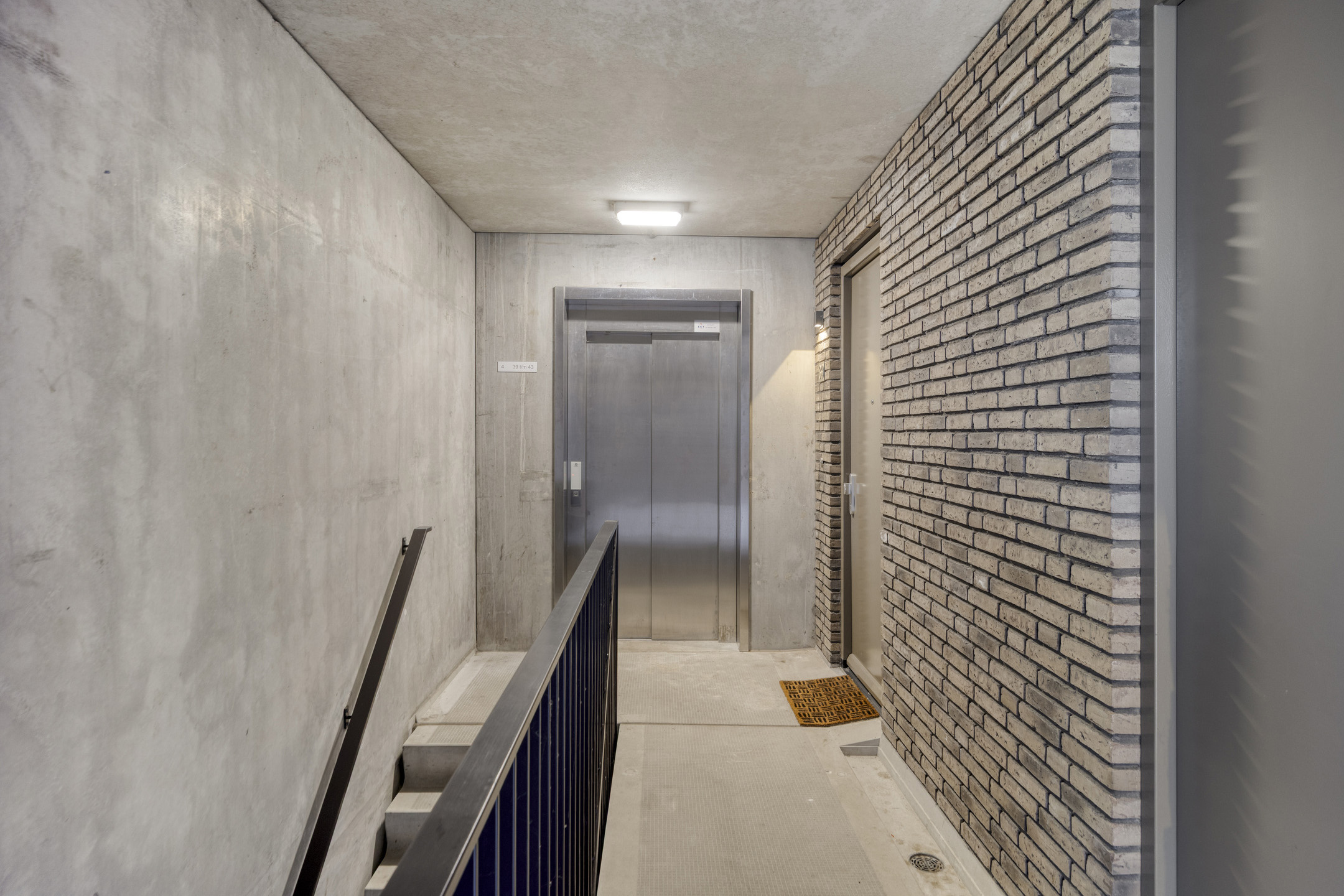 Naast het Franse balkon aan de woonkamer bevindt zich aan de voorzijde van het appartement een gezamenlijk balkon: een fijne plek voor een kop koffie in de zon of een goed gesprek met de buren. Voor je fiets is er plek in de gezamenlijke fietsenstalling op de begane grond.