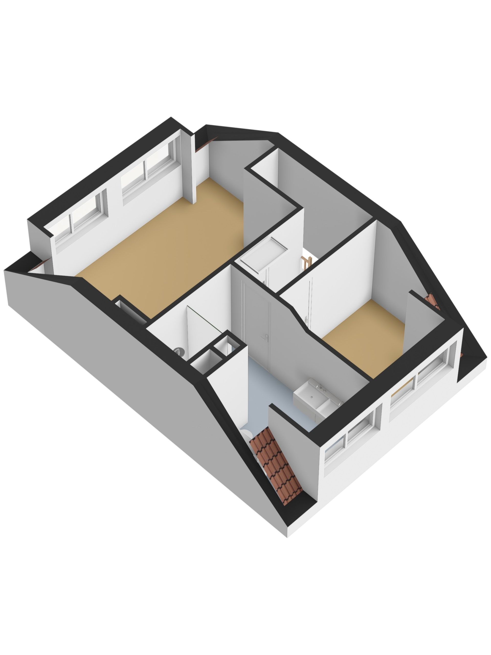 Op de verdieping bevinden zich twee slaapkamers, beide voorzien van een dakkapel voor extra ruimte en veel daglicht. De master bedroom is ruim en comfortabel. De tweede slaapkamer is iets kleiner, perfect in de richten als kinderkamer, kantoor of hobbyruimte.