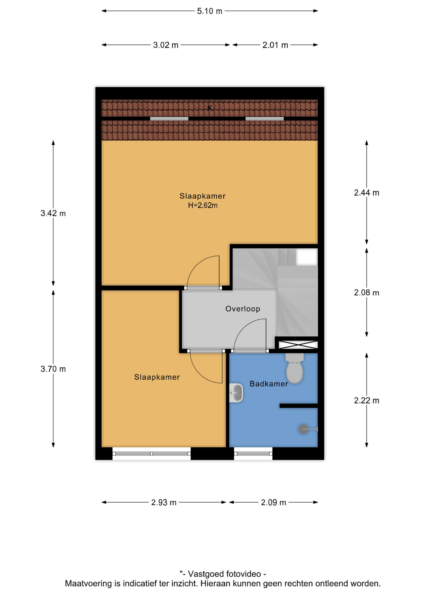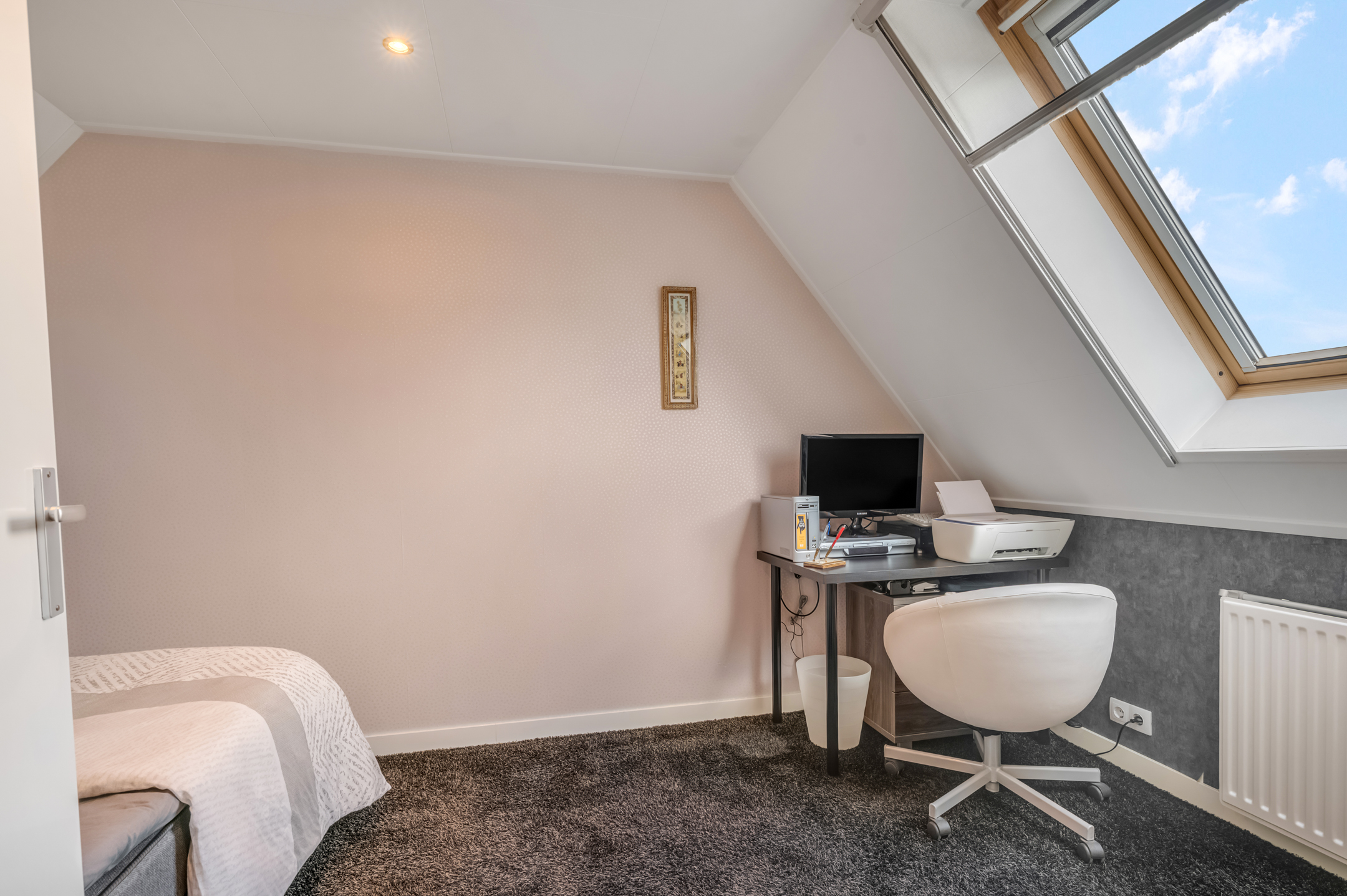 De tweede verdieping biedt een royale derde slaapkamer. Op de overloop bevindt zich de C.V. ketel en witgoedaansluiting.