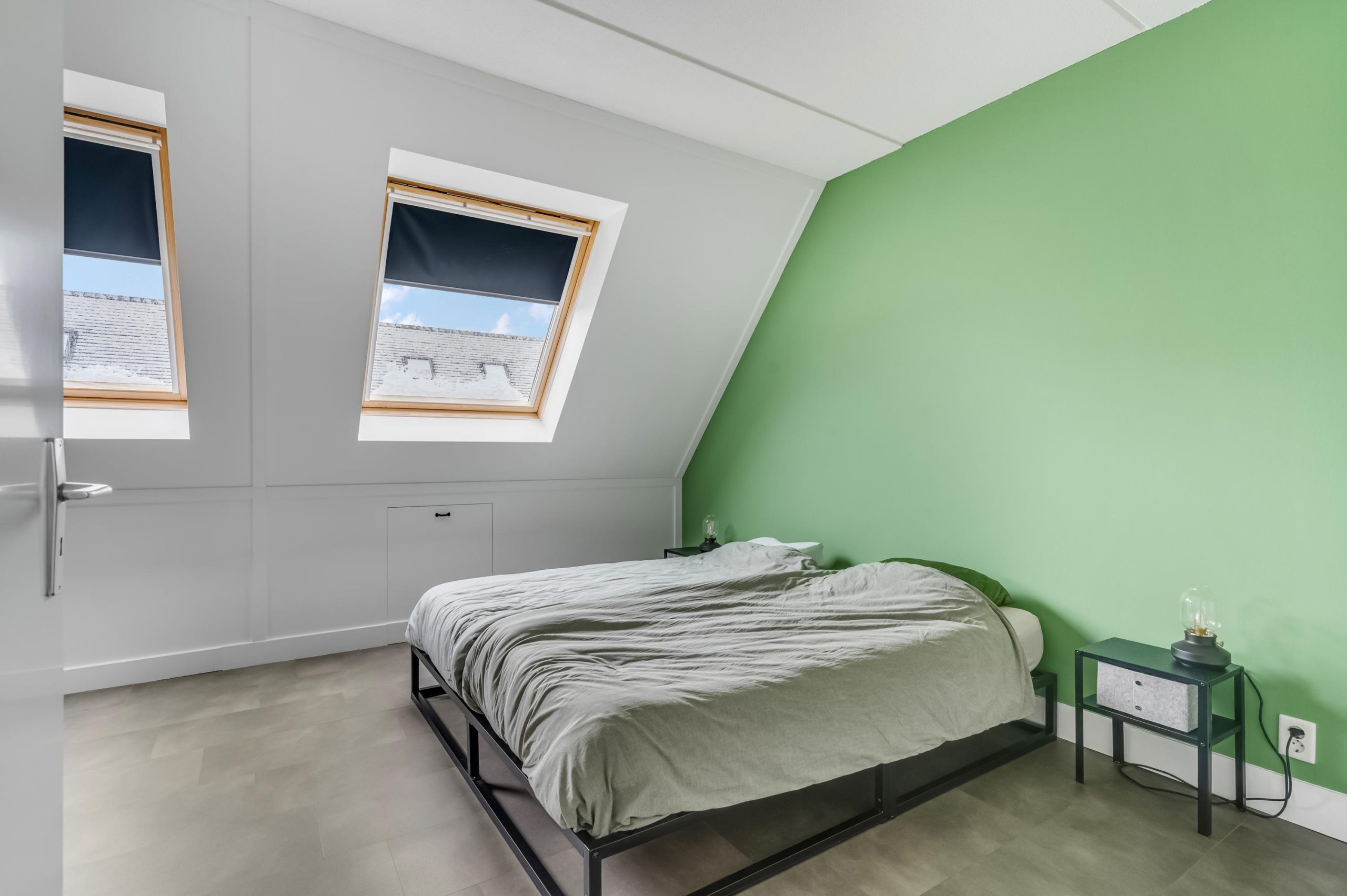 De tweede verdieping biedt nog eens twee volwaardige kamers. Ideaal voor een groter gezin, logees of werken vanuit huis. Een van de kamers beschikt over een dakraam. Op de overloop vind je de aansluiting voor de wasmachine en via de knieschotten en de vliering is er volop bergruimte aanwezig.