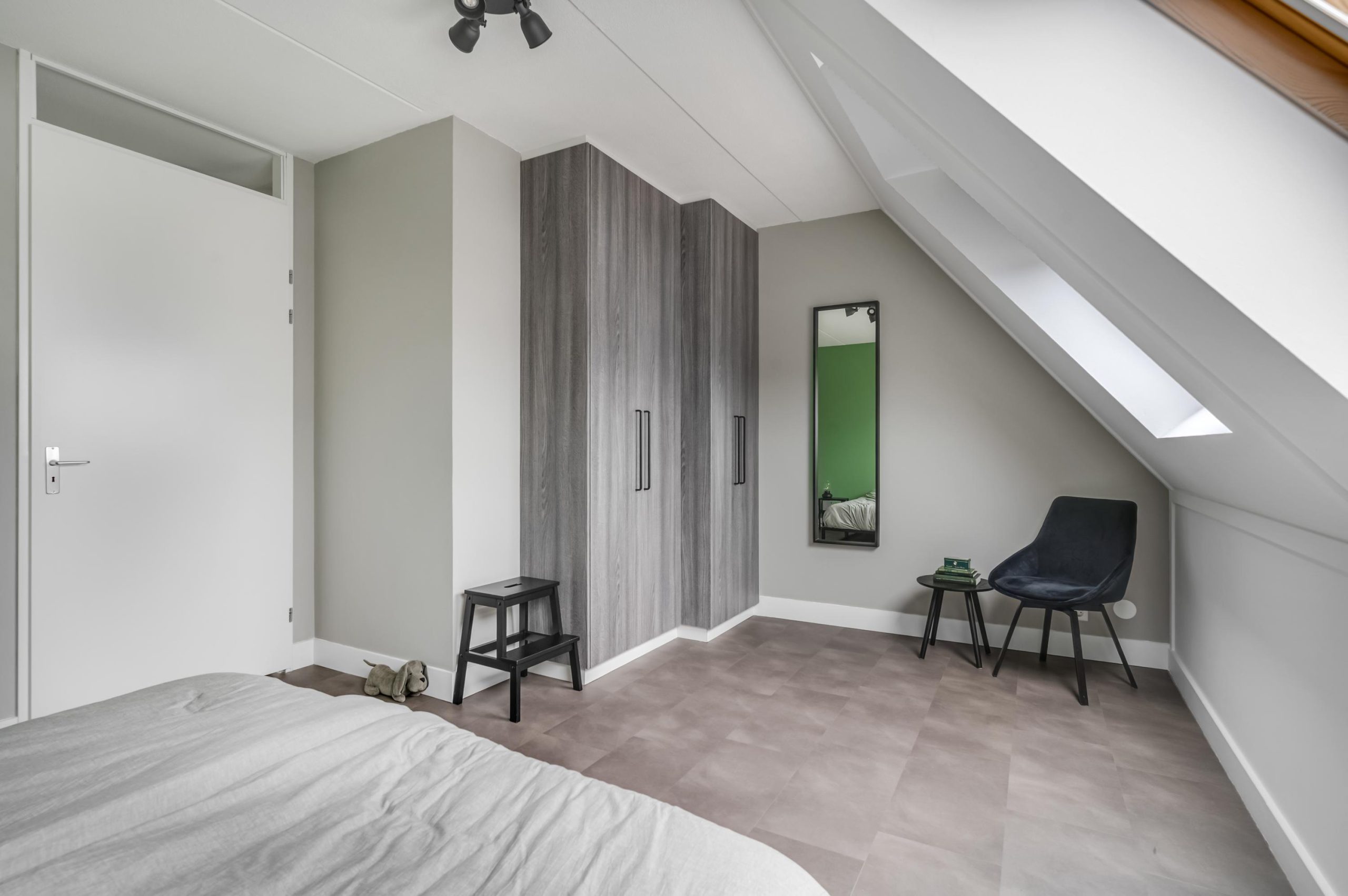 Op de eerste verdieping tref je twee goed bemeten slaapkamers en een badkamer. De ouderslaapkamer is opvallend ruim en voorzien van twee grote dakramen die zorgen voor veel lichtinval en vasten kasten. Ook de tweede kamer is perfect te gebruiken als kinderkamer, werkruimte of hobbyplek.