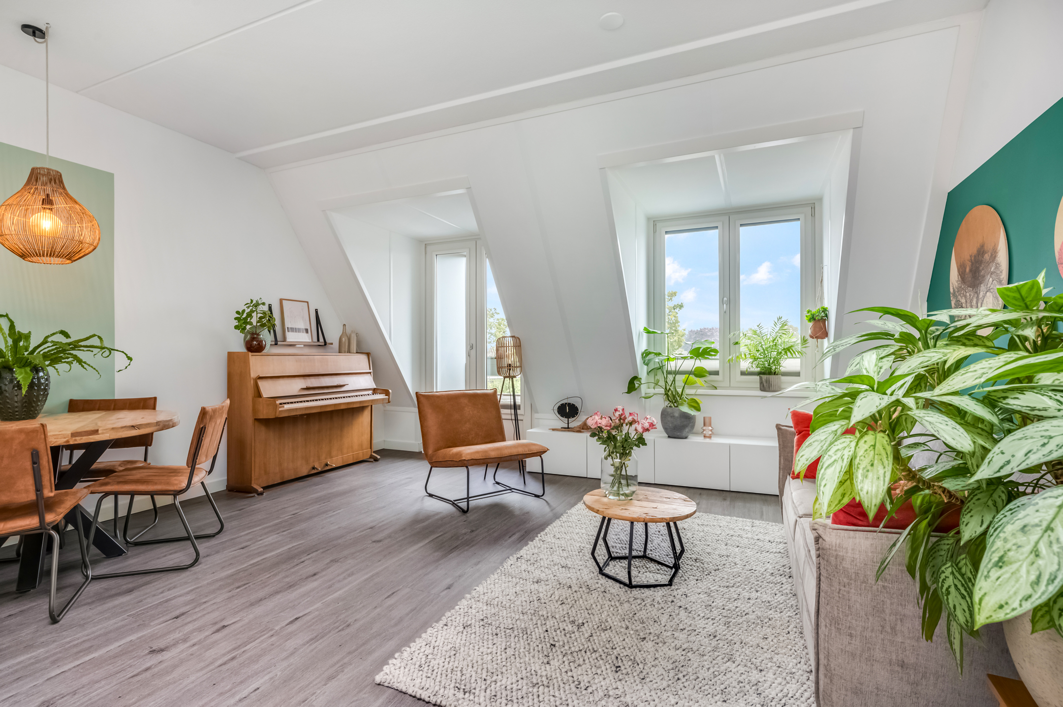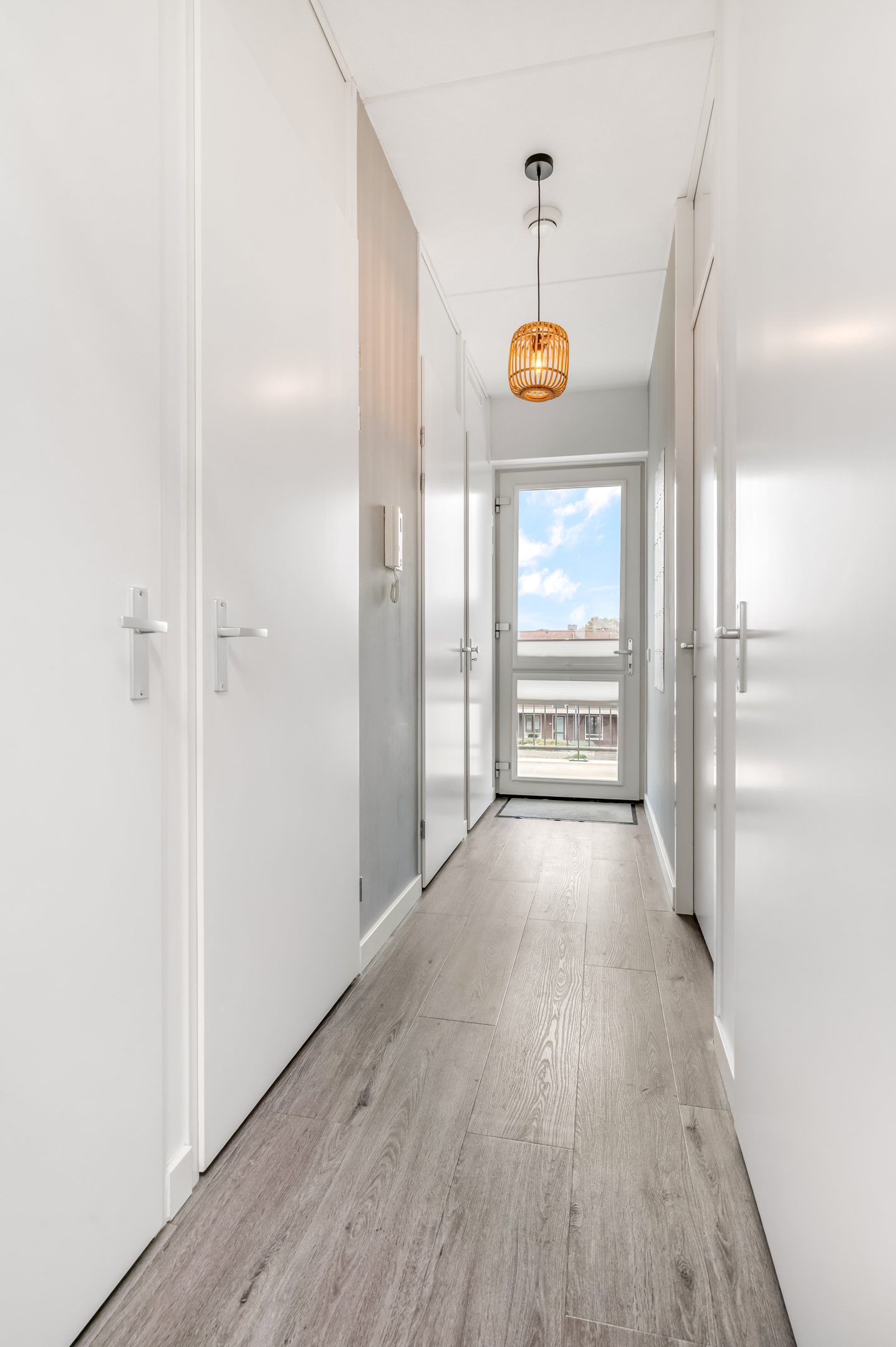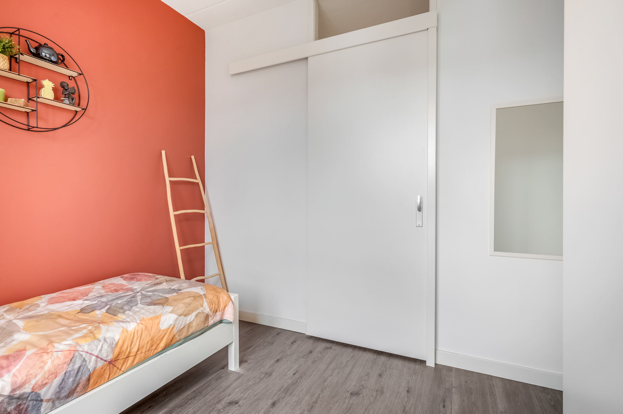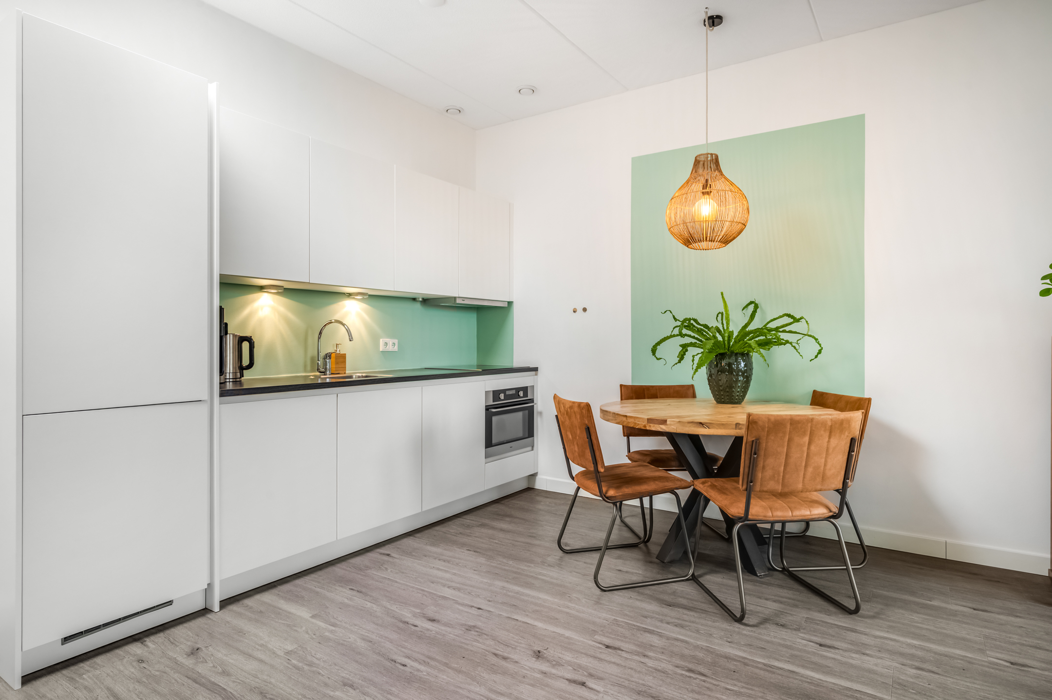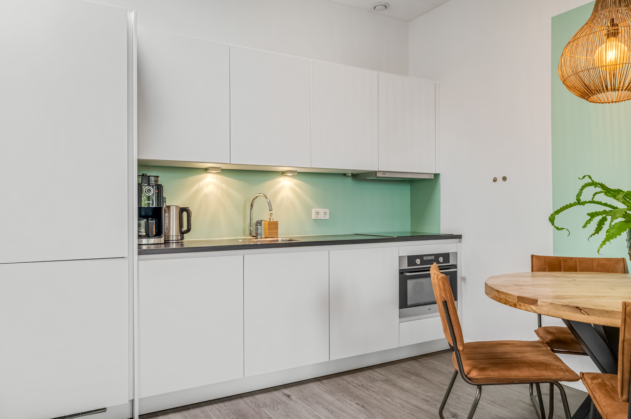 De woonkamer is een heerlijke leefruimte met een moderne PVC-vloer en volop daglicht dankzij de speelse raampartijen én een lichtstraat in het plafond. Een uniek detail dat zorgt voor een extra ruimtelijk gevoel. Vanuit de woonkamer heb je toegang tot een klein, maar fijn balkon. Grenzend aan de woonkamer vind je de nette open keuken in een frisse kleurstelling. Voorzien van diverse inbouwapparatuur en voldoende kastruimte. De eethoek biedt plek voor een gezellige maaltijd of een borrel met vrienden. De slaapkamer is compact maar praktisch ingedeeld. De warme kleur op de wand zorgt voor een knusse sfeer. Wat dit appartement extra fijn maakt, is de ensuite badkamer: modern afgewerkt en voorzien van een inloopdouche, wastafelmeubel, wasmachineaansluiting en een extra hoge kast. Comfortabel en efficiënt in gebruik. In de kelder bevindt zich een eigen inpandige berging.