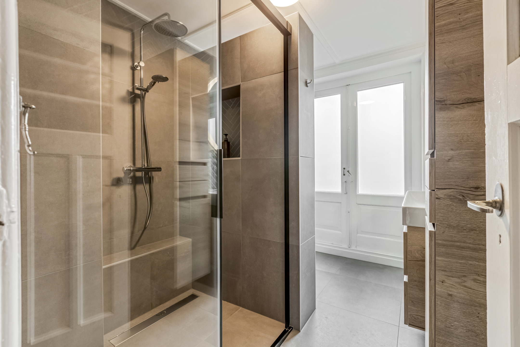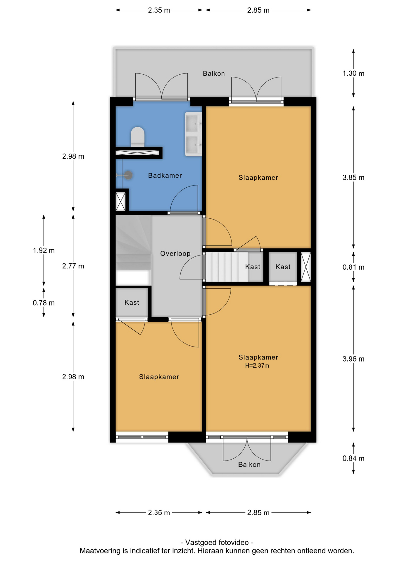 Op de eerste verdieping bevinden zich drie fijne slaapkamers. De hoofdslaapkamer is ruim, heeft veel lichtinval én toegang tot het balkon aan de achterzijde. Eén van de andere slaapkamers biedt toegang tot een tweede balkon aan de voorzijde van de woning met uitzicht op de straat. De derde kamer is praktisch inzetbaar als kinderkamer, werkruimte of hobbykamer. De moderne badkamer is smaakvol uitgevoerd met een inloopdouche, wastafelmeubel, opbergruimte en biedt eveneens toegang tot het balkon aan de achterzijde.