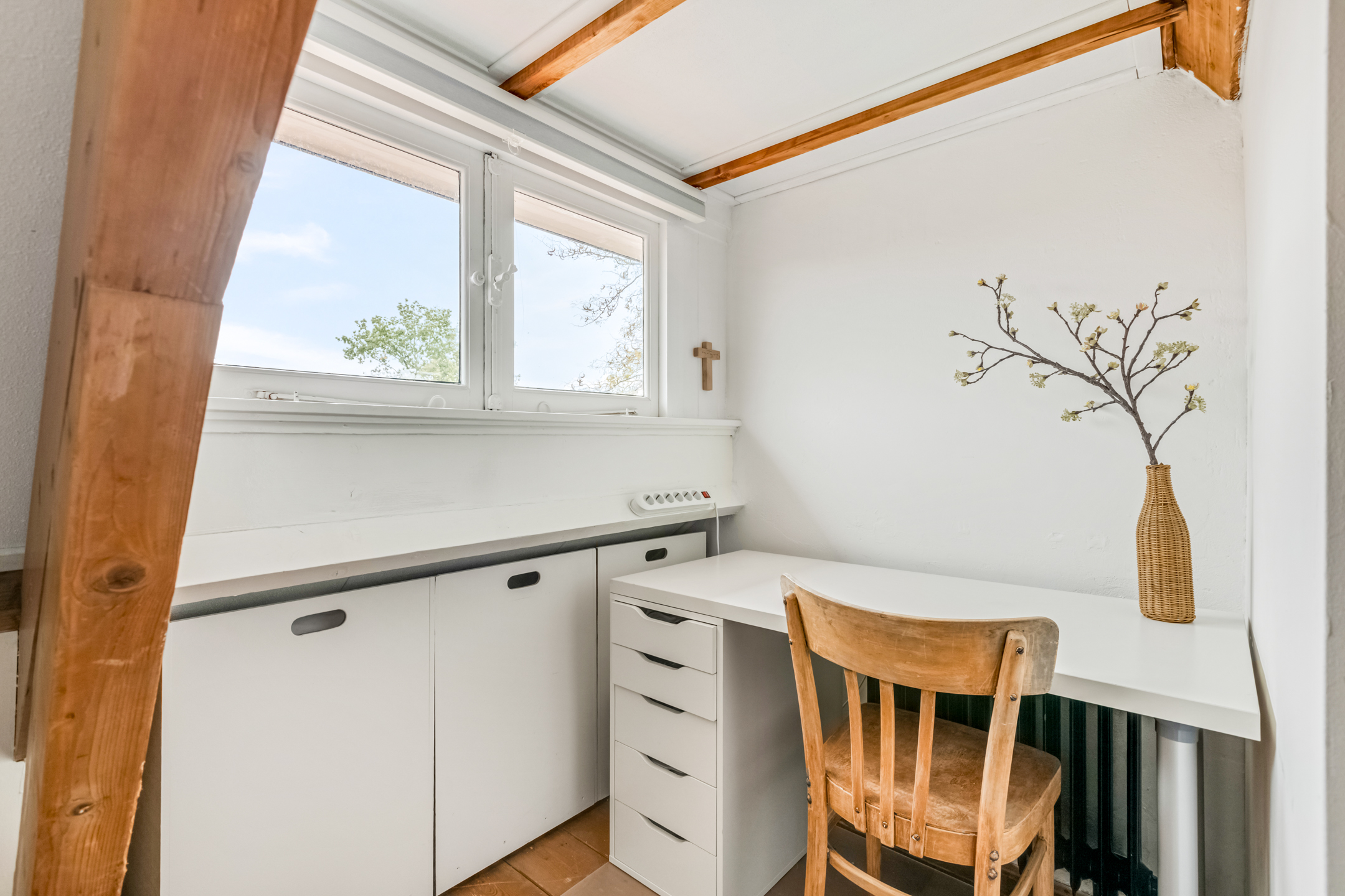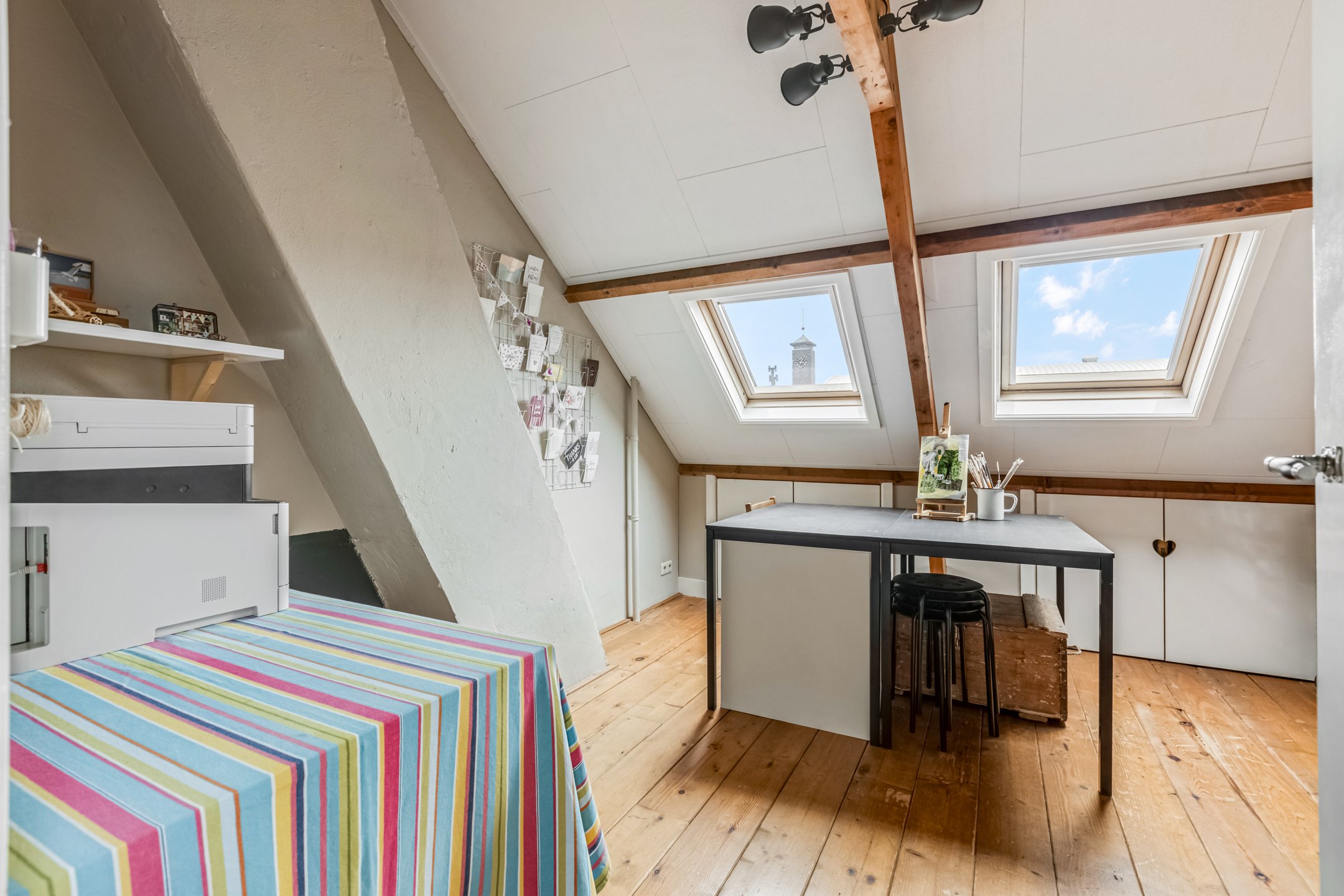 Via de overloop heb je toegang tot nog twee slaapkamers, beide voorzien van dakramen en handige bergruimte. Daarnaast is er een berging met de wasmachineaansluiting. Of je nu behoefte hebt aan logeerruimte, een extra werkkamer of een plek voor de kinderen: hier kan het allemaal.