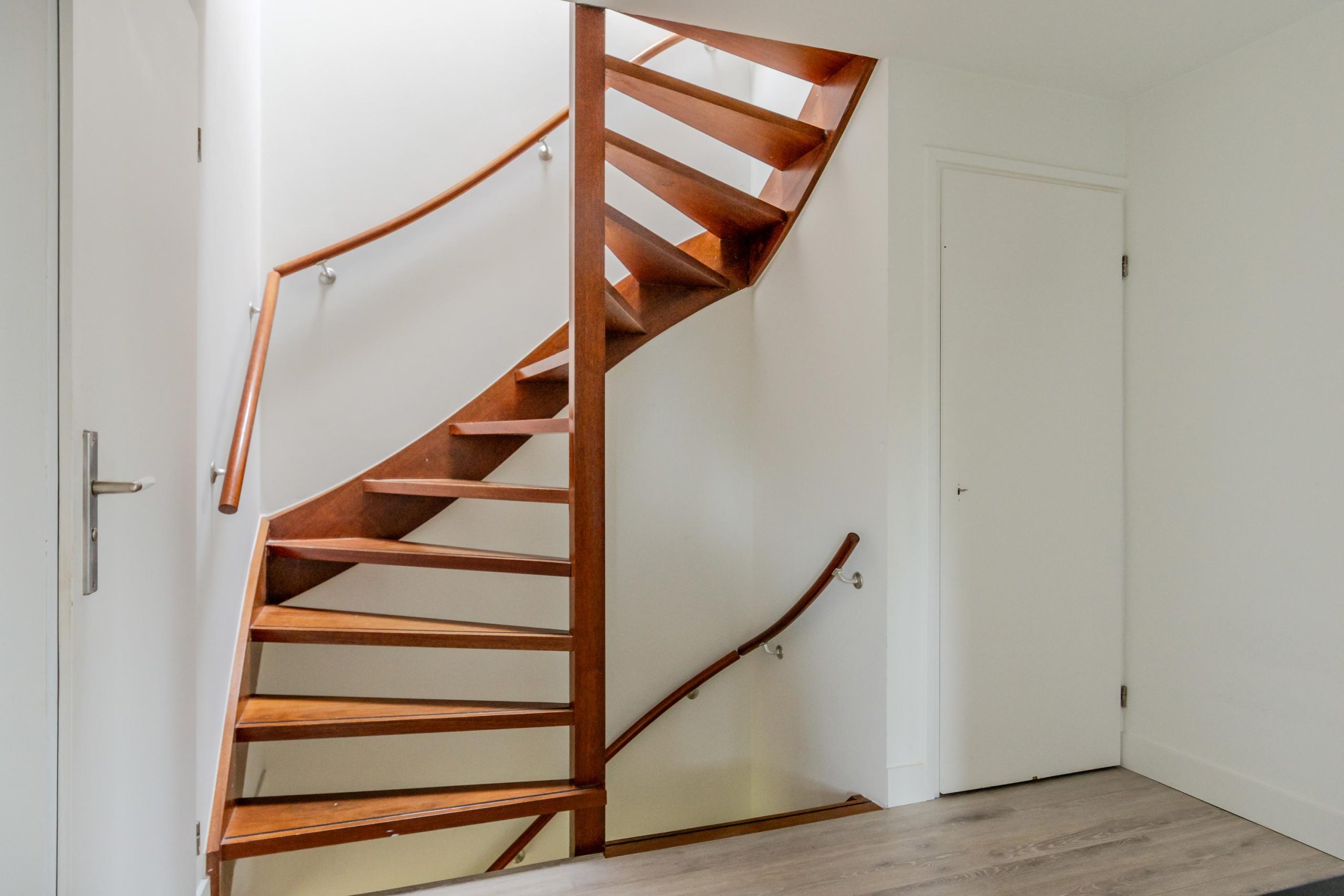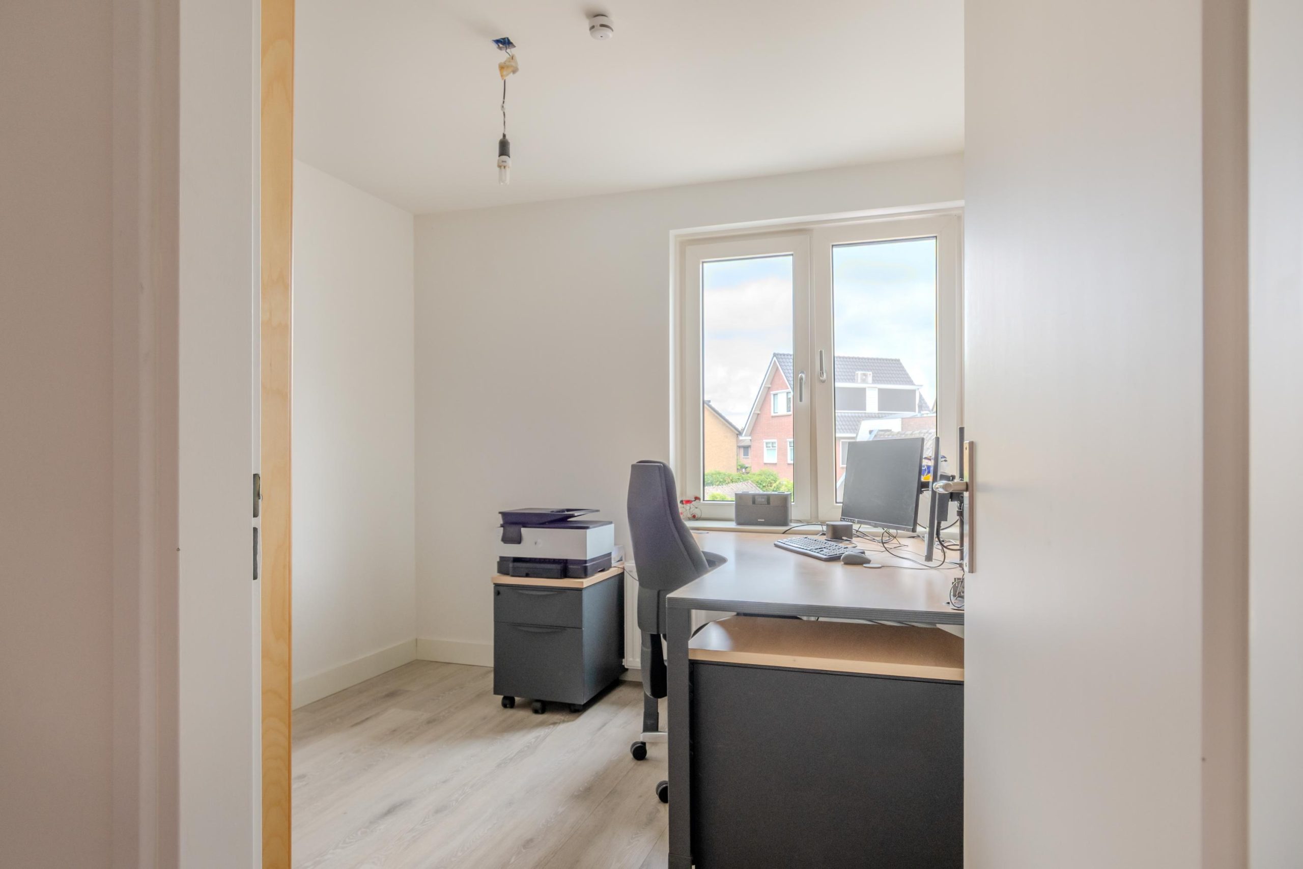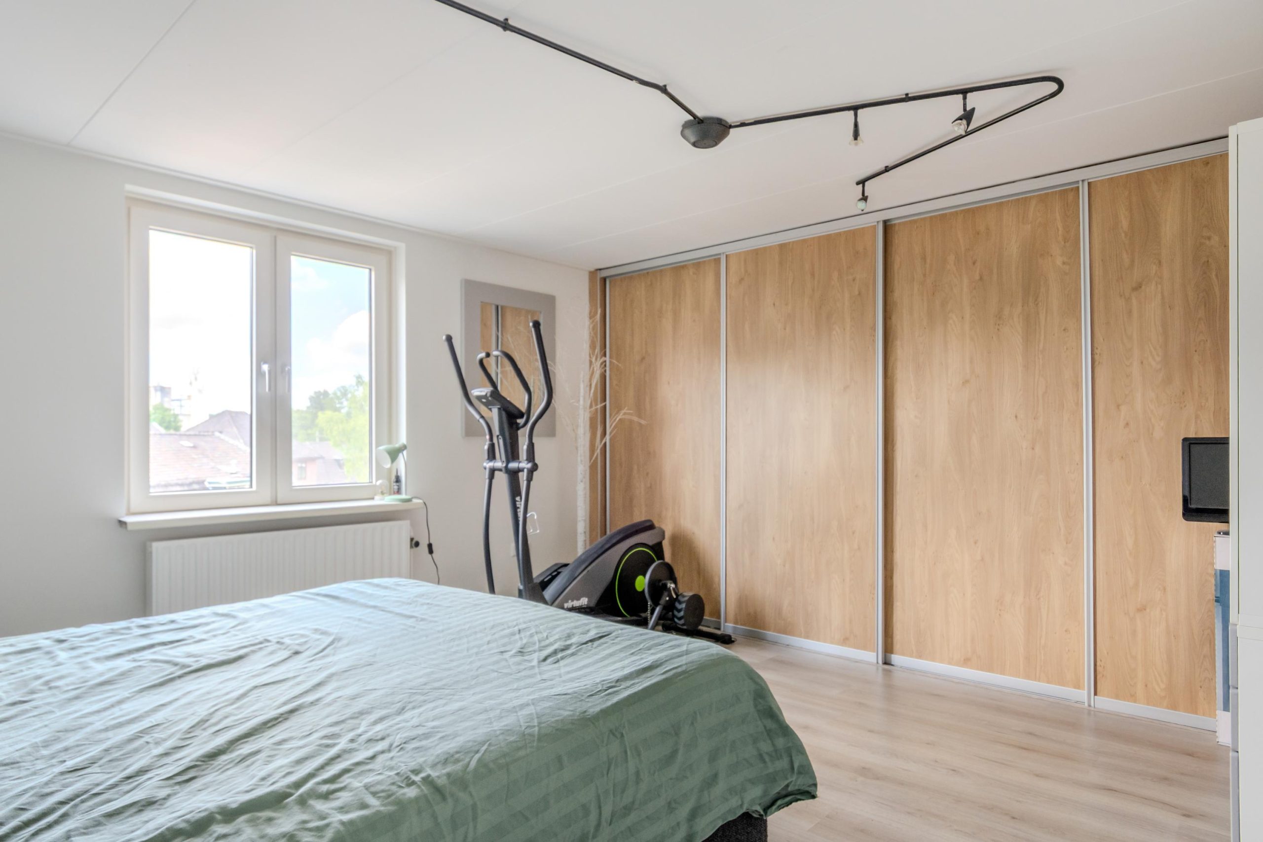 Overloop met lichtkoepel en deze verdieping biedt nog eens twee volwaardige slaapkamers. Daarnaast bevindt zich hier een aparte wasruimte, die eventueel eenvoudig omgevormd kan worden tot tweede badkamer. Dankzij de slimme indeling is deze verdieping volledig functioneel en ideaal voor grotere gezinnen, logees of werk-/hobbyruimte. Er is ook nog een vliering aanwezig.