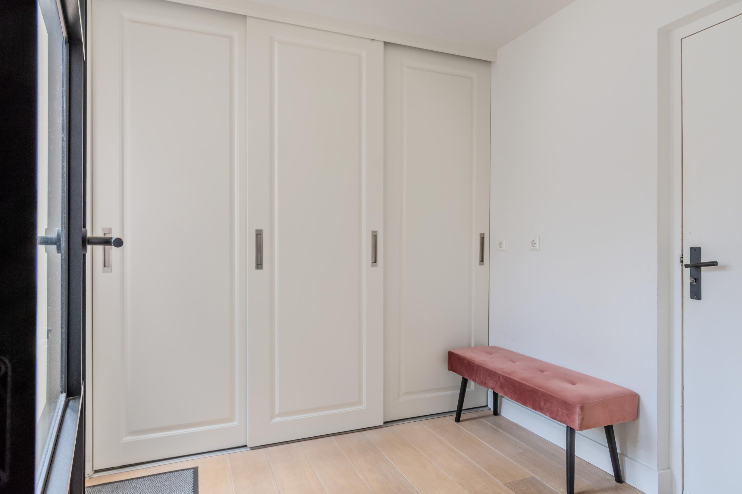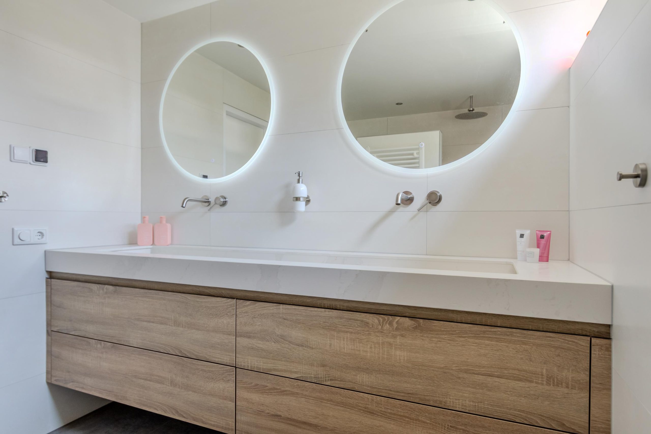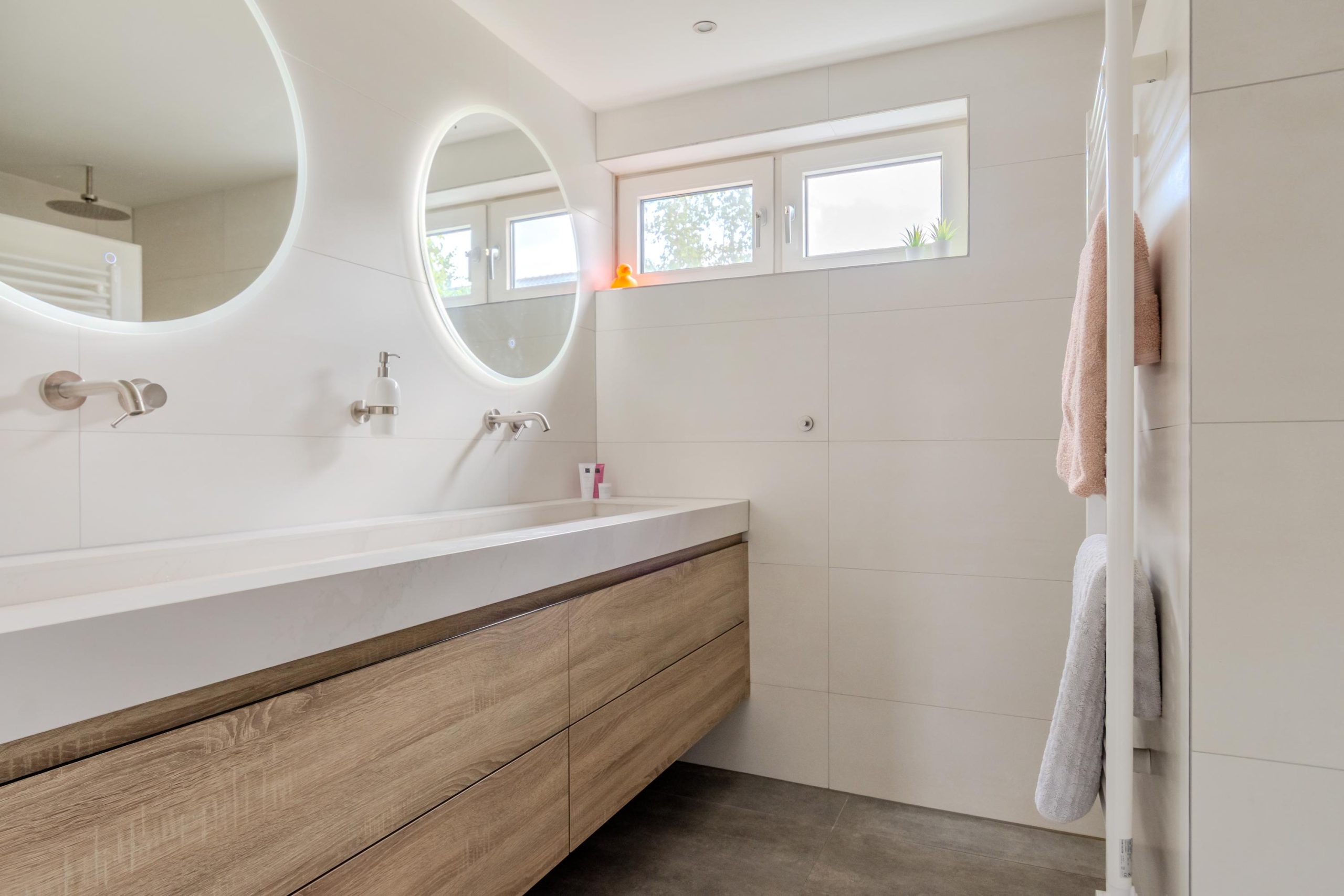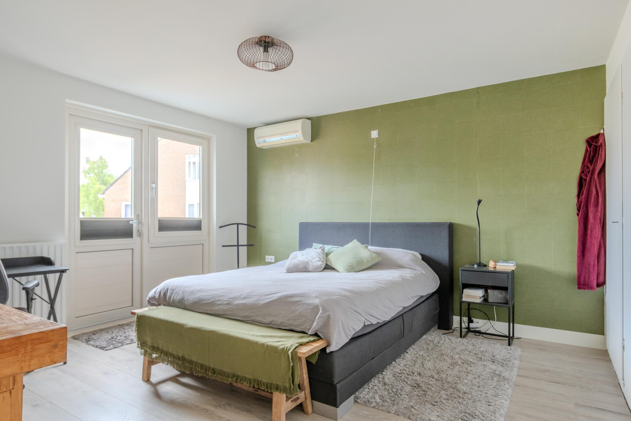 De eerste verdieping beschikt over drie ruime en prettig ingedeelde slaapkamers. De ouderslaapkamer is uitgerust met airconditioning, praktische vaste kasten en biedt toegang tot het dakterras. De recent vernieuwde badkamer is voorzien van een maatwerk dubbele wastafel, verlichte spiegels, een royale inloopdouche, vloerverwarming en een toilet.