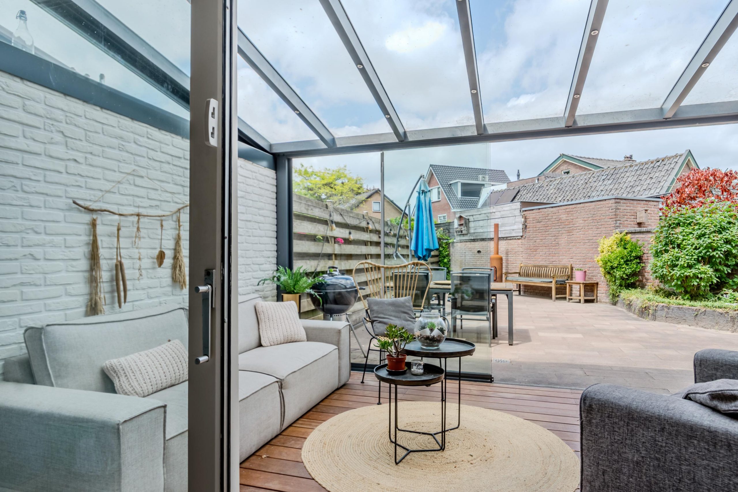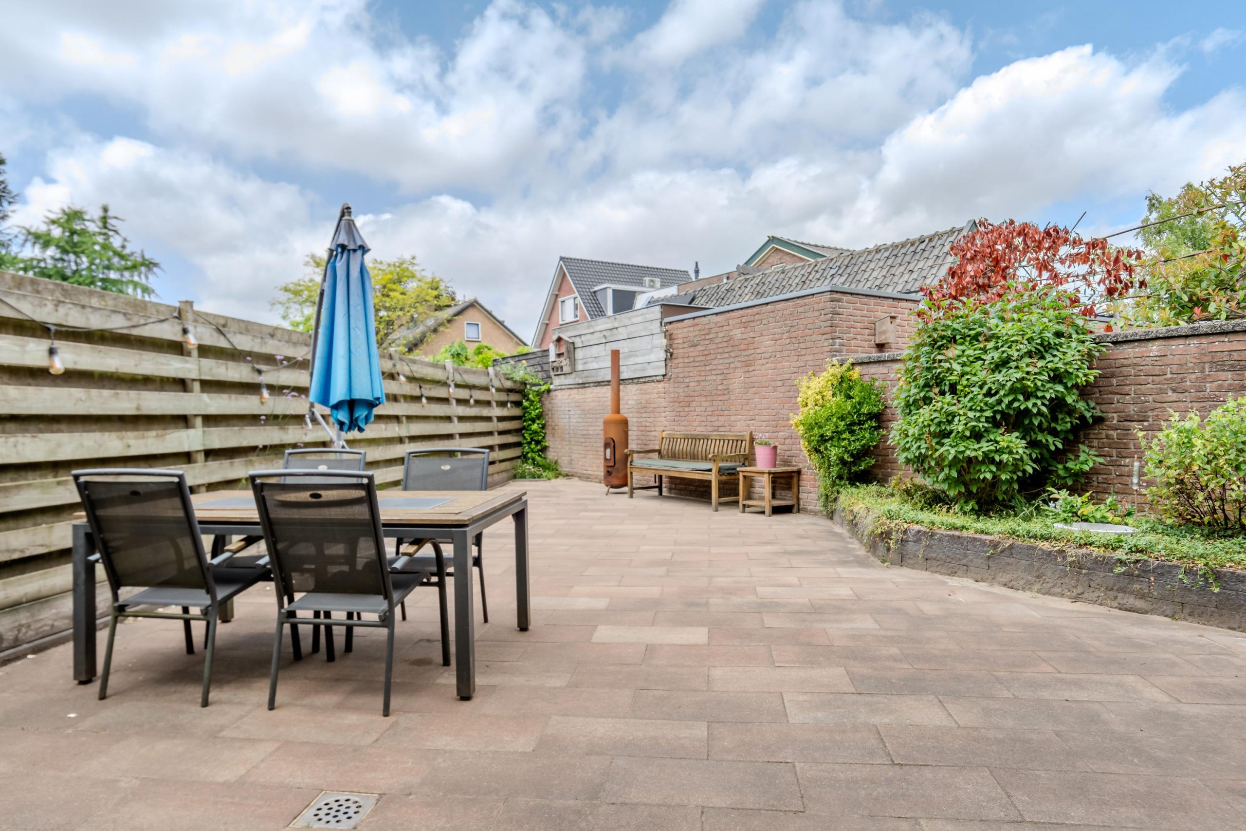 De achtertuin is bereikbaar via de serre, de bijkeuken of de aangebouwde garage en biedt volop mogelijkheden om naar eigen wens in te richten. Dankzij de beschutte ligging geniet je hier volop van privacy en rust.