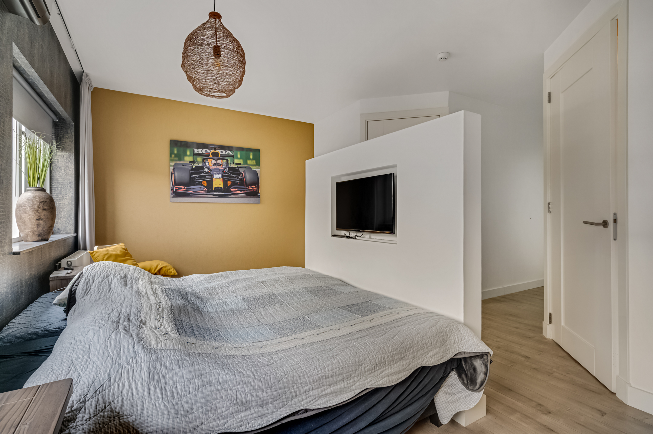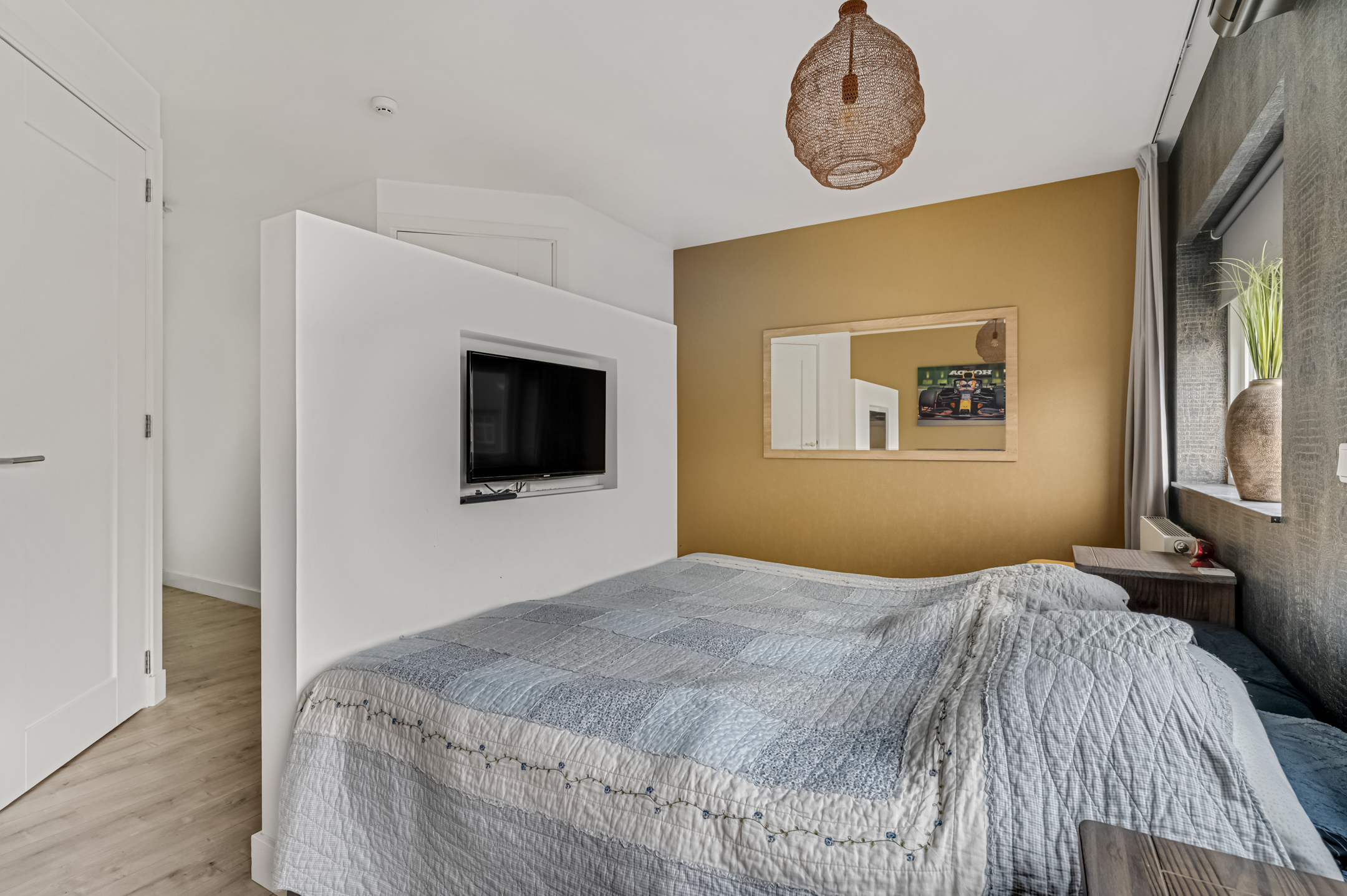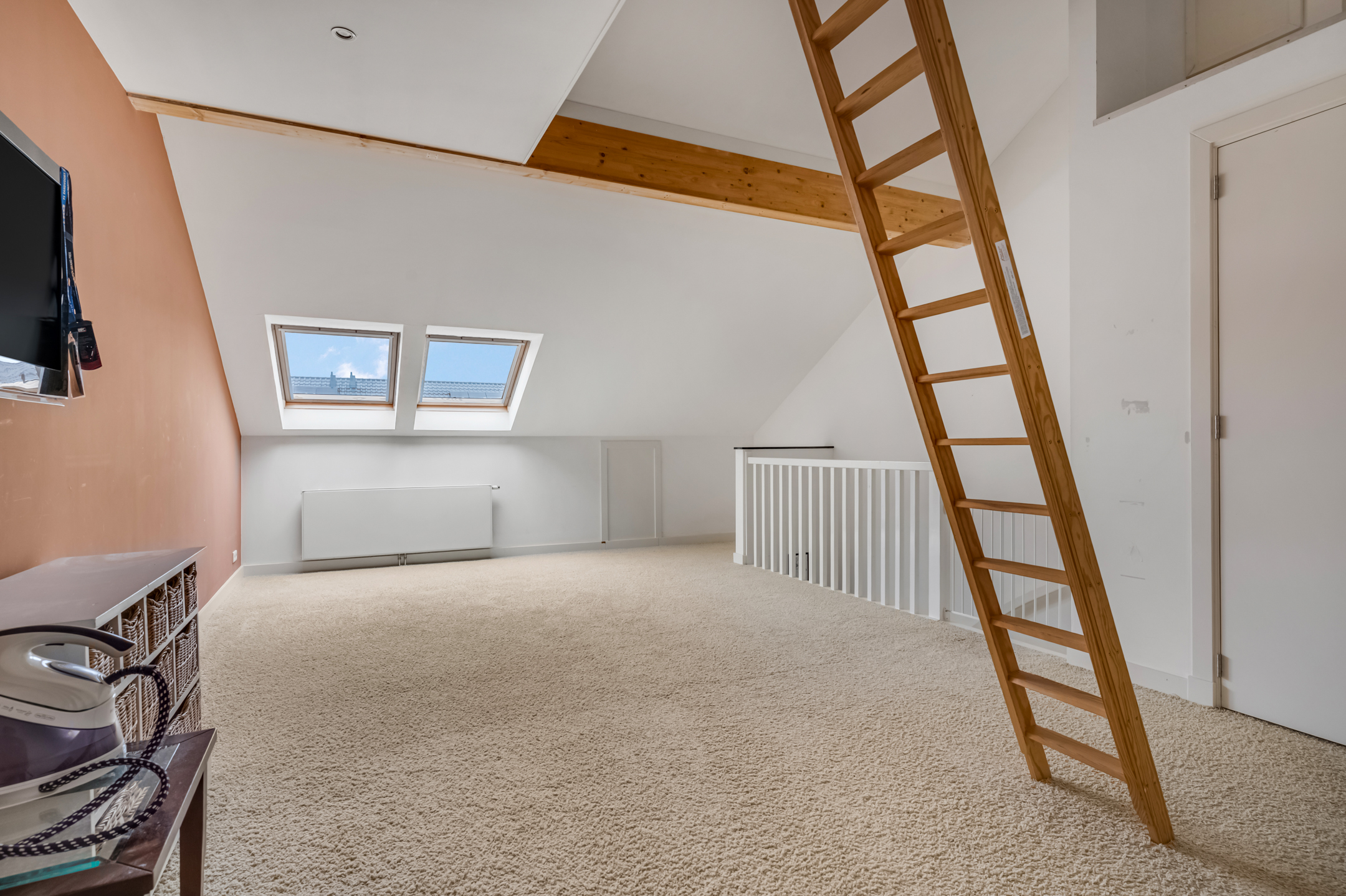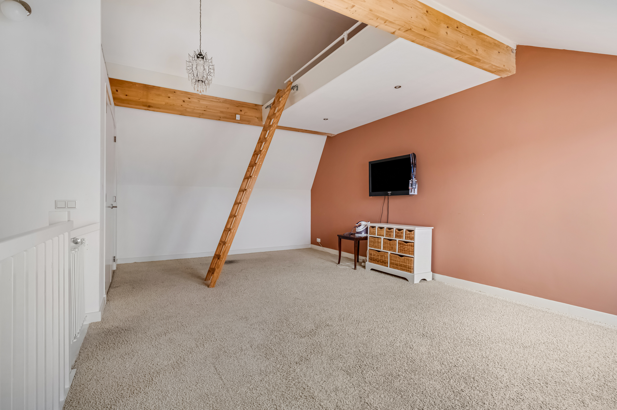 De zolder biedt verrassend veel ruimte en leent zich uitstekend voor het creëren van twee extra slaapkamers. Een speels en praktisch detail is de slaapvide, die een extra dimensie geeft aan de ruimte, ideaal als logeerplek, speelruimte of juist als cosy slaapplek. Daarnaast is er volop bergruimte aanwezig, zowel achter de knieschotten als in een handige afgesloten kast.