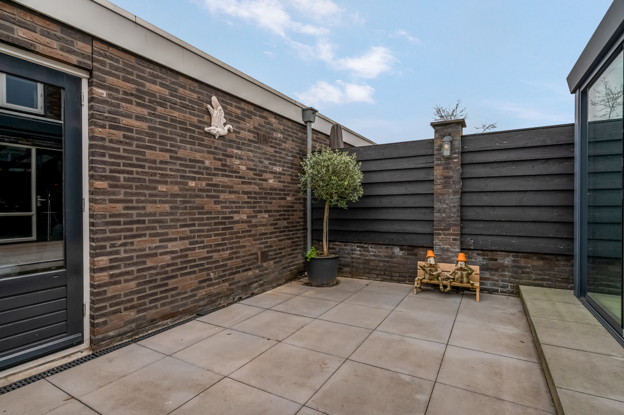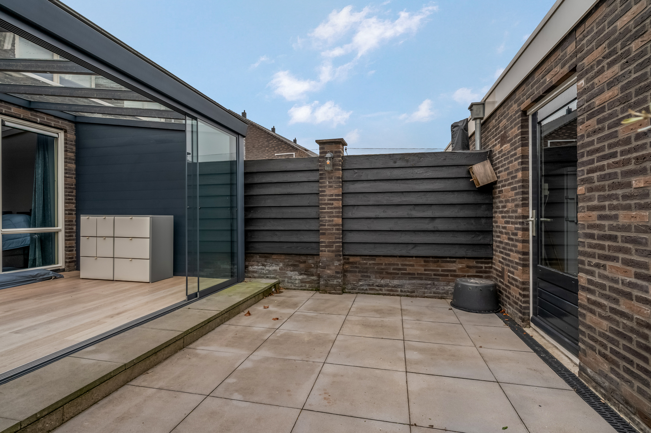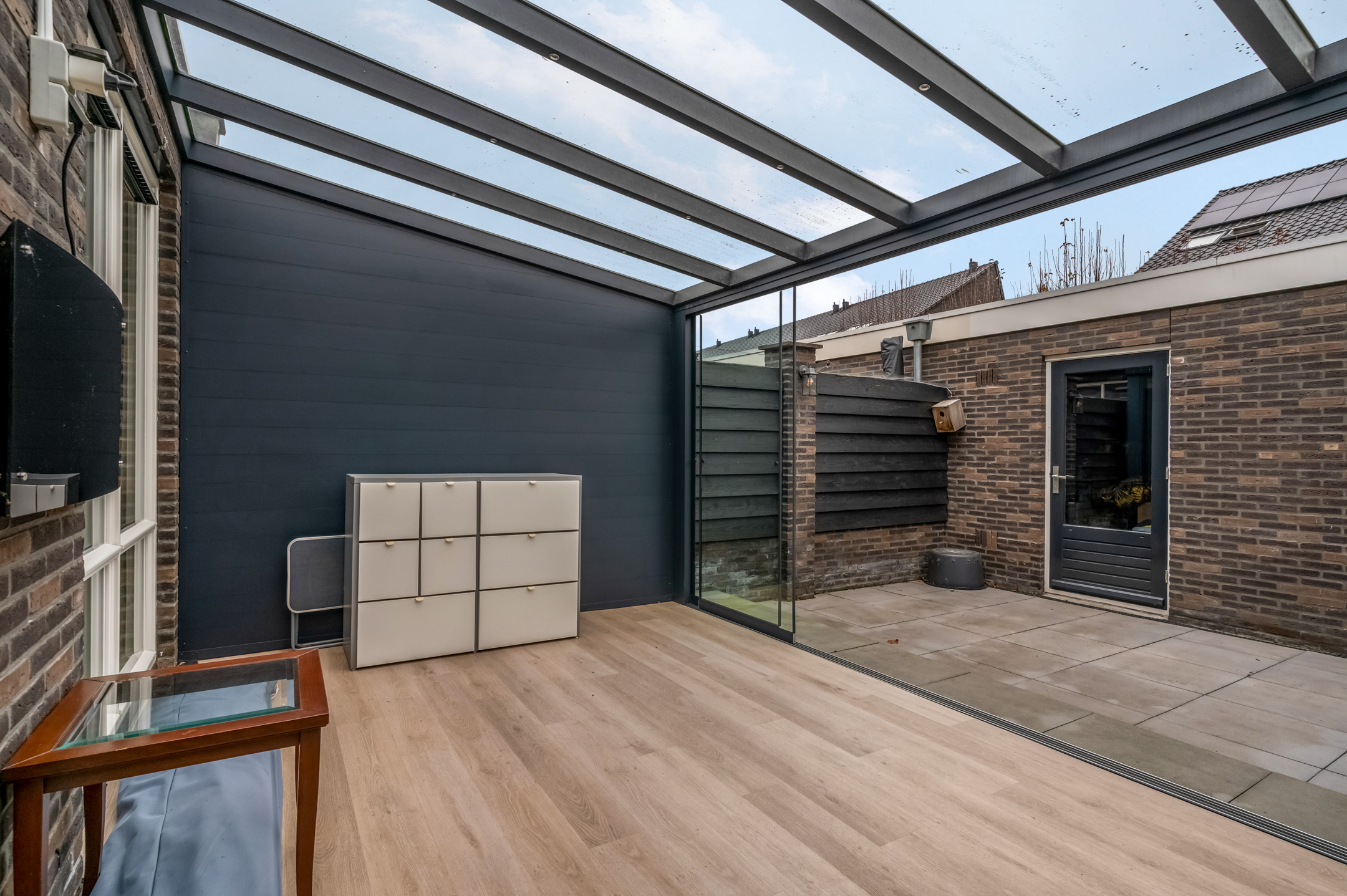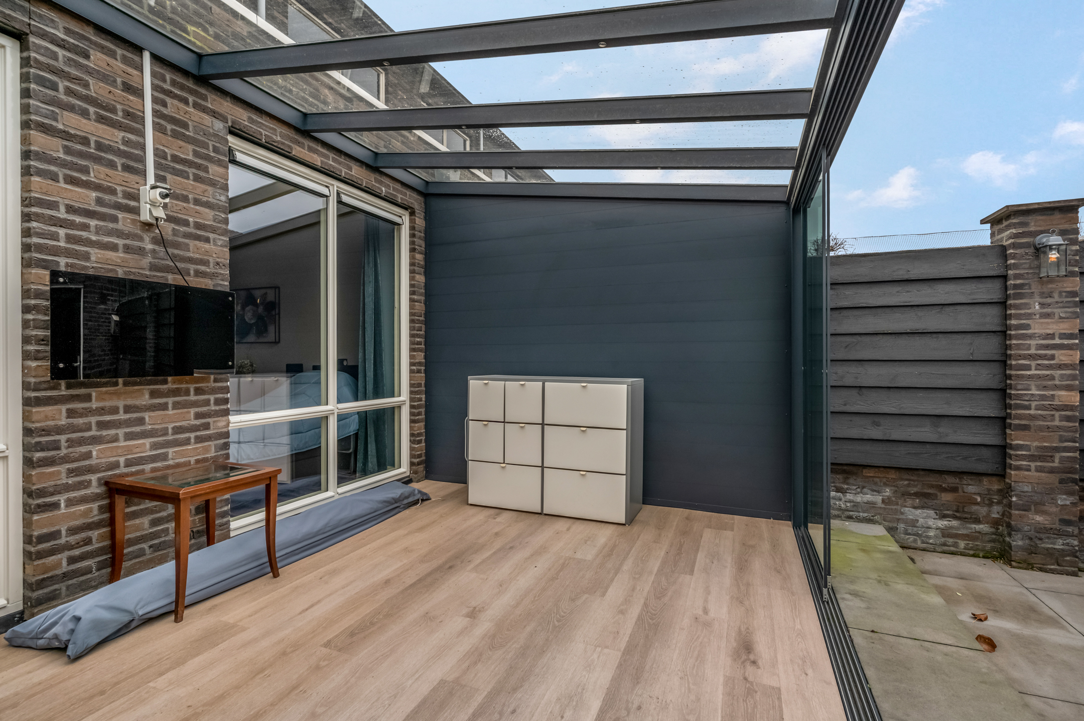 Aan de achterzijde van de woning bevindt zich de serre: een volledig glazen overkapping waar binnen en buiten naadloos in elkaar overlopen. Een heerlijke plek om het hele jaar door van te genieten. De achtertuin is onderhoudsvriendelijk aangelegd en direct bereikbaar vanuit de serre. Of je nu droomt van een loungeset of een speelplek voor de kinderen, de mogelijkheden zijn volop aanwezig. Achterin de tuin staat een vrijstaande berging, die verrassend ruim is en ideaal voor fietsen, tuinspullen of hobbygereedschap.