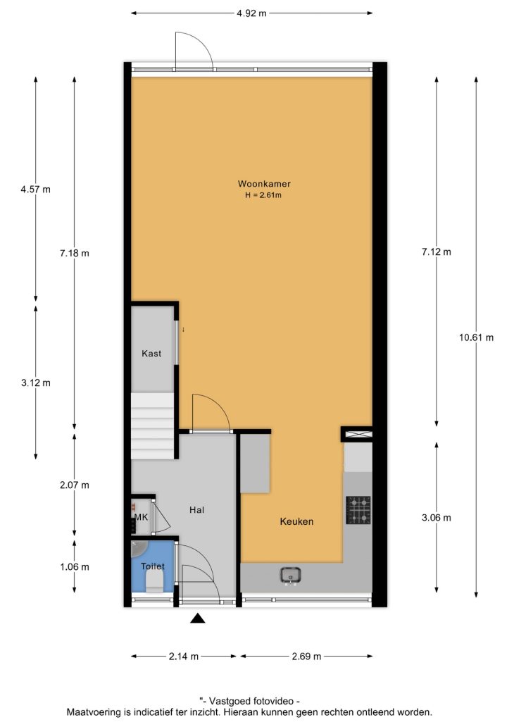 Via de ruime, lichte hal betreed je de woning. Hier vind je het toilet met fonteintje, de meterkast en de trap naar boven.