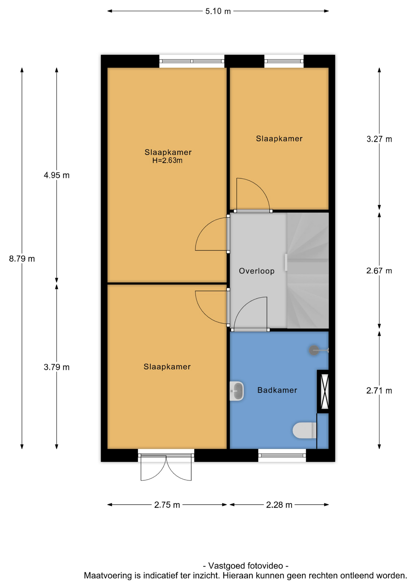 Overloop met toegang tot drie slaapkamers en de badkamer. De slaapkamers zijn netjes afgewerkt en goed van formaat. De badkamer beschikt over een inloopdouche, wastafel en tweede toilet.