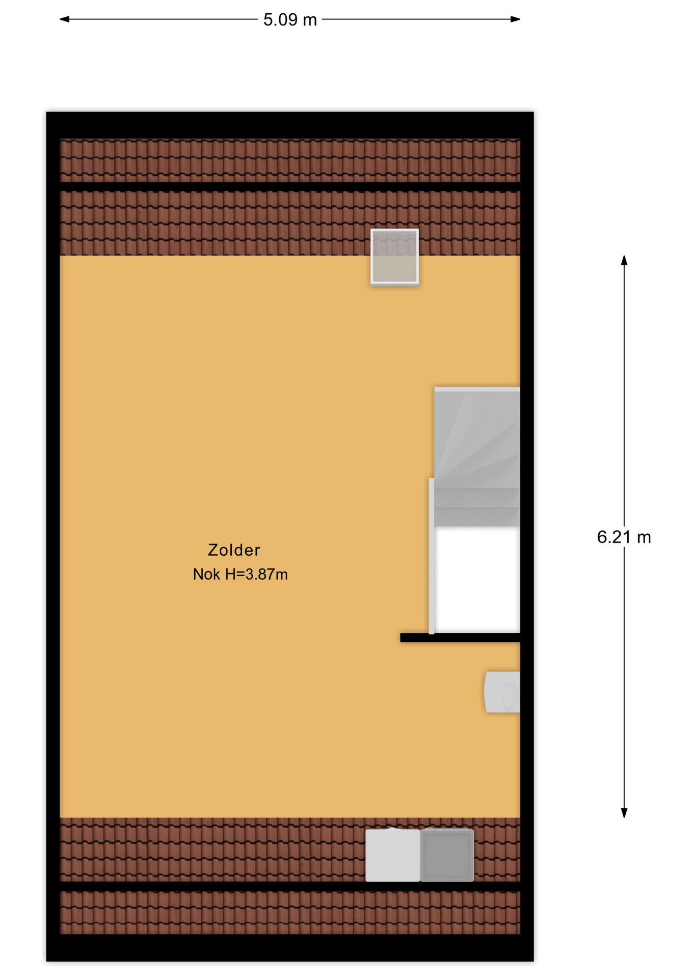 De tweede verdieping (zolder) voldoet niet aan de NEN 2580-richtlijnen voor woonoppervlakte vanwege onvoldoende daglichttoetreding. De oppervlakte is wel als woonruimte meegenomen in de aanmelding.