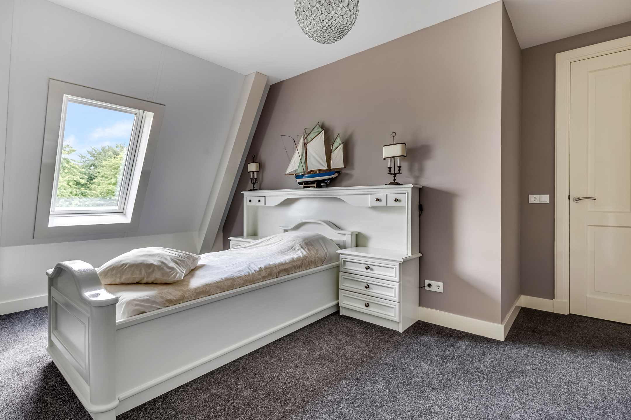 Op de eerste verdieping treft u de overloop met vide, een bergkast en drie royale slaapkamers, waarvan er één is voorzien van een vaste kastenwand. Op de gehele eerste etage is vloerbedekking aangebracht.