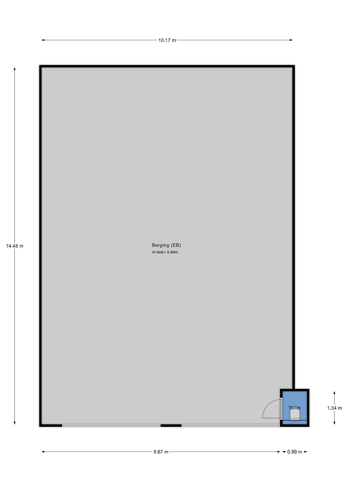 Inpandig is de ruimte afgewerkt met een 15 tot 20 cm geïsoleerde, gevlinderde betonvloer. Er zijn brandblusvoorzieningen en krachtstroom aanwezig.