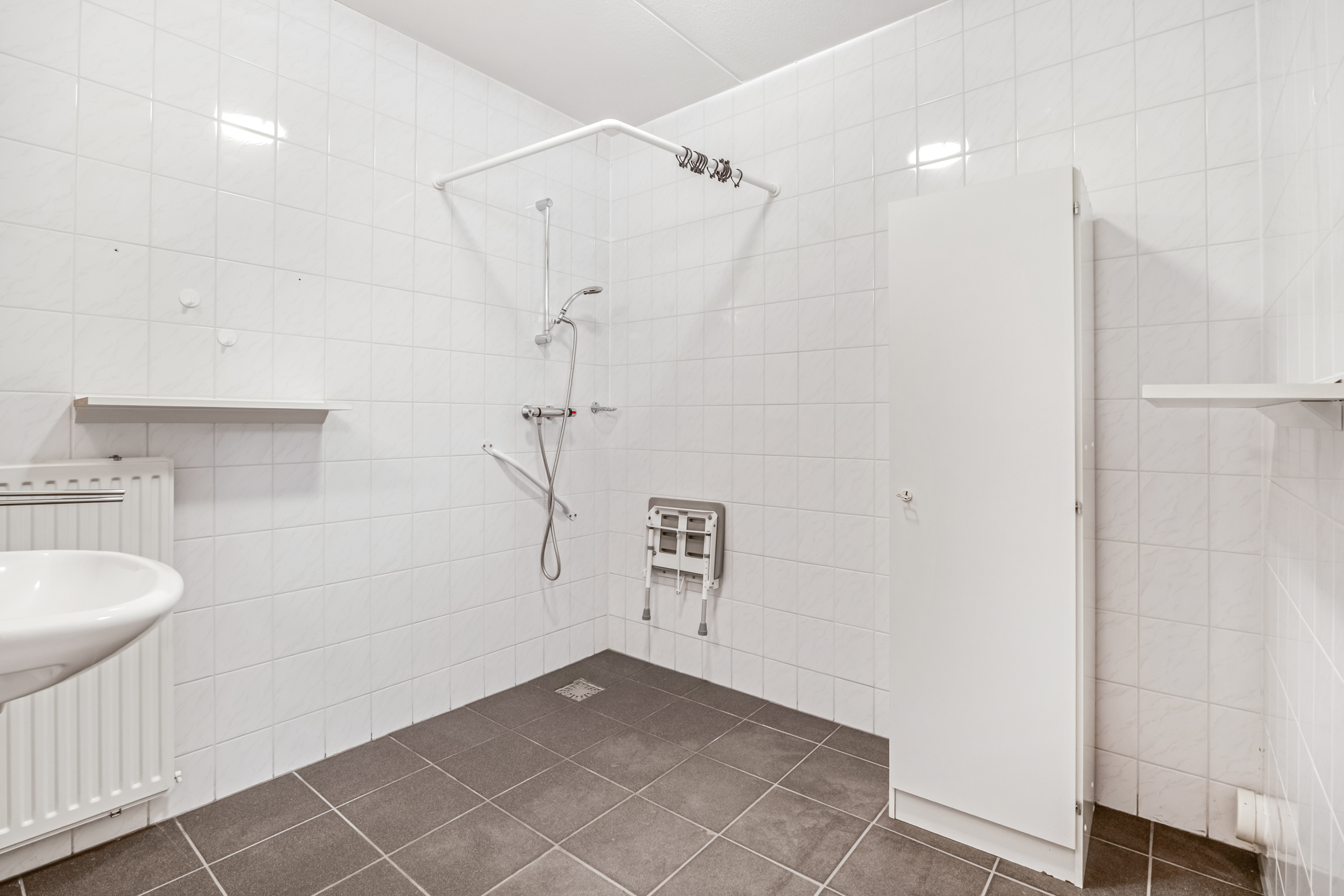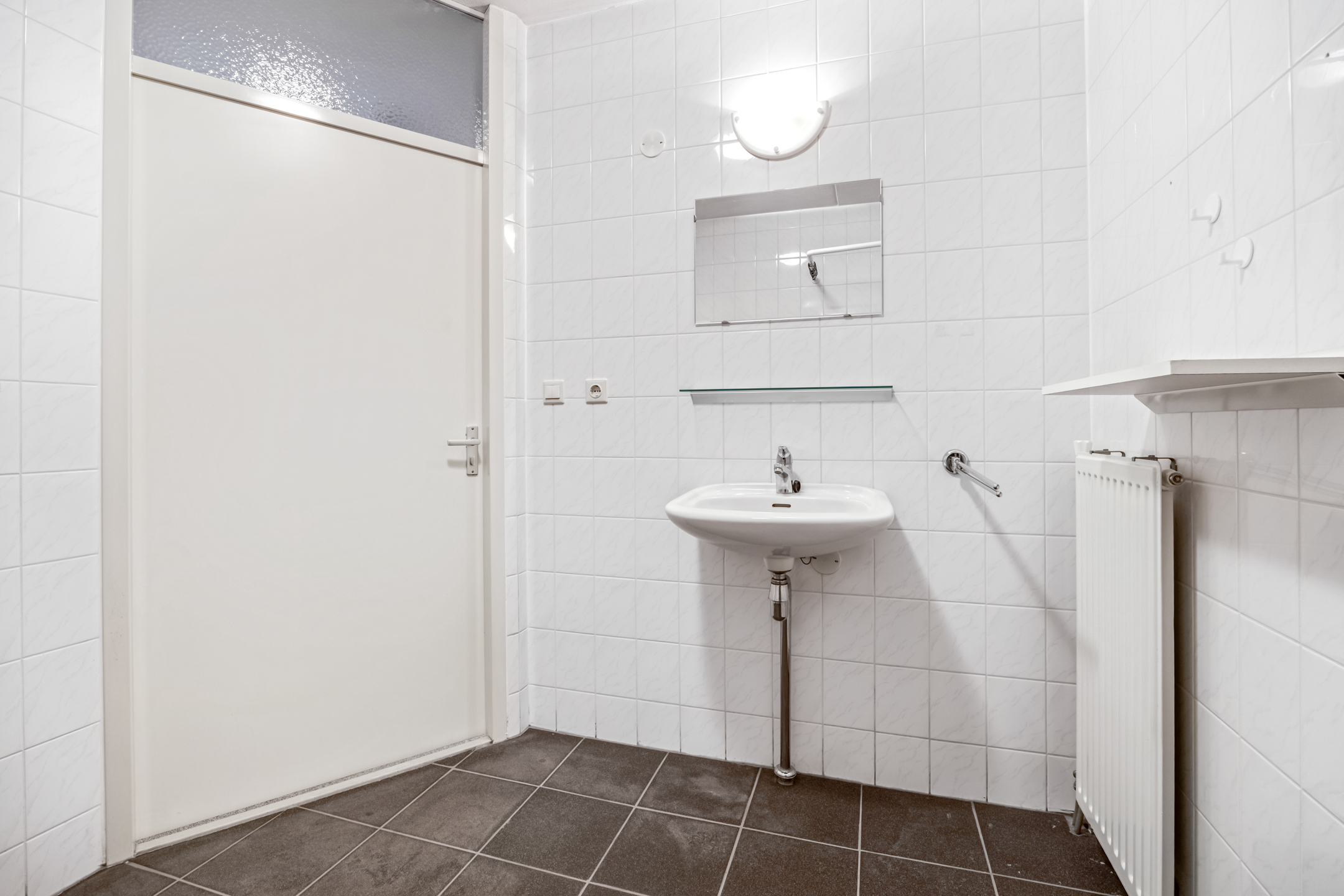 De badkamer is voorzien van een douche en wastafel. In de hal vindt u een apart toilet met fonteintje. Daarnaast is er een praktische interne berging met de cv-installatie en aansluiting voor uw wasmachine en droger.