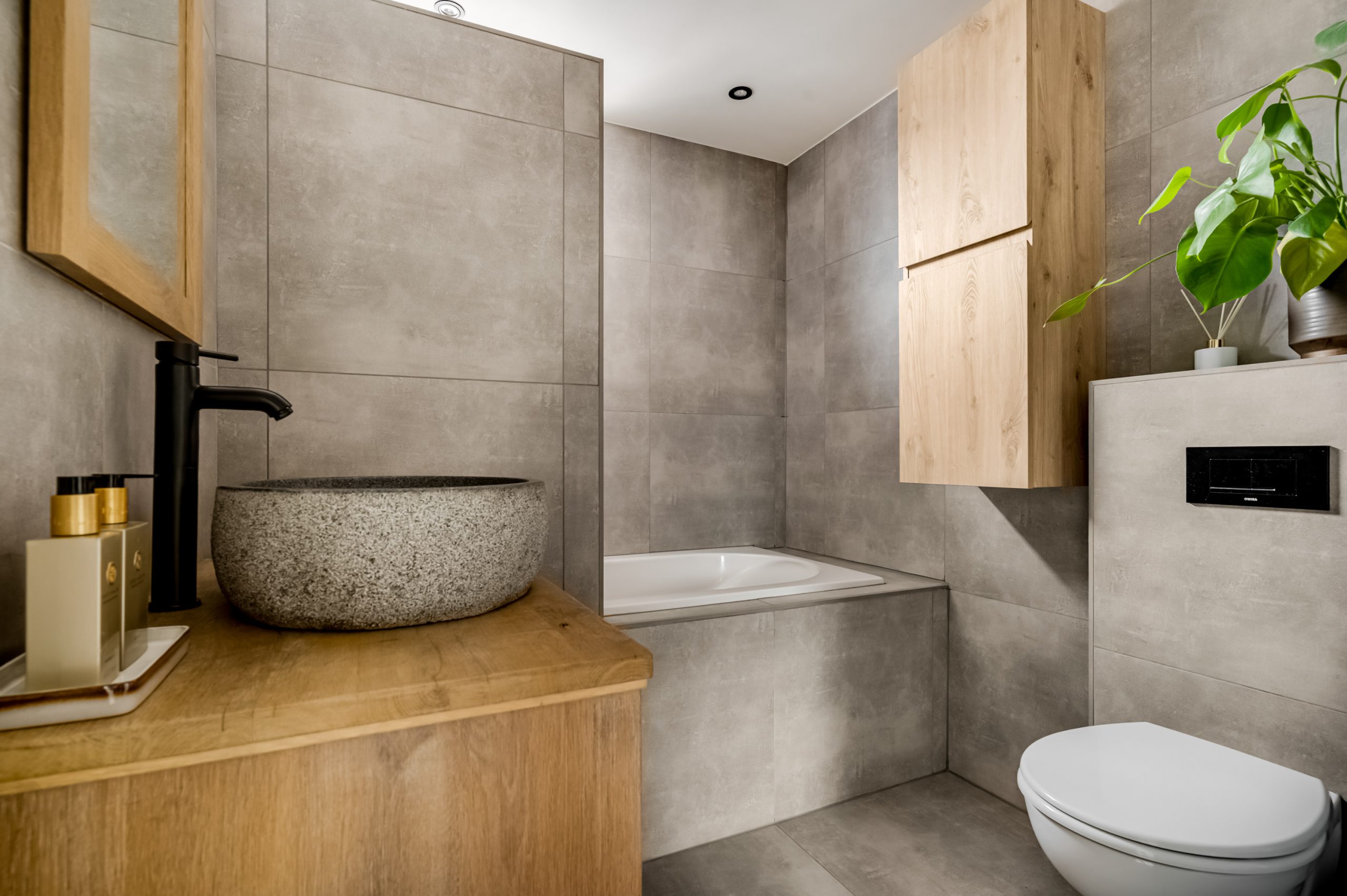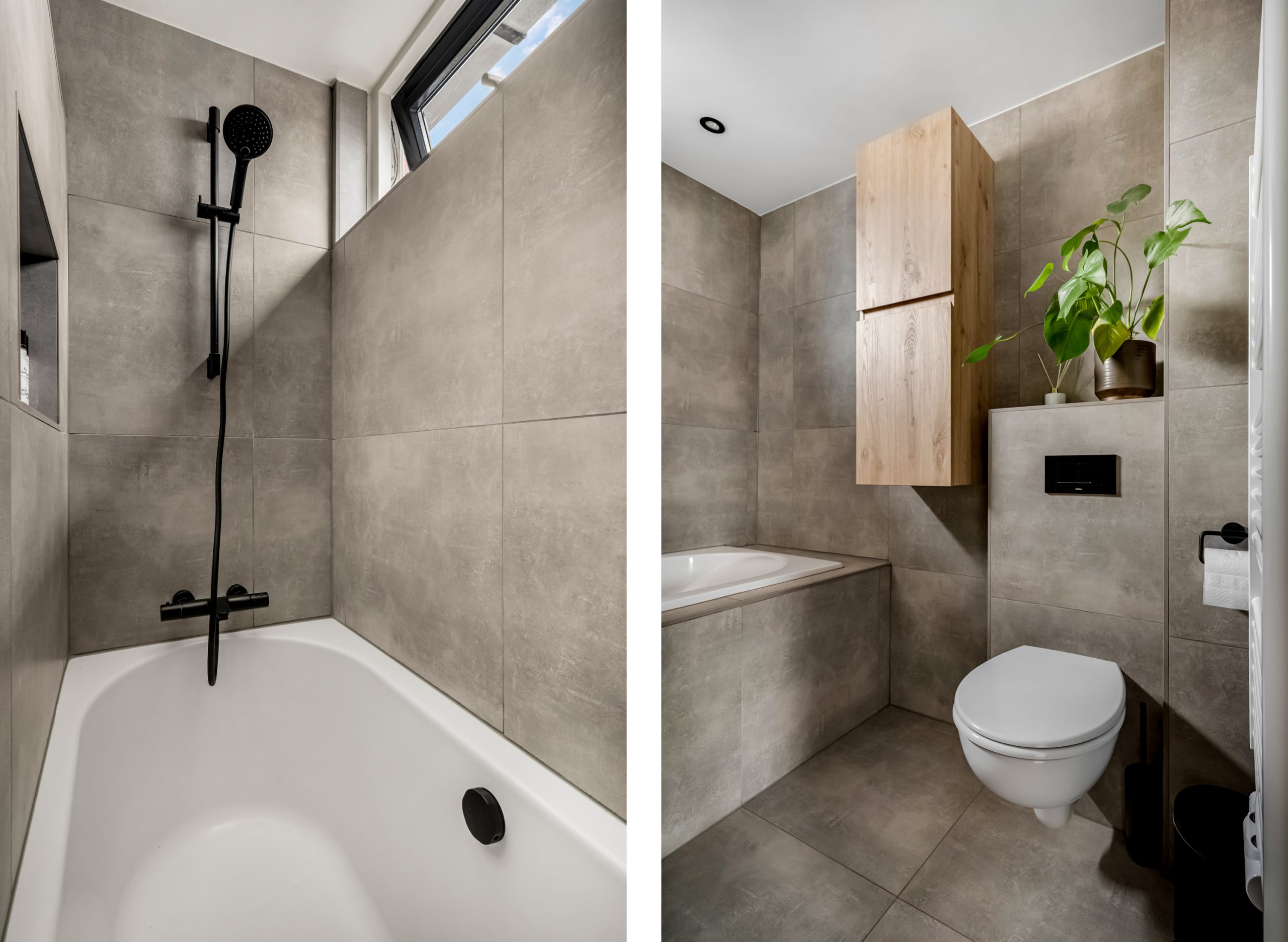 De moderne badkamer is een echte eyecatcher! Deze is voorzien van een ligbad, douche met matzwarte kranen, tweede toilet en een wastafelmeubel. Een heerlijke plek om te ontspannen!