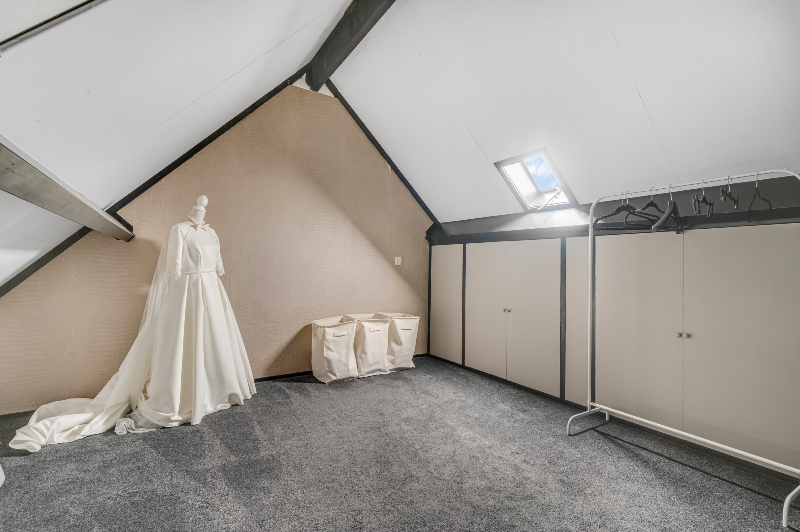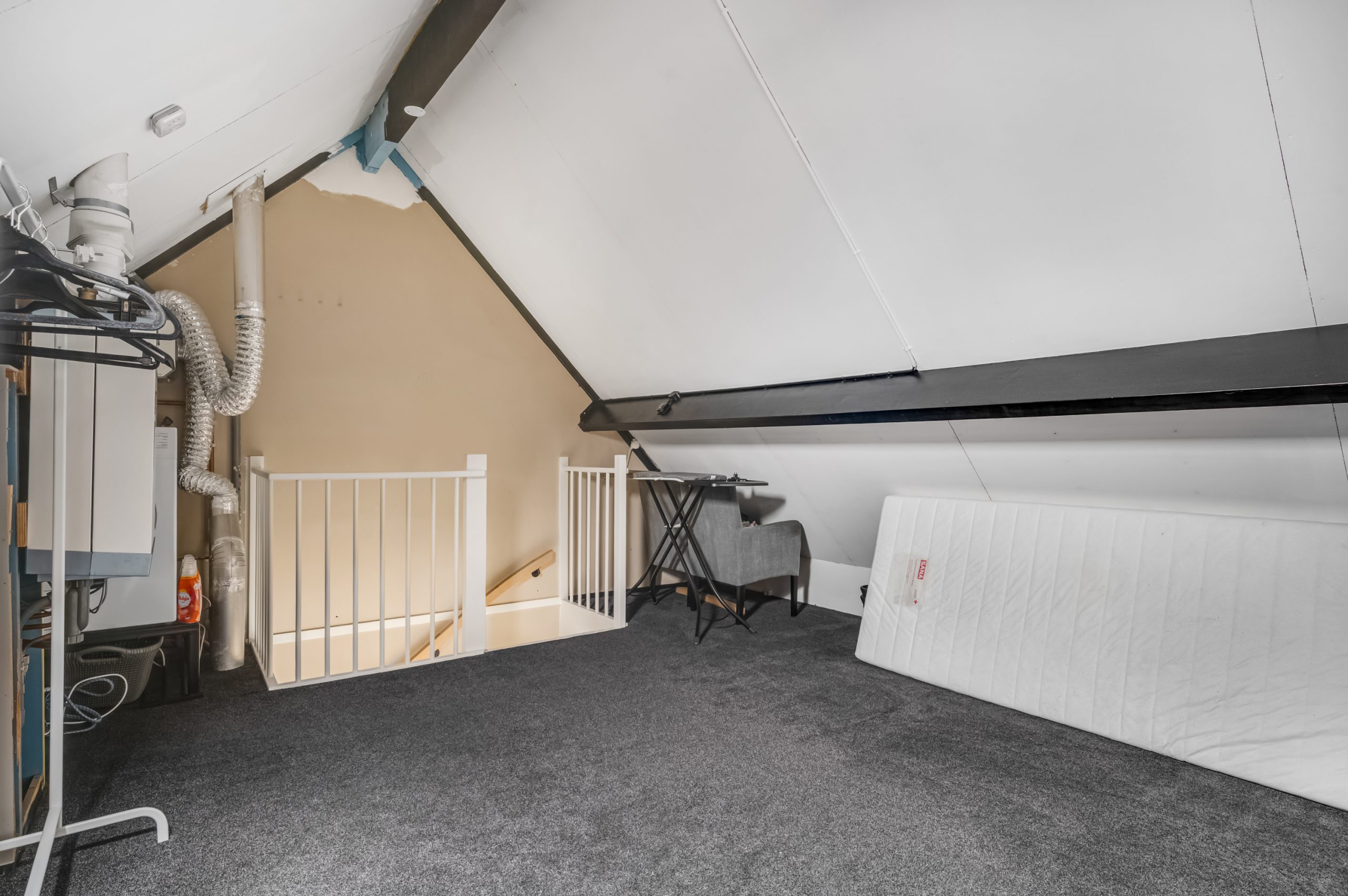 De zolderverdieping biedt volop ruimte en is perfect geschikt als logeerkamer, hobbyruimte of kantoor aan huis. Achter de knieschotten is veel praktische bergruimte aanwezig. Daarnaast is het mogelijk om hier een extra slaapkamer te realiseren.
