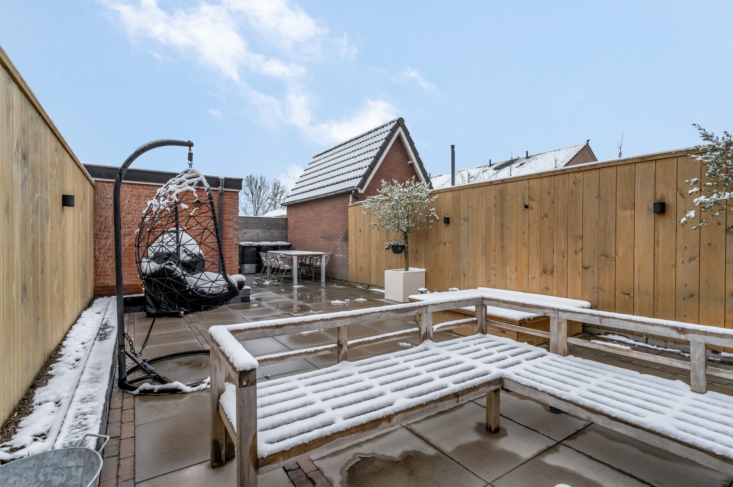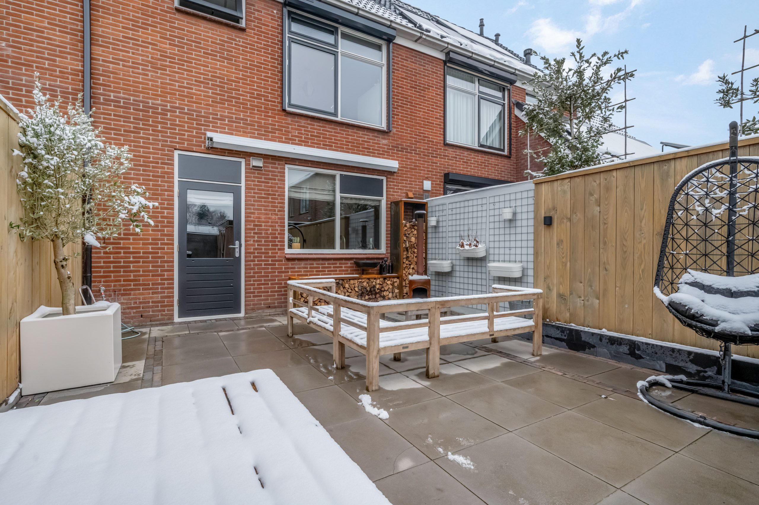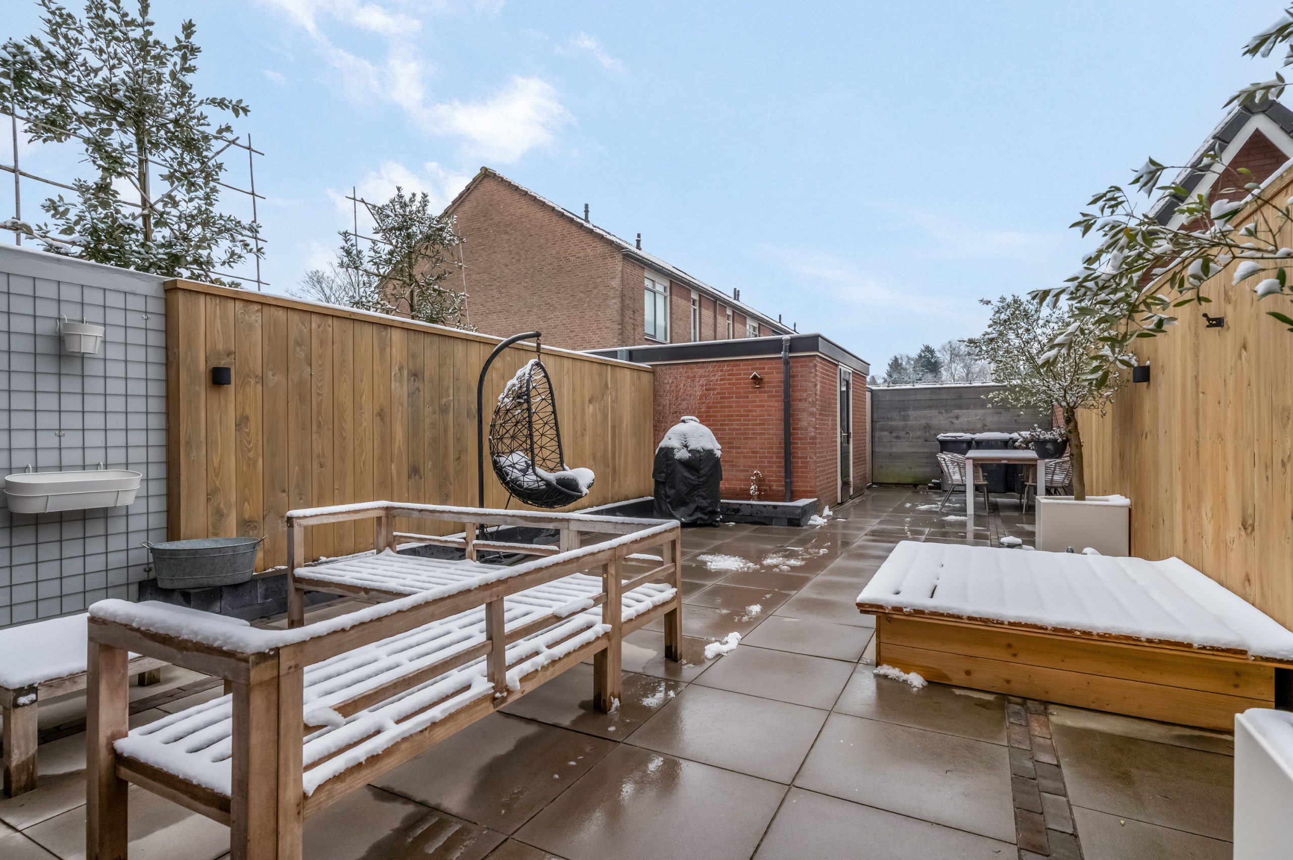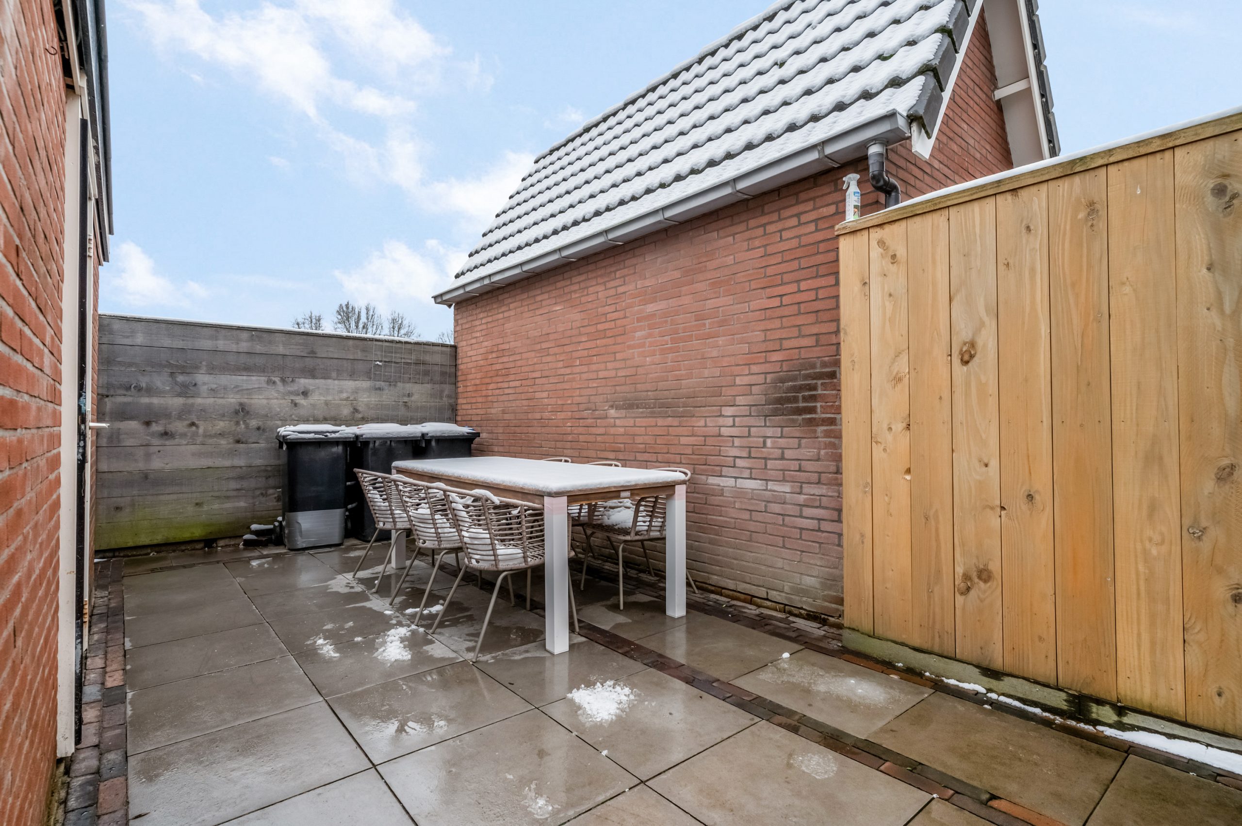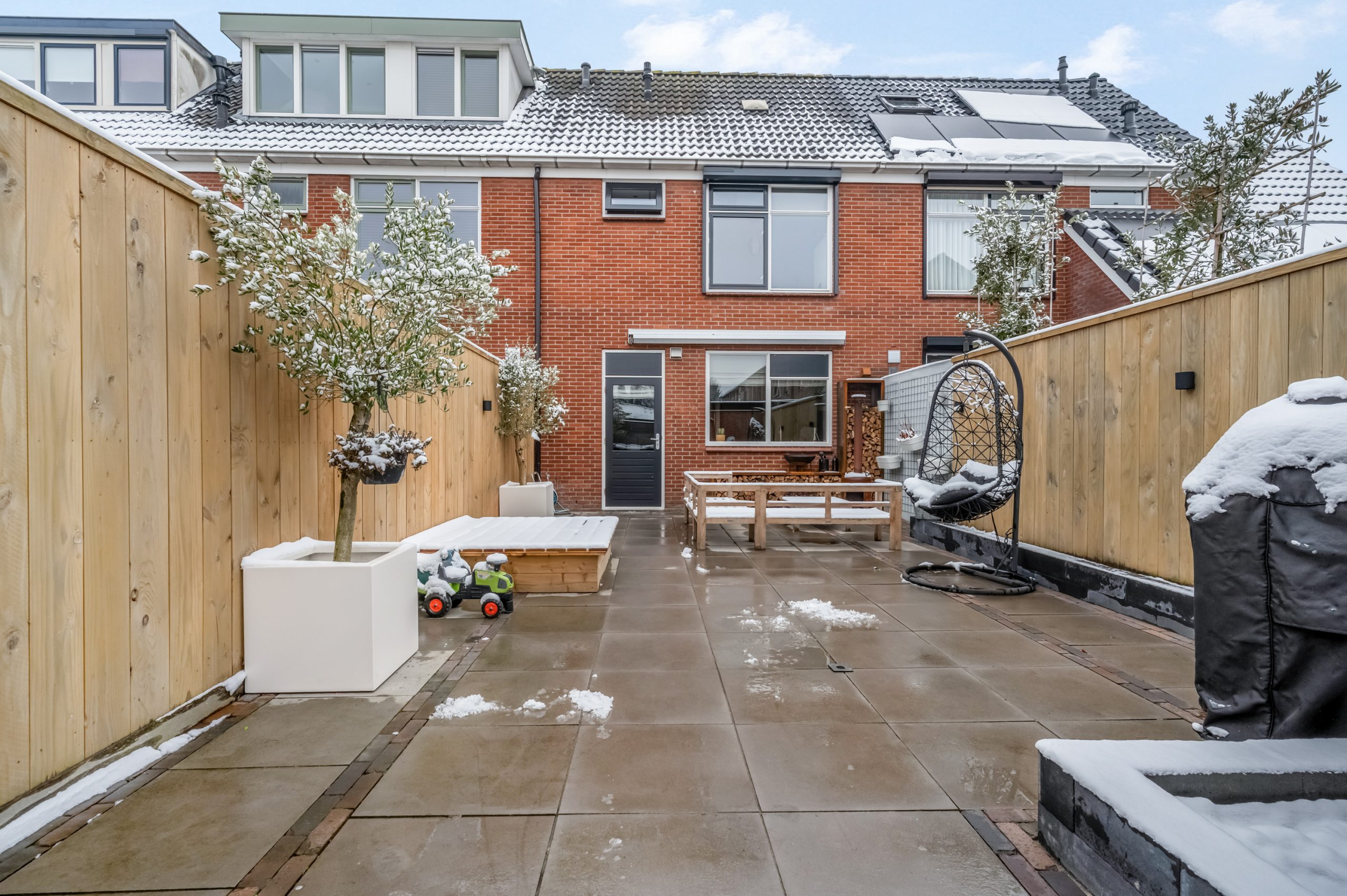 De achtertuin is grotendeels bestraat en ideaal voor wie weinig onderhoud wenst, maar wel graag buiten leeft. De houten schuttingen zorgen voor privacy, terwijl je dankzij de slimme indeling meerdere zithoeken kunt creëren. Achter in de tuin vind je een ruime stenen berging, perfect voor fietsen, tuingereedschap of als hobbyruimte.