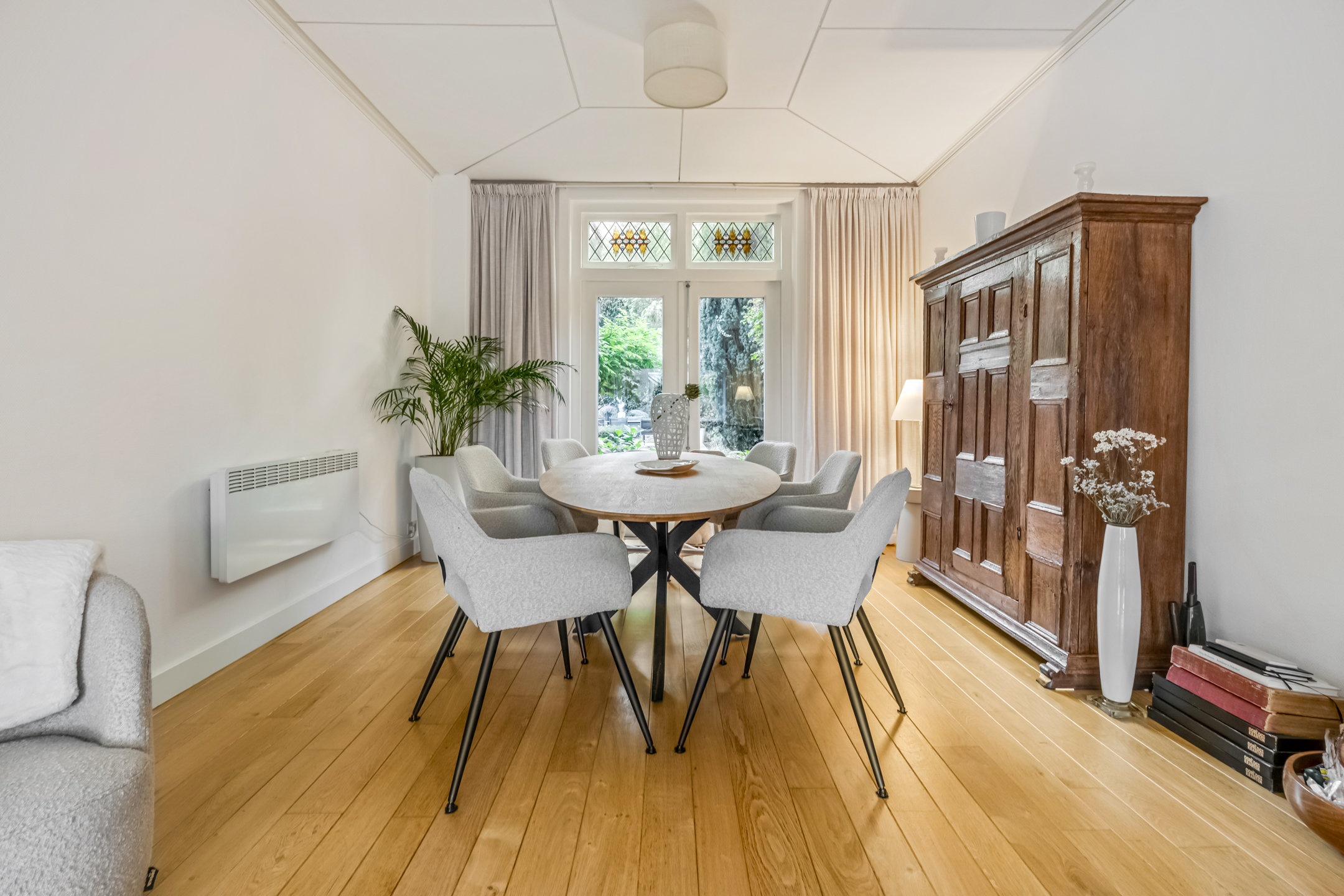 Deze verzorgde woning is omstreeks 1934 gebouwd en in 1981 uitgebouwd, waardoor het huis verrassend veel ruimte biedt. Er is een mooie mix gevonden tussen de 'jaren dertig' sfeer, de nog aanwezige originele details zoals glas-in-lood-ramen en paneeldeuren en het moderne wooncomfort (ook door de nieuw geplaatste HR++ ramen)! Gezien de extra ruimte op de begane grond leent de woning zich bij uitstek voor bijvoorbeeld een salon of praktijk aan huis of om als een levensloopbestendige woning in gebruik te nemen.