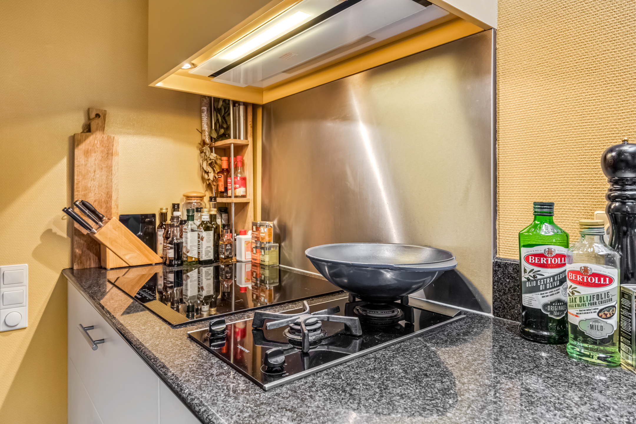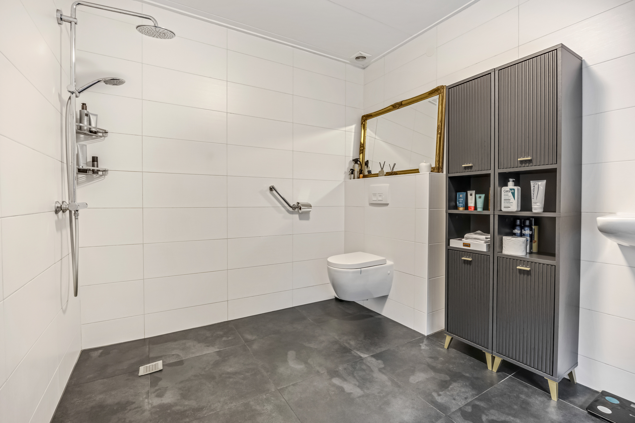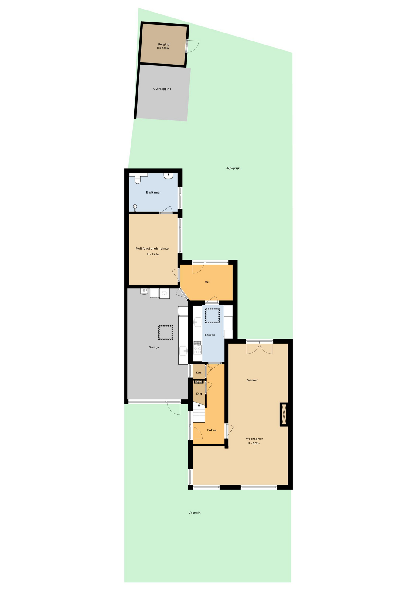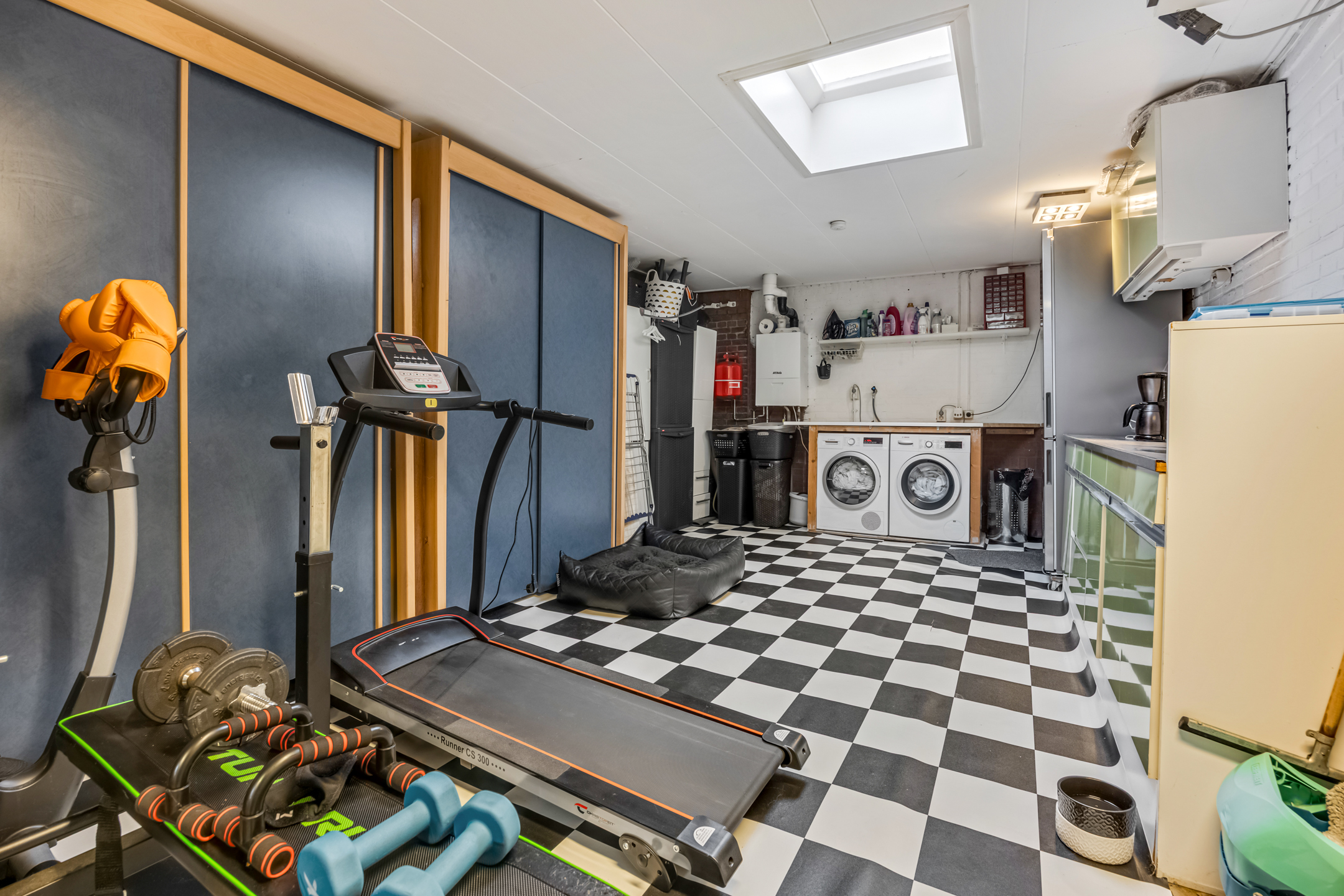 Begane grond: entree/hal met trapopgang, vaste kast (geschikt om weer als toilet in te richten) en een kelderkast. Via een mooie glasdeur stapt u de heerlijk lichte en riante woonkamer binnen met een stijlvolle schouw met openhaard, openslaande tuindeuren en voldoende ruimte voor een aparte tv-hoek of speelhoek. Dichte keuken, voorzien van een moderne keukenopstelling o.a. uitgerust met inductiekookplaat, gaskookplaat, oven, quooker, vaatwasmachine en koelkast, aangebouwde eetkamer met tuindeur, toegang naar de aanbouw, waarin de slaapkamer en aangrenzende badkamer (voorzien van wastafel, toilet en douche) zich bevinden. Vanuit de hal ook toegang naar de praktische garage met lichtkoepel en openslaande deuren.