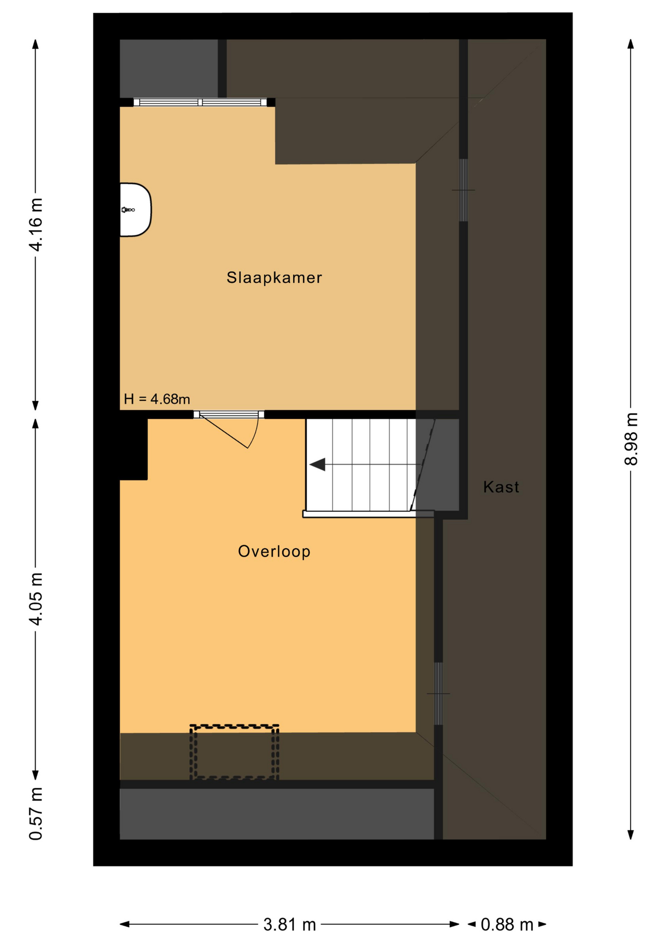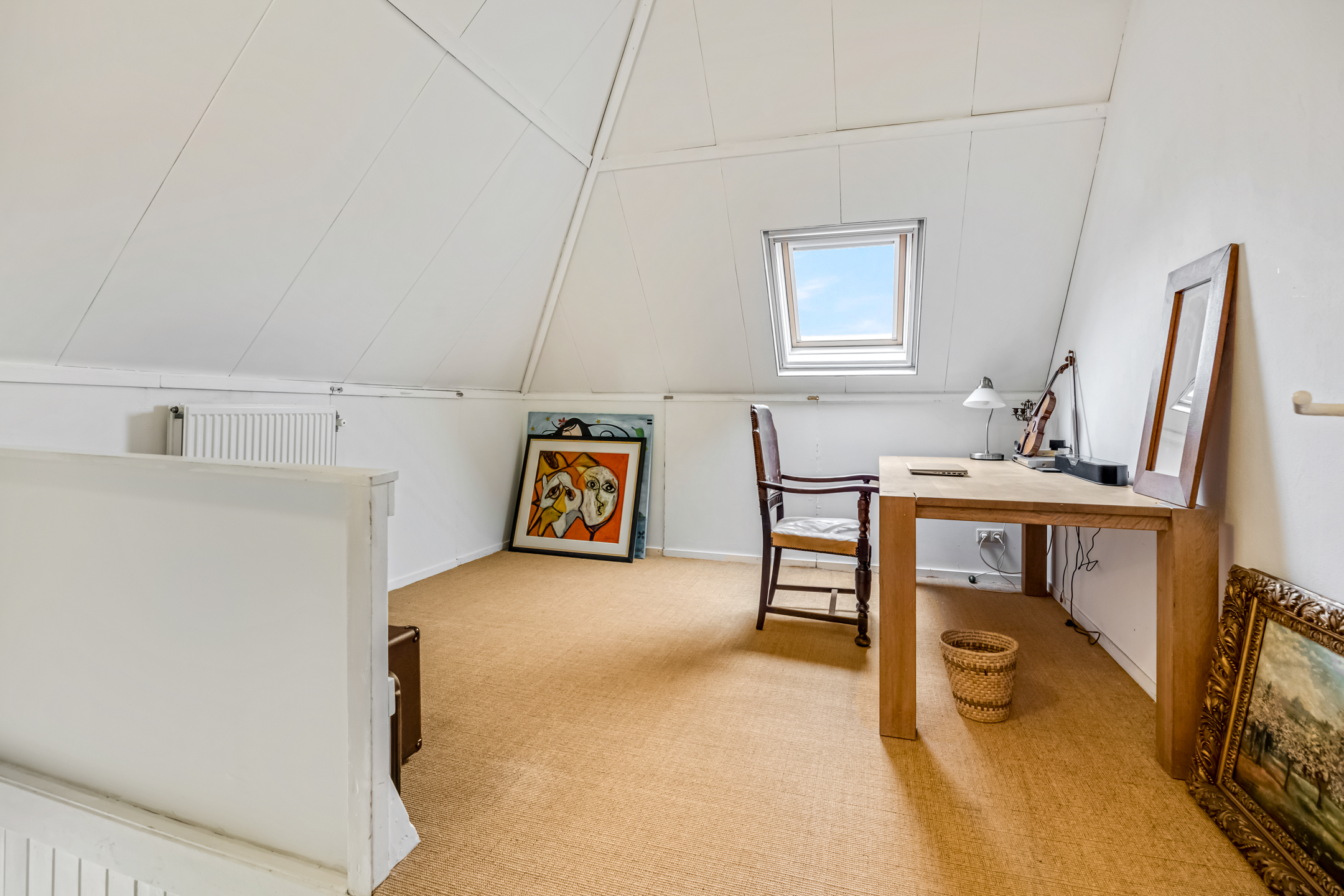 2e verdieping: bereikbaar via vaste trap, ruime slaapkamer met wastafel en grote zolderruimte met mogelijkheid voor extra kamer(s).