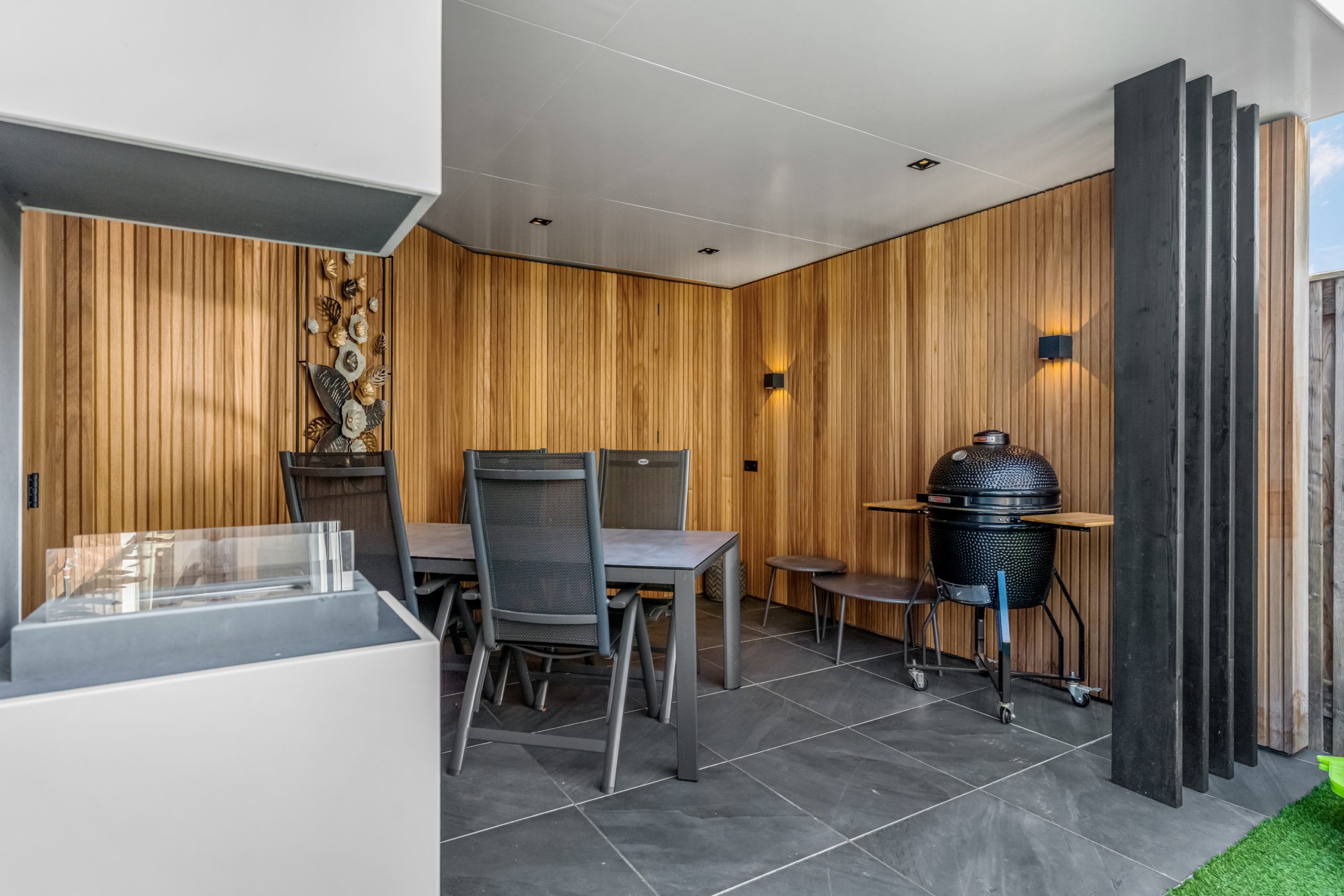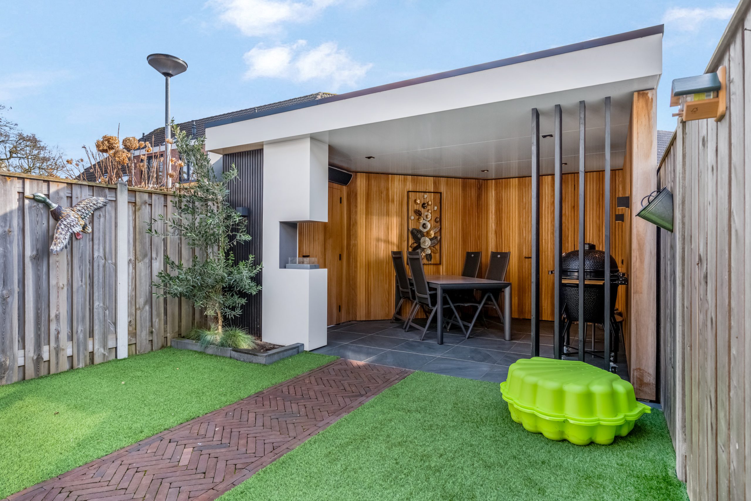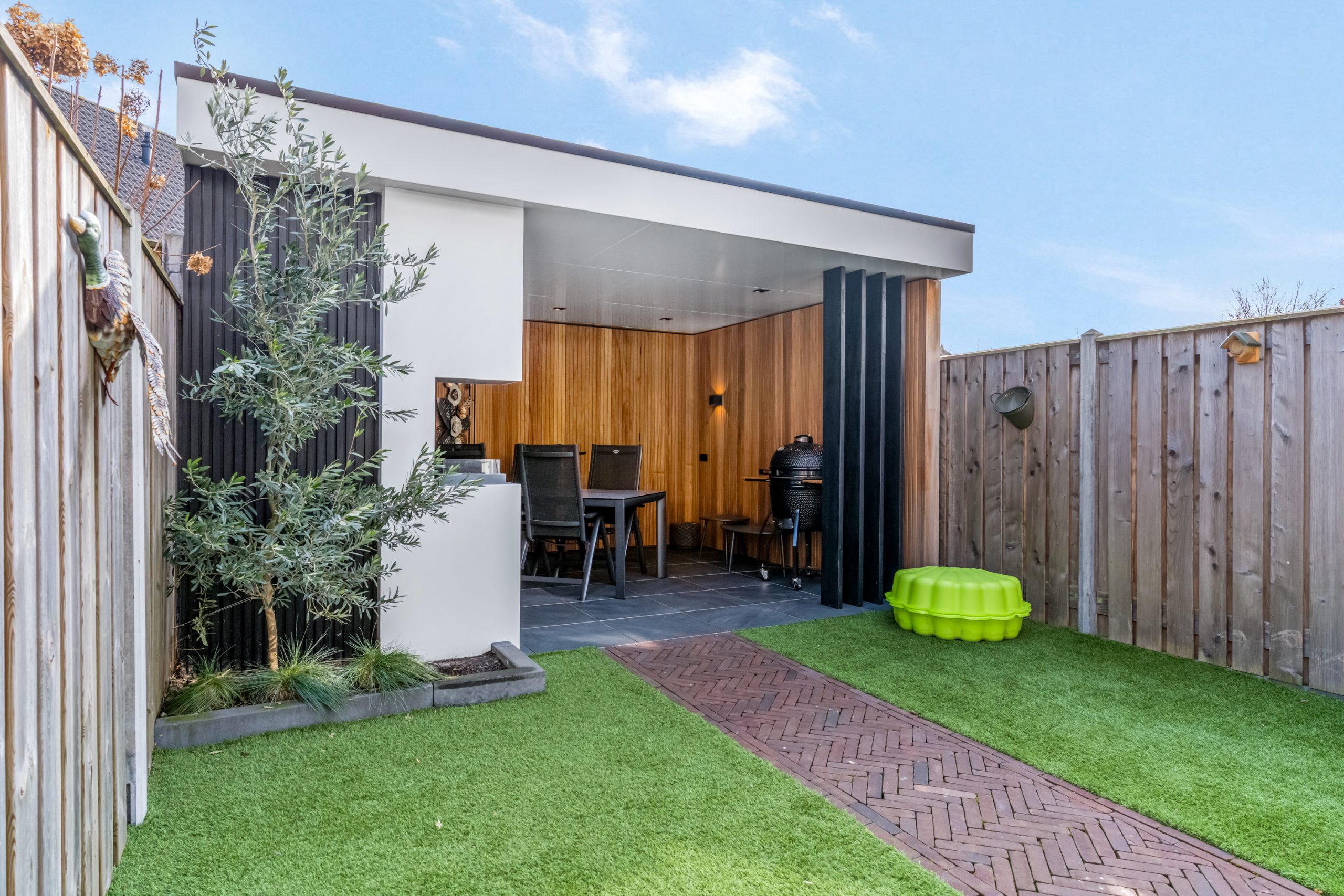 De achtertuin is onderhoudsvriendelijk aangelegd en biedt volop privacy. Achter in de tuin bevindt zich een prachtige, moderne veranda met houten afwerking, een echte eyecatcher! Hier kun je het hele jaar door genieten van lange zomeravonden, gezellige etentjes of een ontspannen moment voor jezelf. De tuin is bovendien voorzien van een achterom.