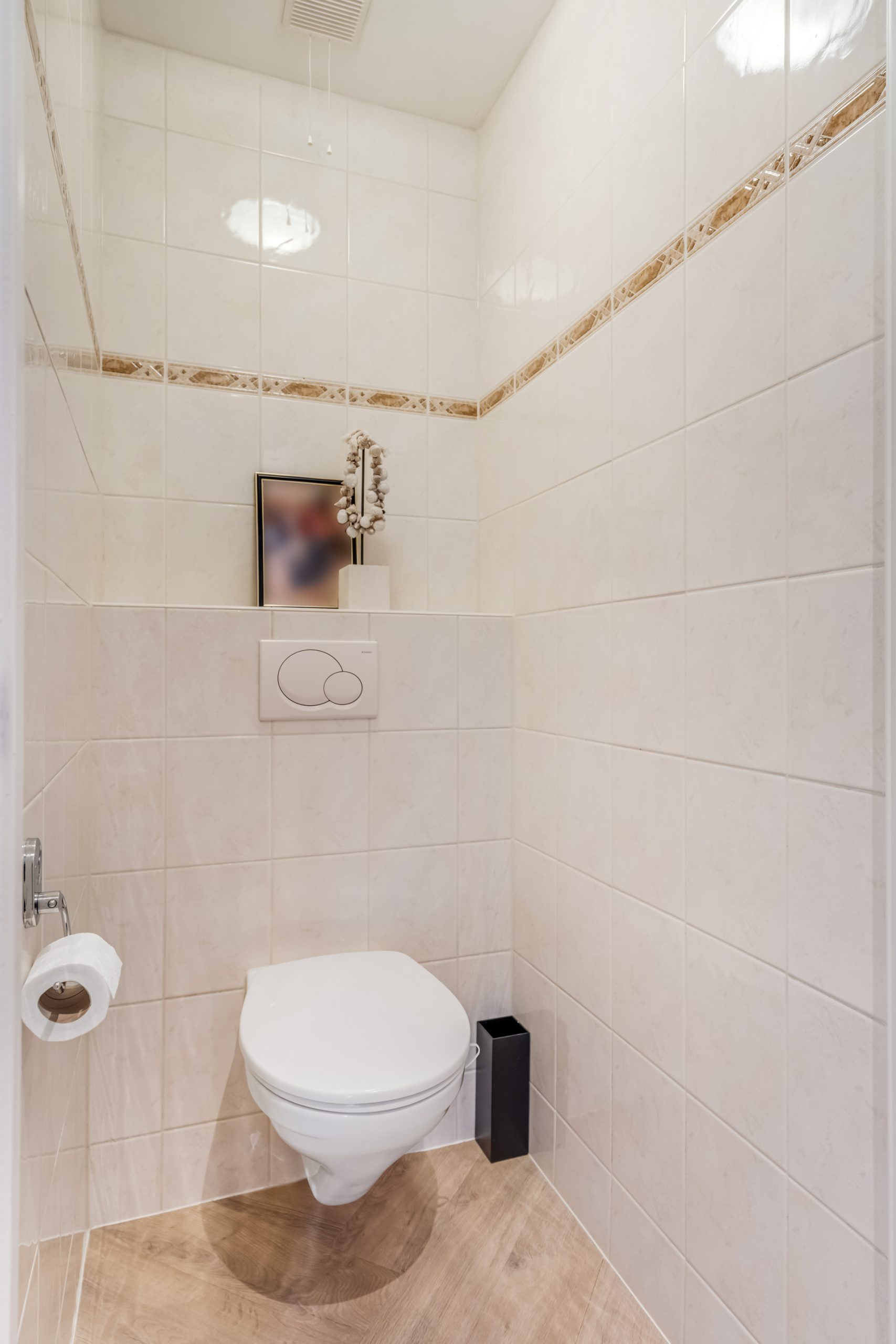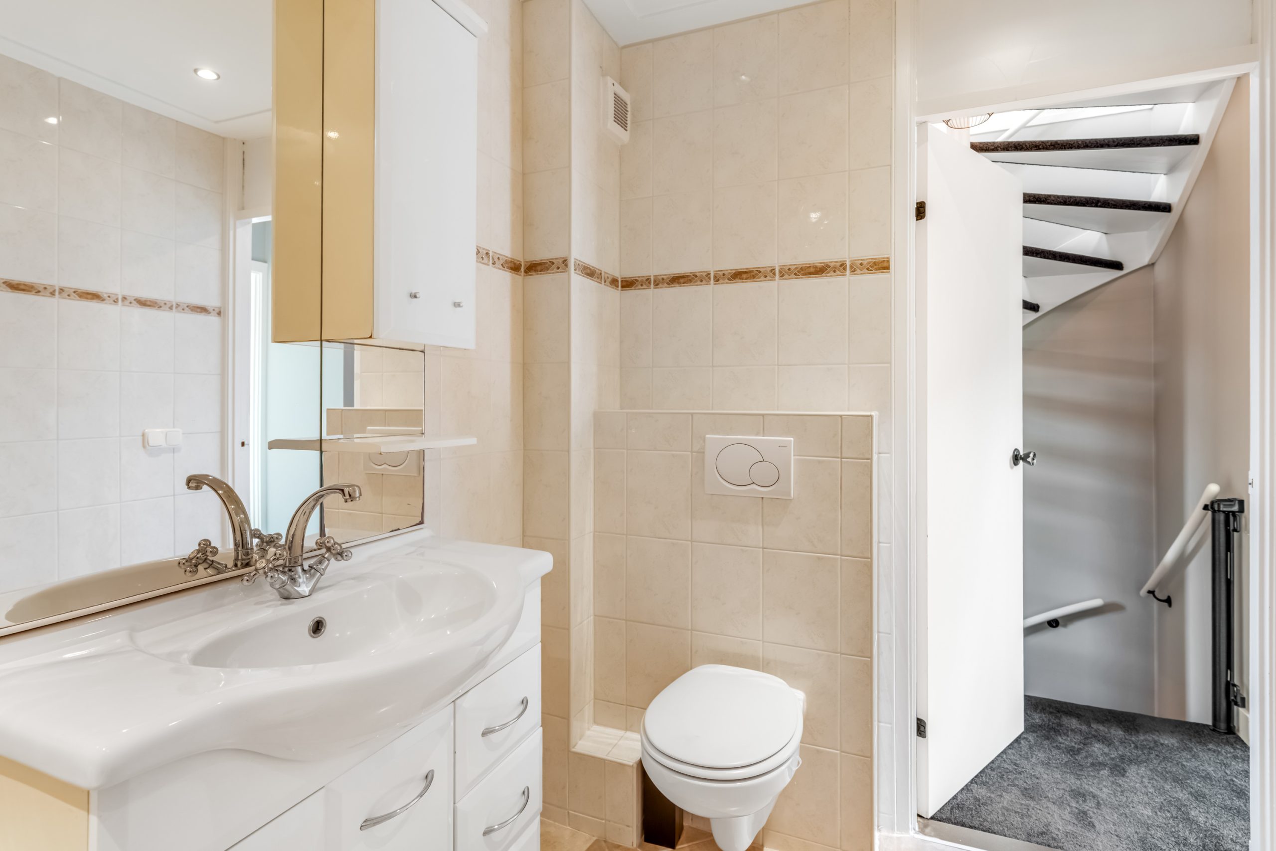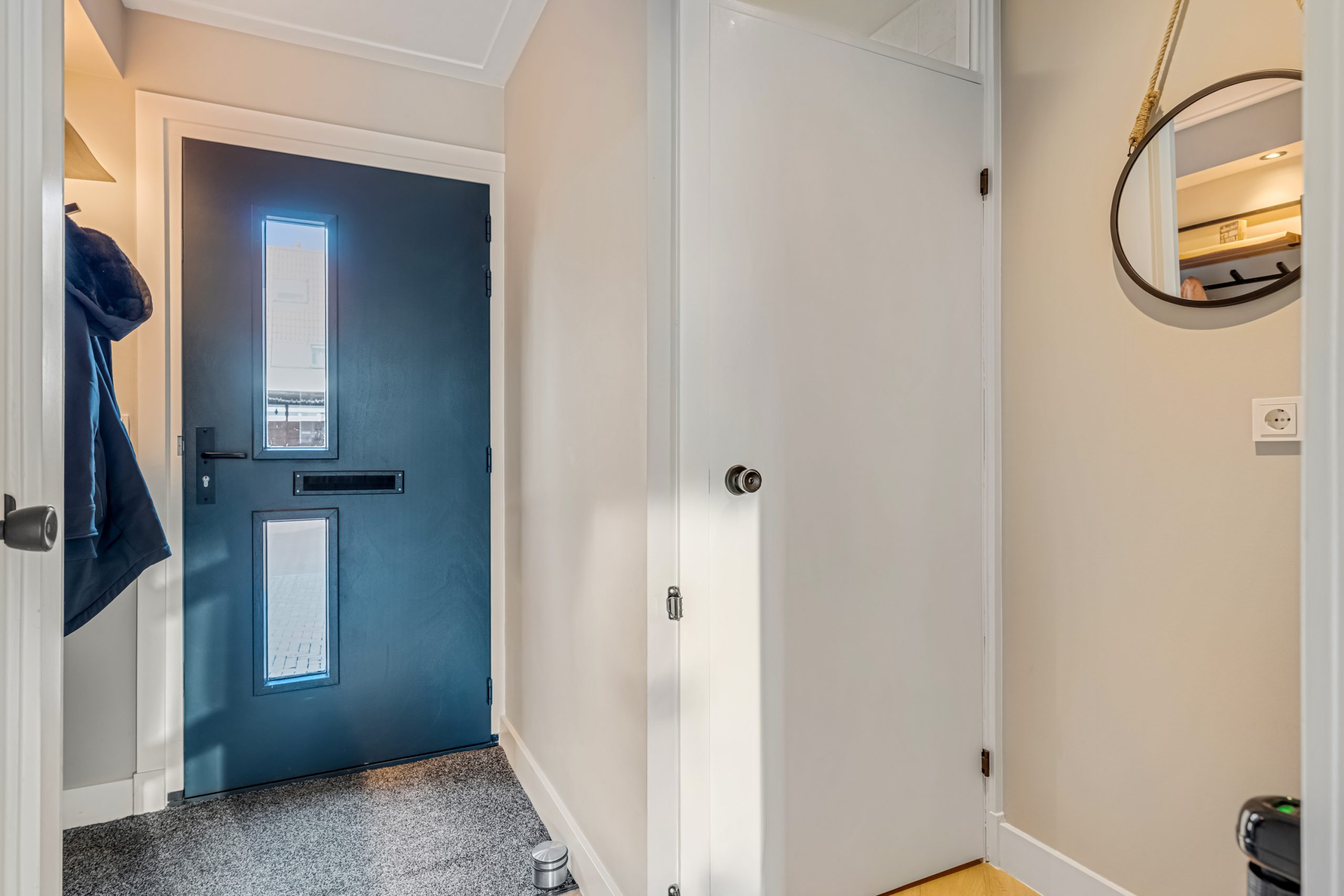 Via de verzorgde voortuin met parkeergelegenheid op eigen terrein, bereik je de entree. In de hal bevinden zich het toilet, de meterkast en de trap naar de eerste verdieping.