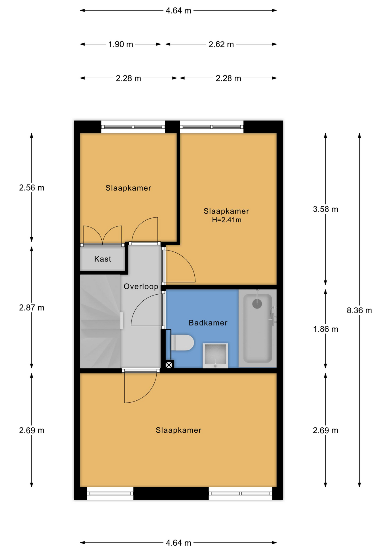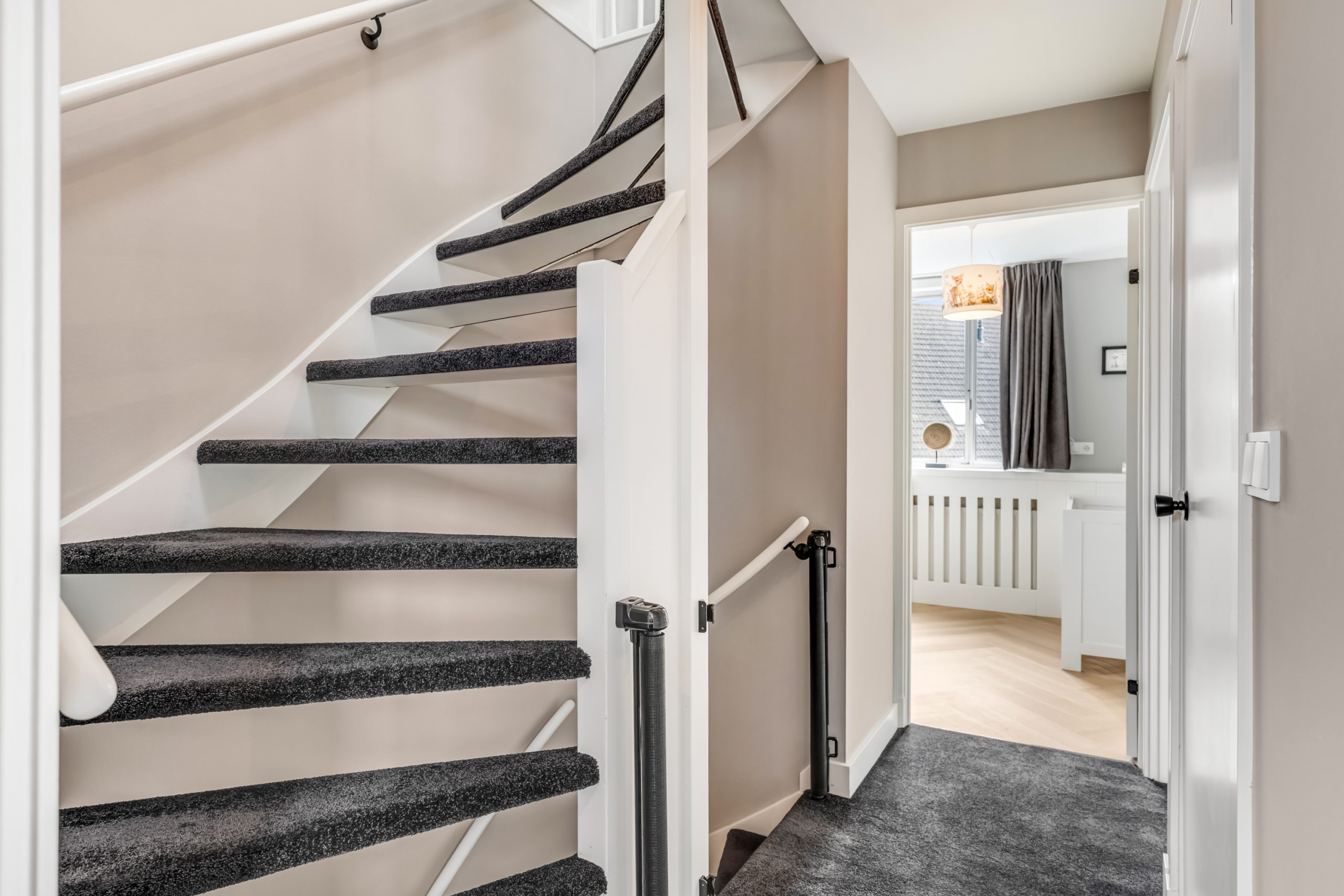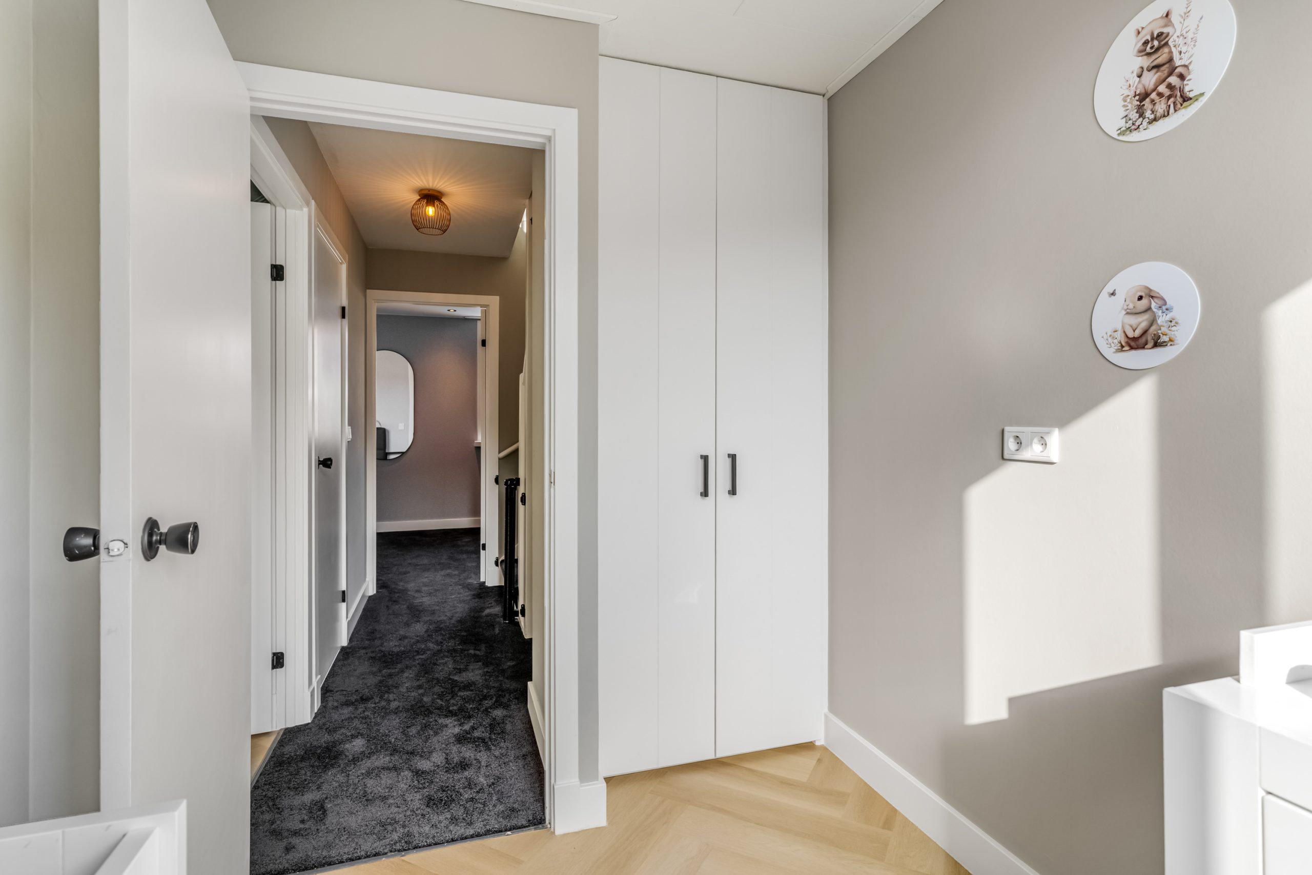 De overloop biedt toegang tot drie slaapkamers, elk met een prettig formaat. De kamers zijn netjes afgewerkt en praktisch in te delen als slaapkamer, kinderkamer of thuiswerkplek.