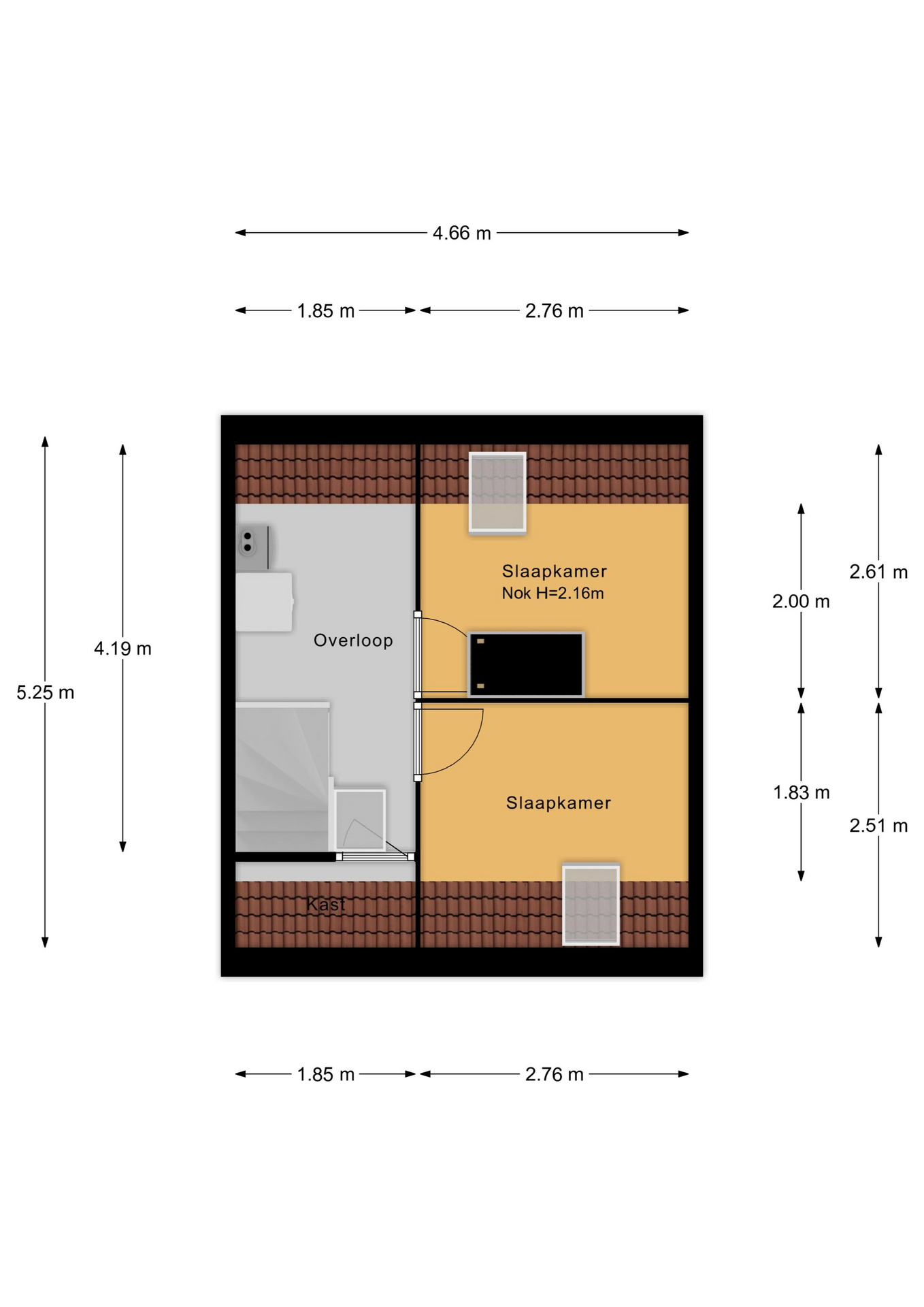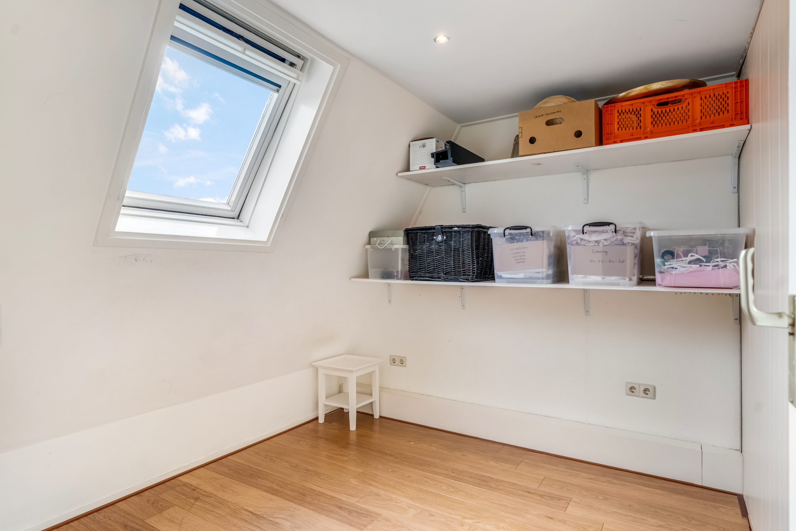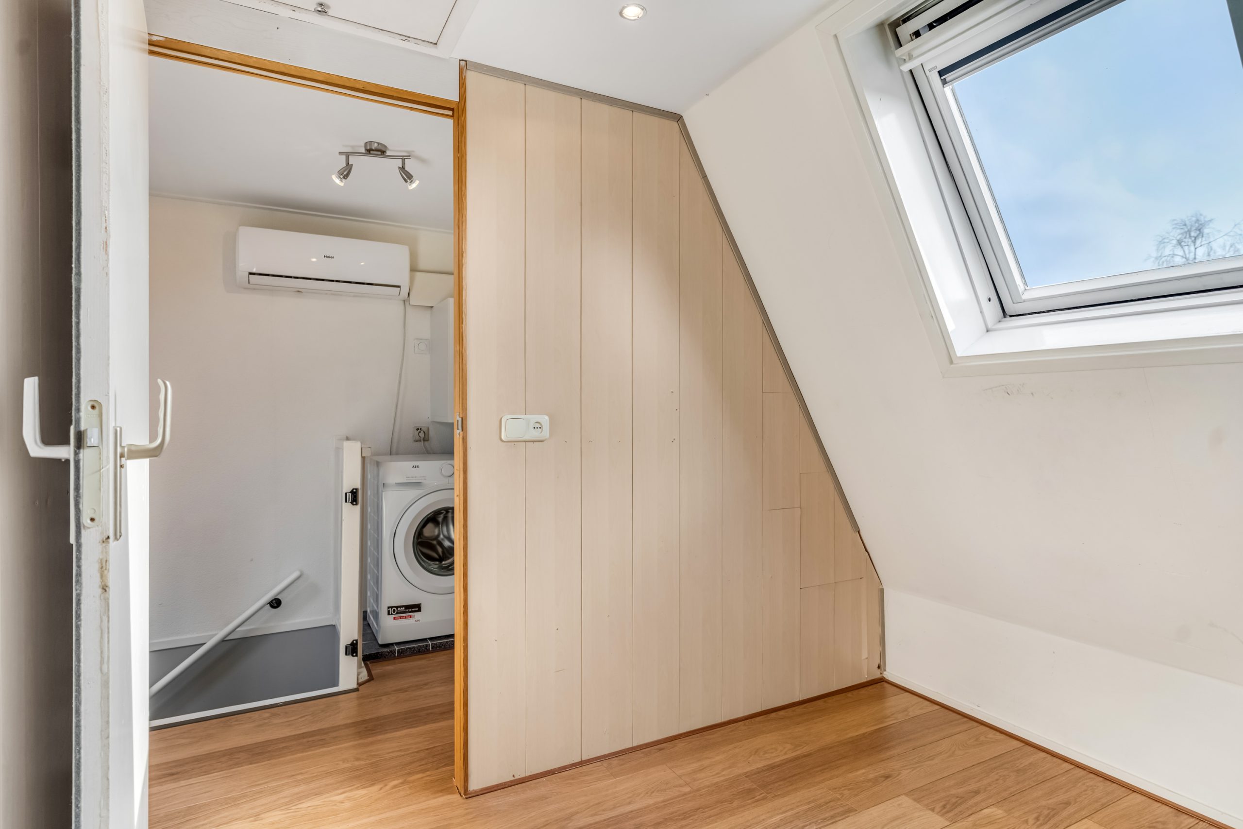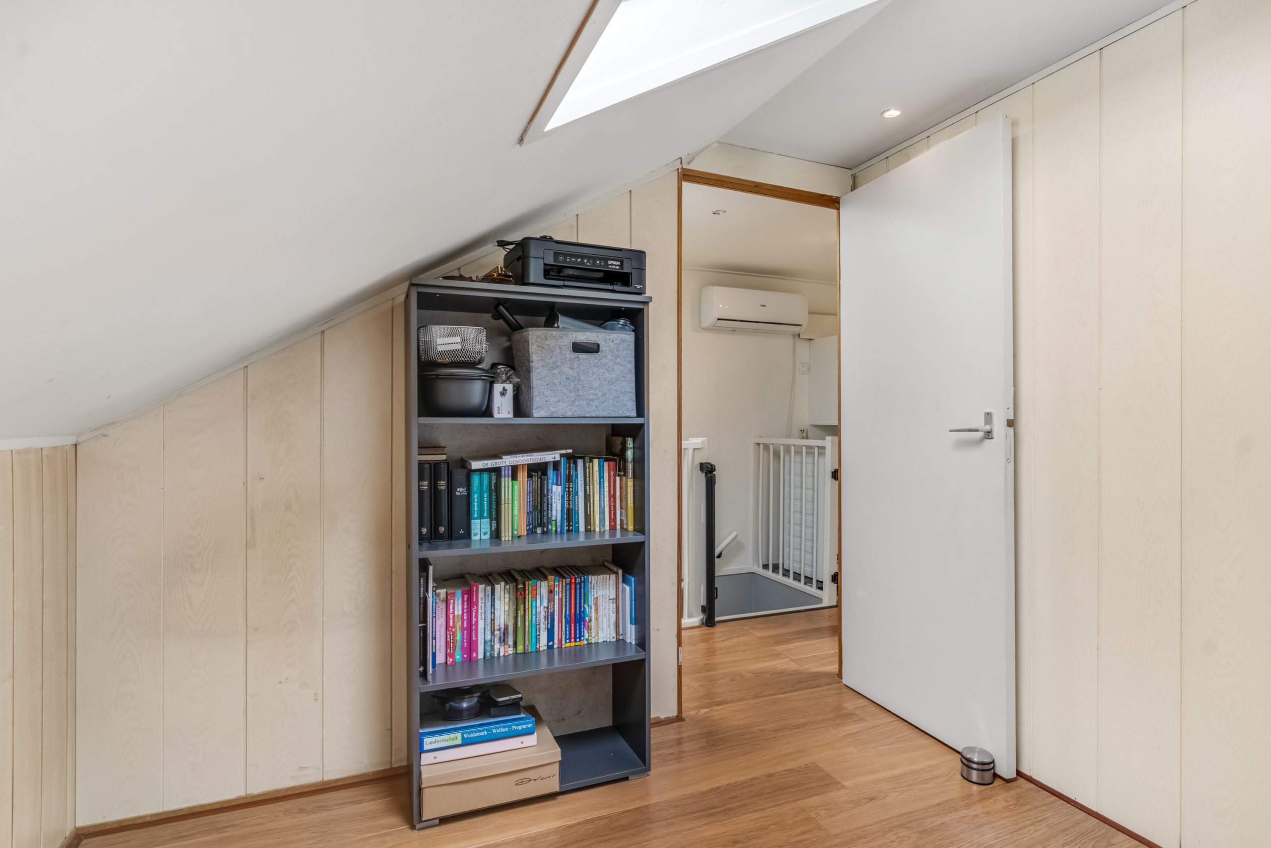 Via een vaste trap bereik je de tweede verdieping. Deze verrassend ruime verdieping is dankzij de aanwezige dakramen heerlijk licht en comfortabel. Hier zijn al twee volwaardige slaapkamers gerealiseerd, wat deze verdieping bij uitstek geschikt maakt voor grotere gezinnen. Uiteraard lenen de kamers zich ook perfect als thuiswerkplek of hobbyruimte.