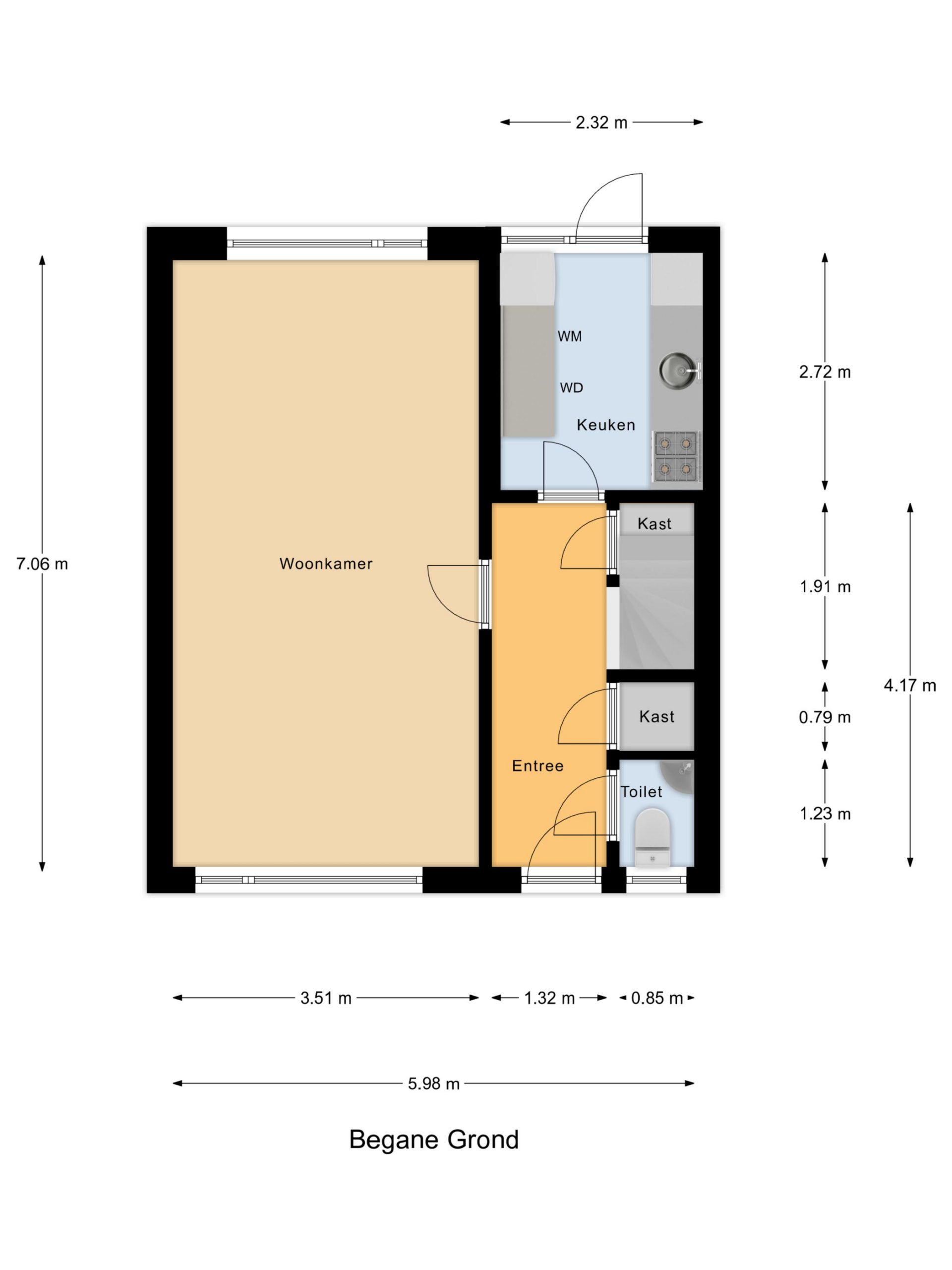 Via de entree betreed je de ruime woonkamer, waar dankzij de grote raampartijen aan beide zijden veel natuurlijk licht binnenvalt. Vanuit de entree is ook de keuken bereikbaar. Deze functionele keuken biedt volop mogelijkheden om geheel naar eigen smaak en wensen in te richten.