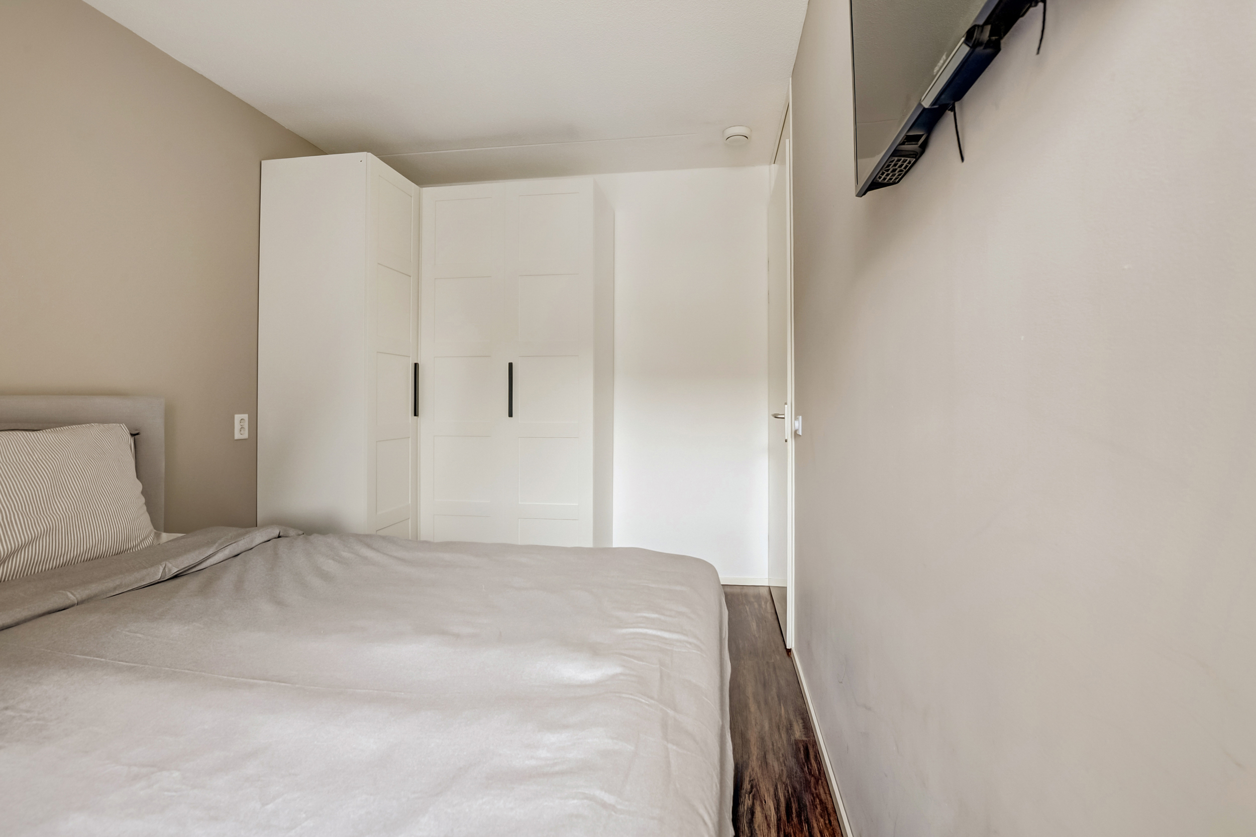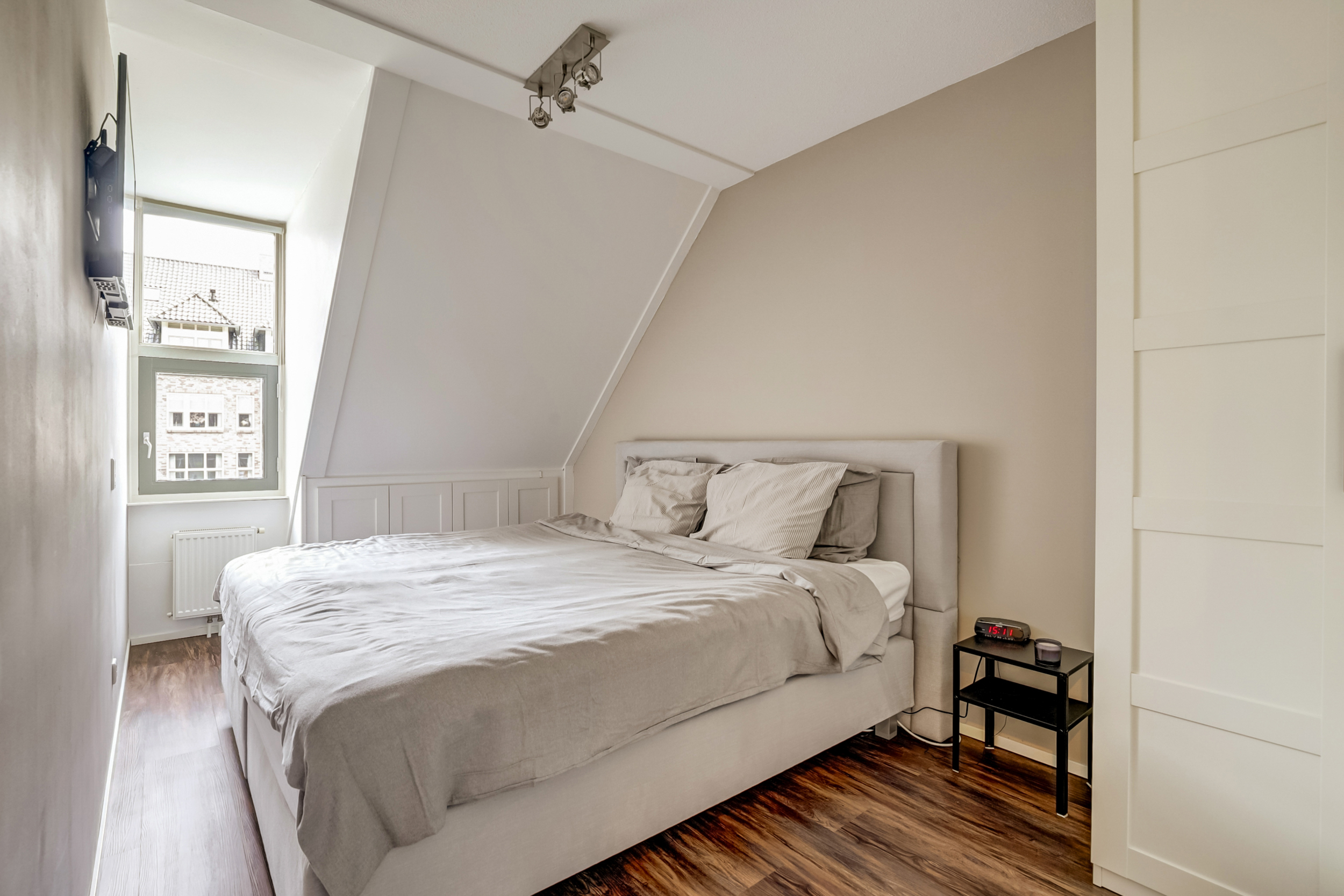 Op de tweede verdieping bevinden zich 2 slaapkamers, de badkamer en de bergruimte. De ruime ouderslaapkamer en de tweede slaapkamer zijn beiden voorzien van een dakkapel. De badkamer beschikt over een douchecabine en een badmeubel. In de bergruimte, die vanuit de hal bereikbaar is, hangt de CV ketel. Deze opslagruimte valt op vanwege zijn grote, om nog maar niet te spreken over de ruime vliering welke via een vlizotrap bereikbaar is.