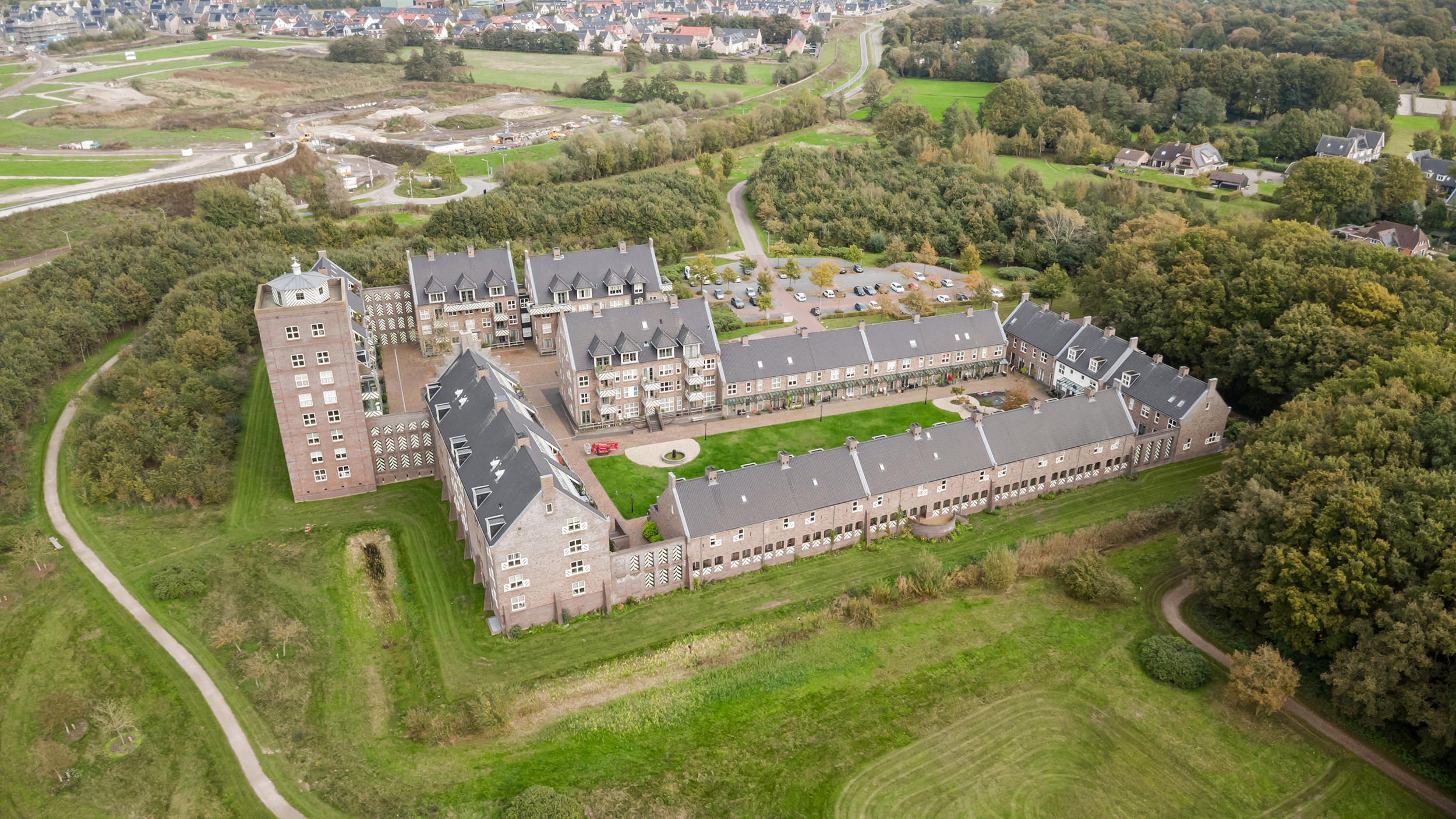 Dit in de vorm van een burcht opgetrokken appartementencomplex is gerealiseerd in 2009 en omvat 103 appartementen. Tot in de kleinste details is nagedacht om dit gebouw uniek te maken. Denk aan het prachtige tegelwerk wat gebruikt is in de algemene ruimten, de houten kruiskozijnen, en wat te denken van de statige oprijlaan met brug welke toegang geeft tot de twee binnenpleinen met authentieke fonteinen. Via de parkeerkelder is er ook toegang tot de uitkijktoren, waar je een prachtig uitzicht hebt over de gehele omgeving.