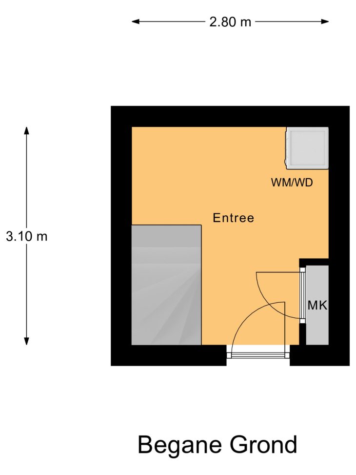Op de begane grond bevindt zich een ruime hal, die momenteel in gebruik is als berging. Hier vindt u tevens de opstelplaats voor de wasmachine en droger.