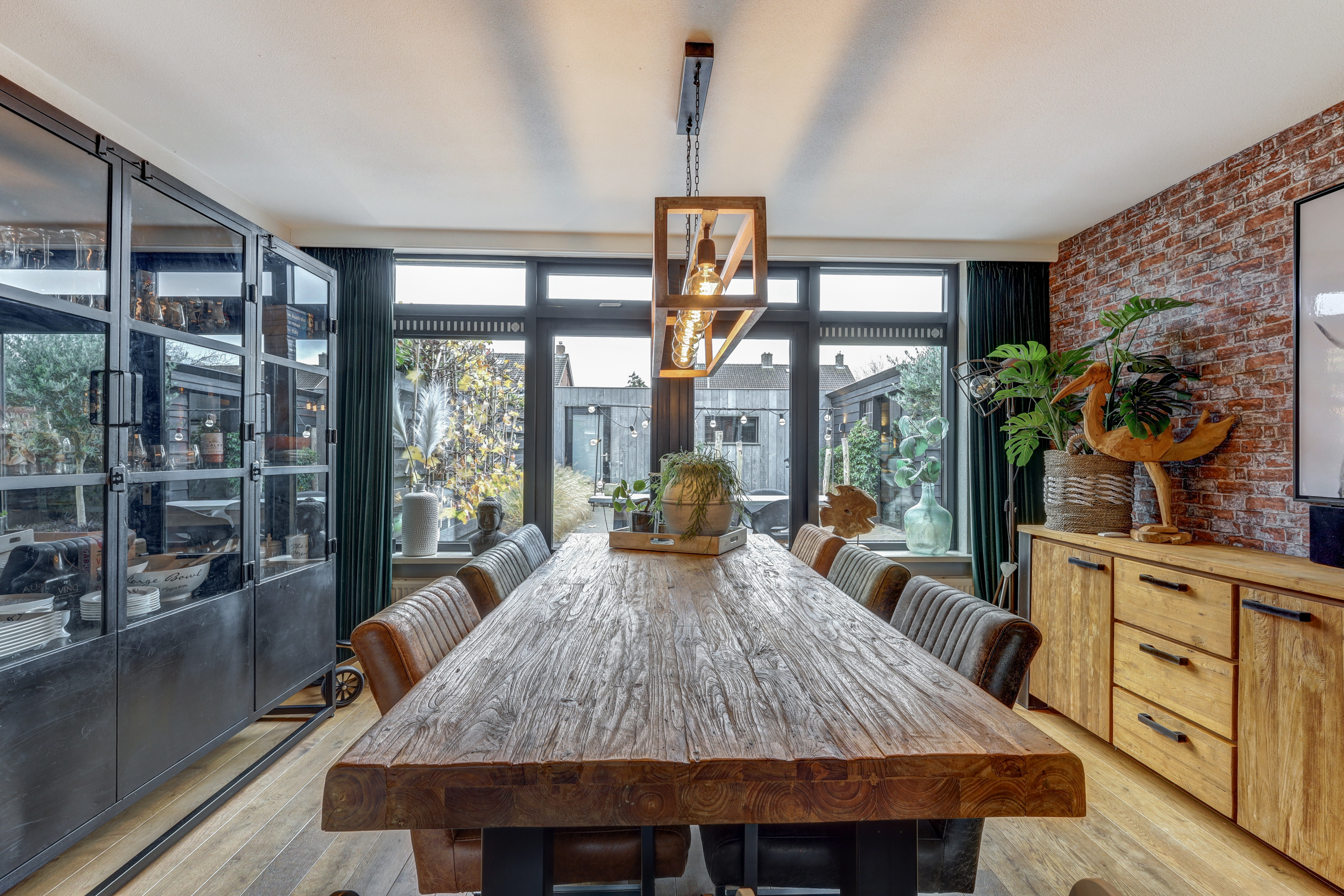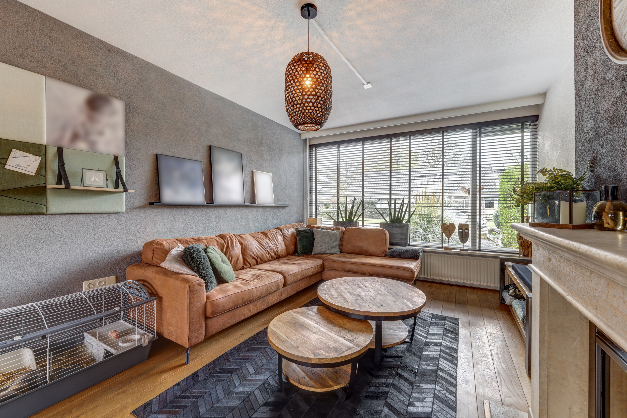 De woonkamer voelt door de hoekligging ruim en licht. De grote ramen zorgen ervoor dat het daglicht goed binnenkomt, wat direct bijdraagt aan een rustige sfeer. De indeling is eenvoudig en daardoor heel bruikbaar. De gashaard is een mooie toevoeging voor de avonden waarop het net wat frisser is. Je zet hem aan en hebt meteen een warme, prettige sfeer.