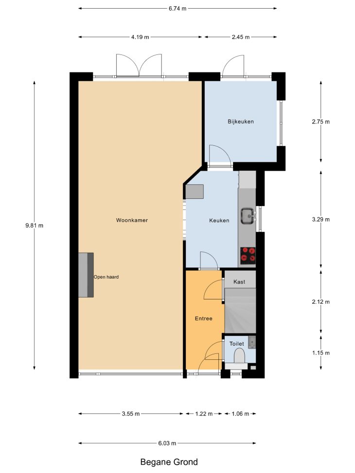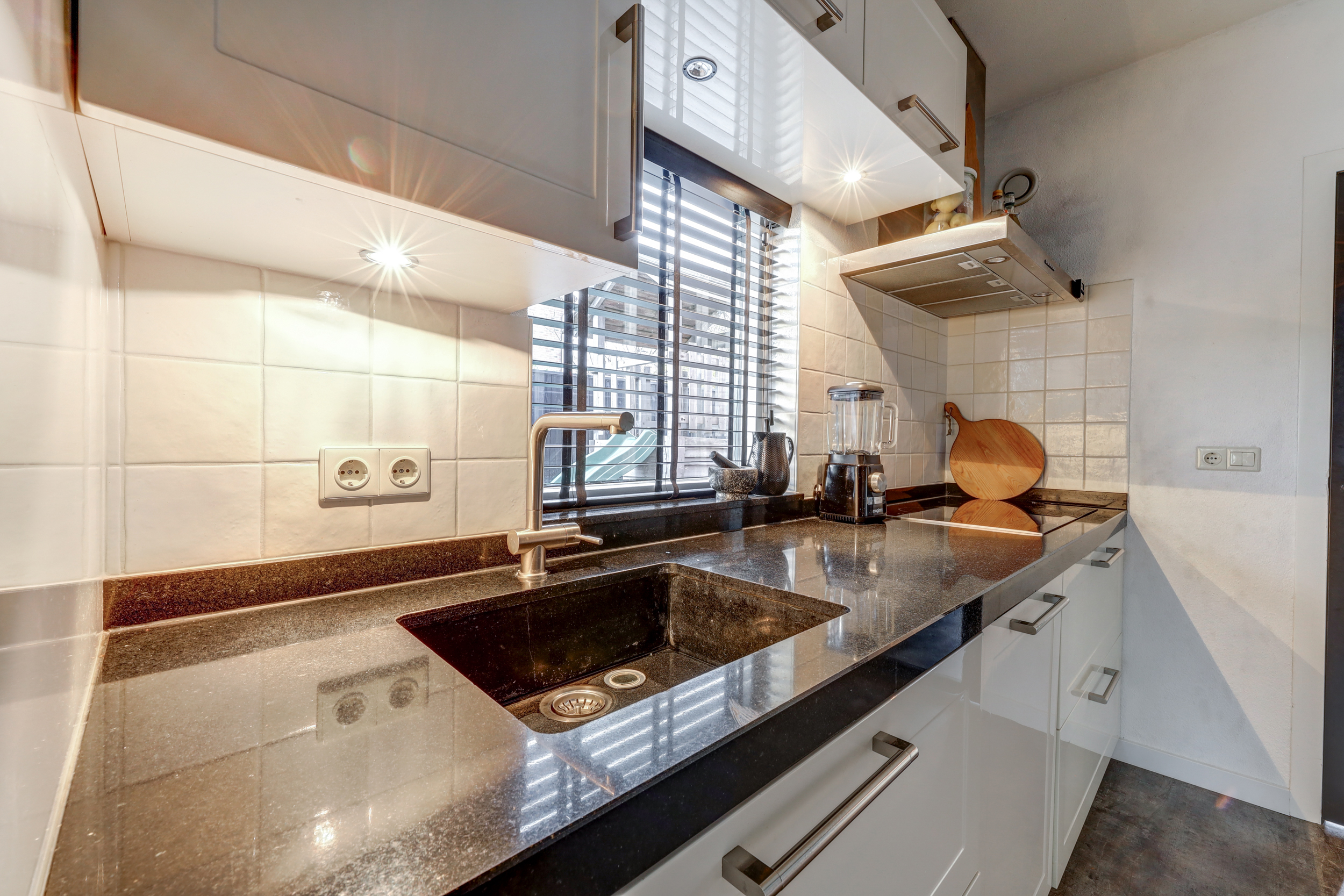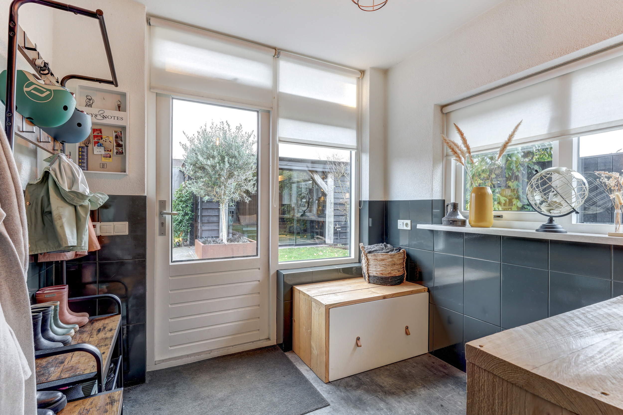 De keuken sluit logisch aan op de woonkamer en is voorzien van een nette, lichte inbouwkeuken met alle gewenste apparatuur. Direct daarnaast ligt de bijkeuken, een ruimte die je al snel gaat waarderen. Hier kun je de wasmachine kwijt, extra voorraad of schoonmaakspullen. Ook biedt deze ruimte de doorgang naar de tuin.