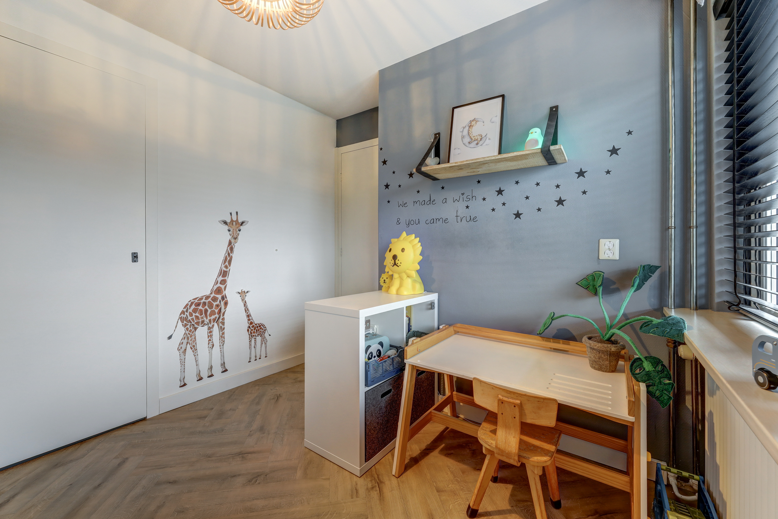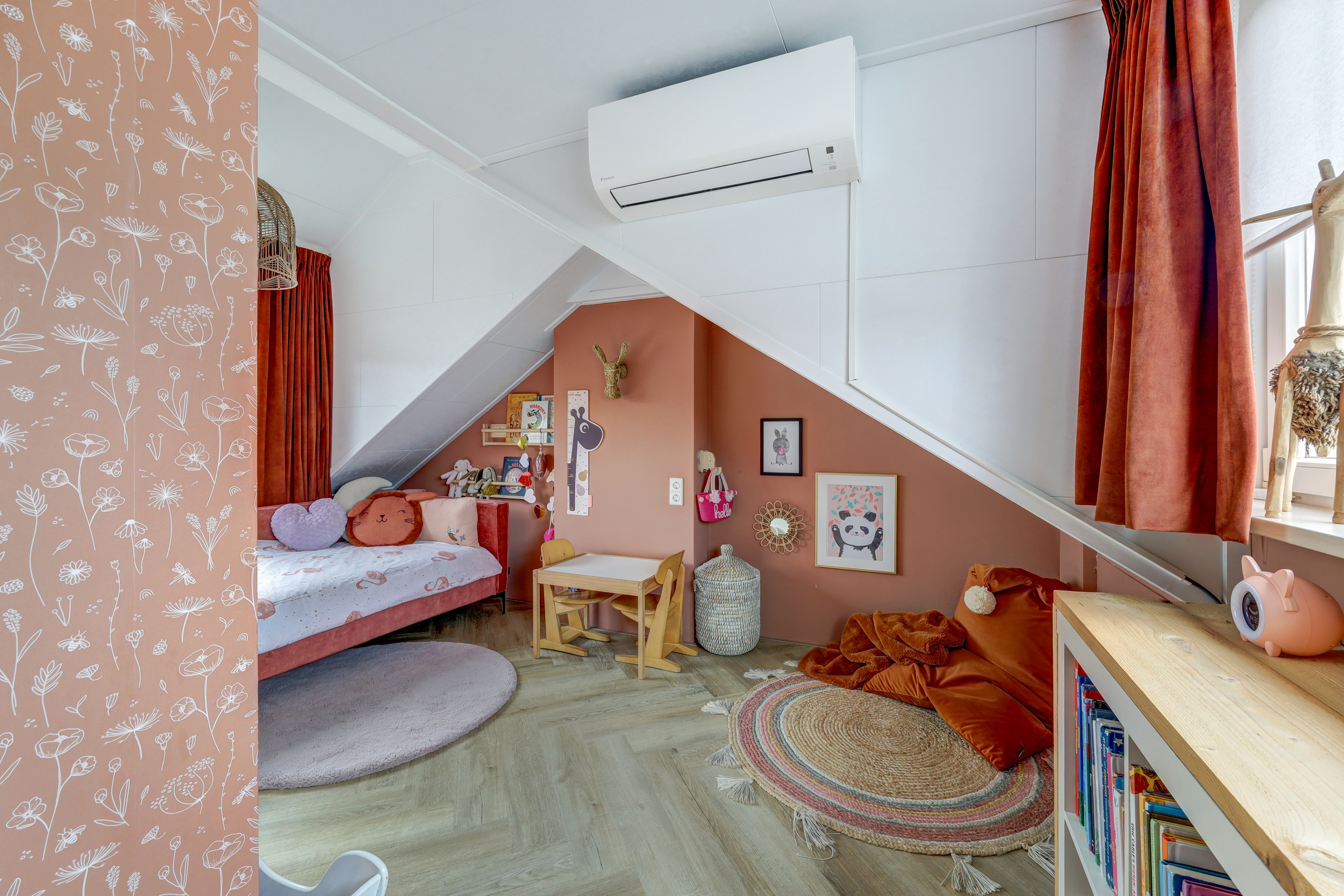 De woning beschikt over vijf slaapkamers, verdeeld over de verdiepingen. Door de nokverhoging en de dakkapel aan de voorkant zijn er twee extra kamers ontstaan die volledig als volwaardige ruimtes gebruikt kunnen worden. Dat geeft veel flexibiliteit: denk aan een thuiskantoor, hobbykamer, logeerkamer of extra kinderslaapkamer. Eén van de slaapkamers is momenteel ingericht als inloopkast.