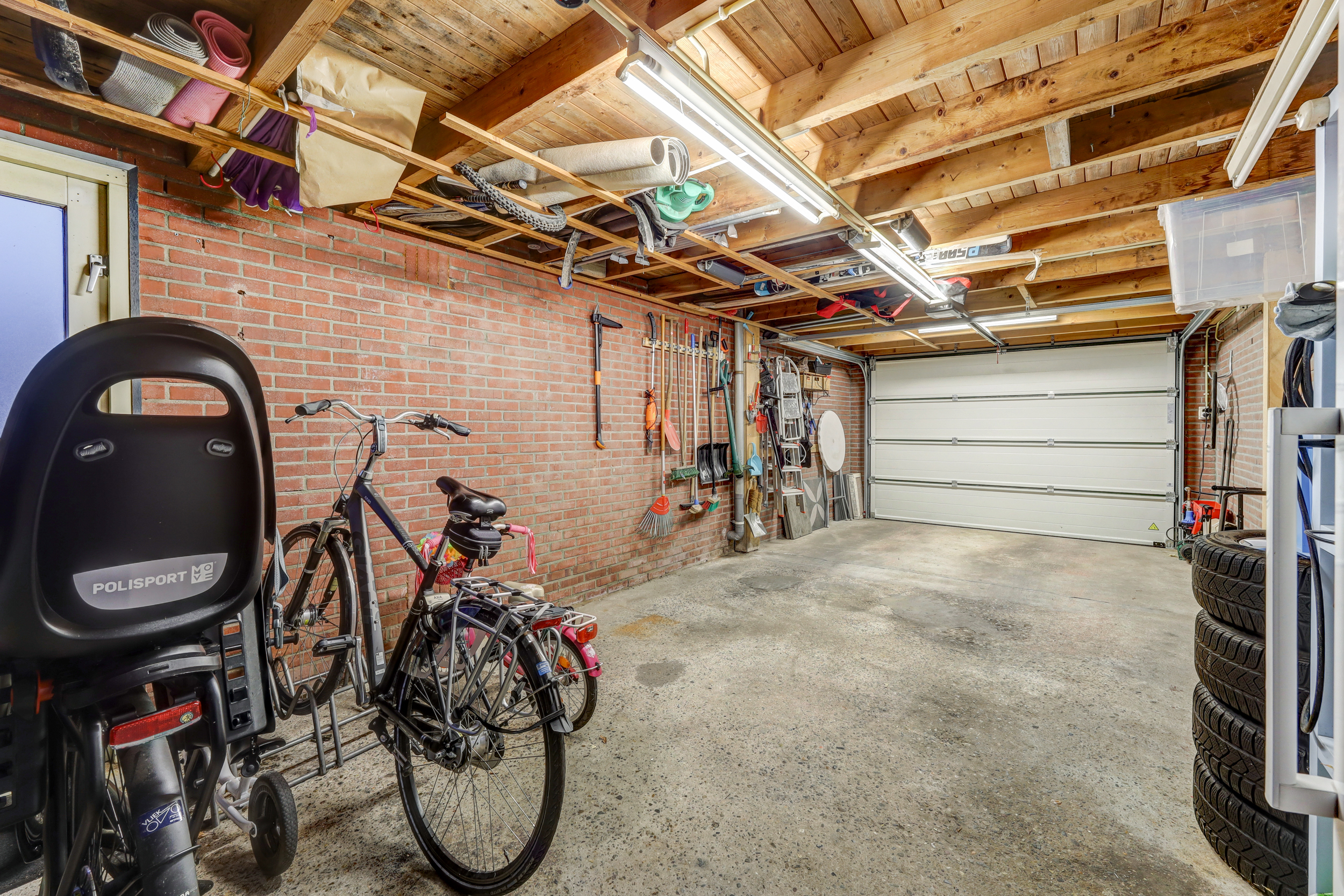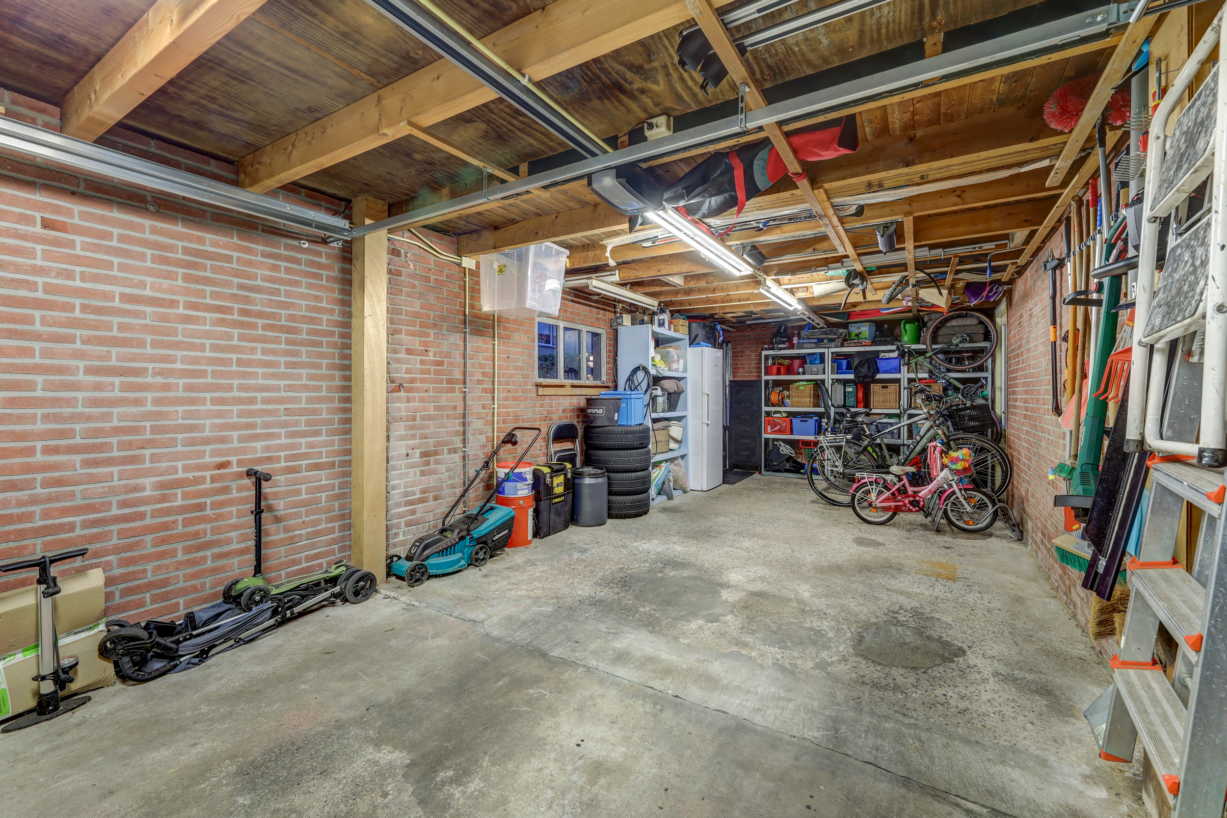 De uitgebouwde garage is een groot pluspunt. Je kunt hem gebruiken als opslagruimte, werkplek of hobbyruimte, zonder dat je op de leefruimte binnen inlevert. Ook is hier eventueel ruimte voor één auto. De oprit biedt daarnaast ruimte voor twee auto’s, waardoor je altijd voor de deur kunt parkeren.