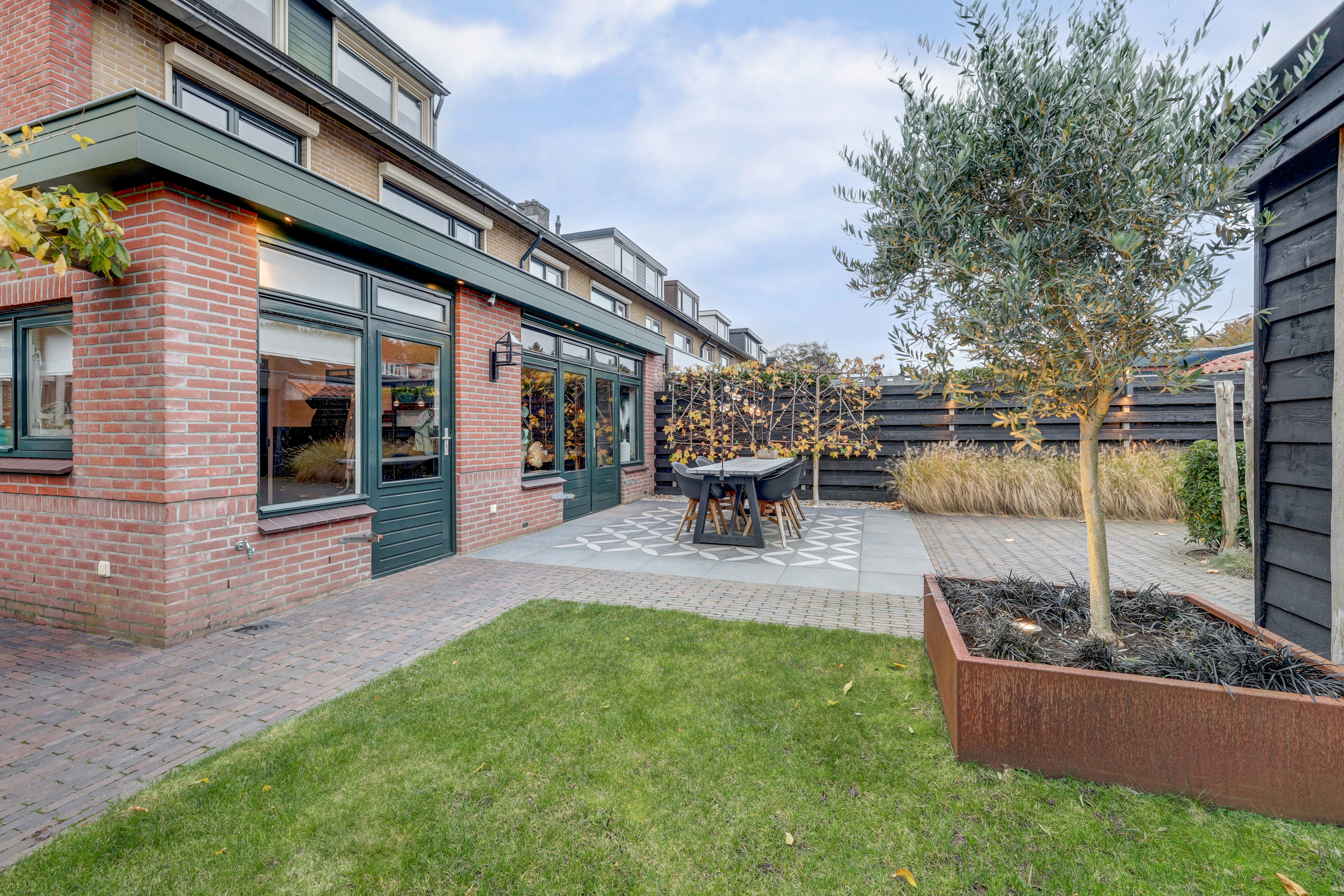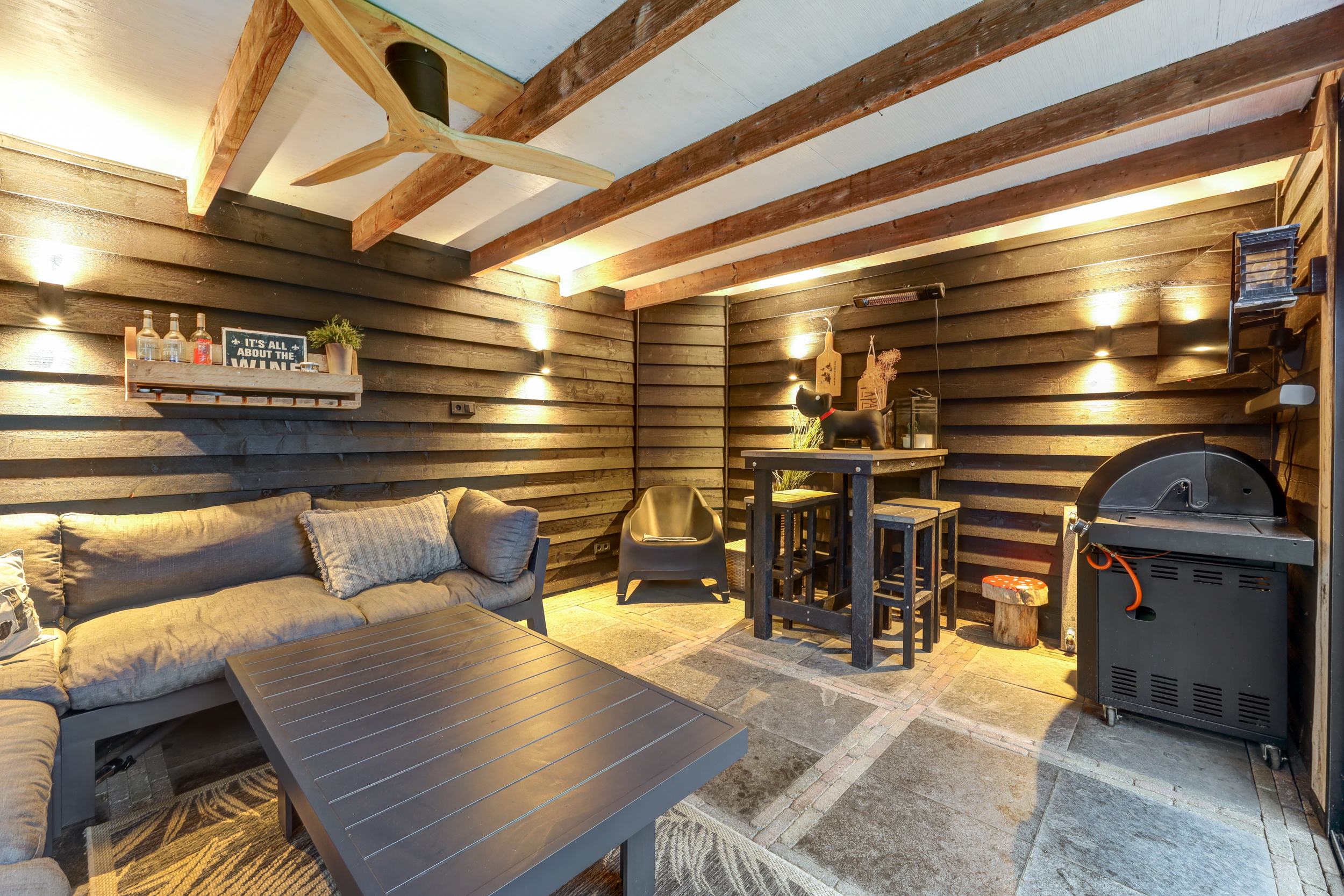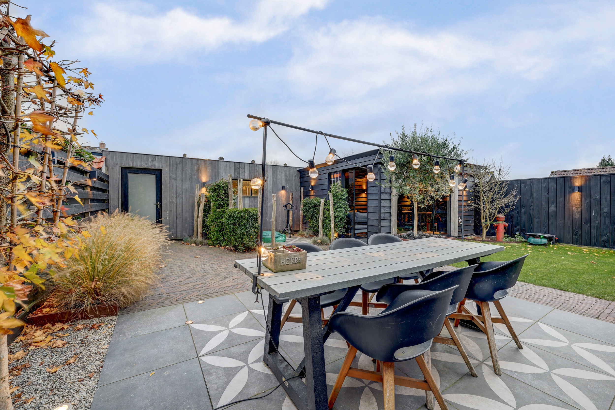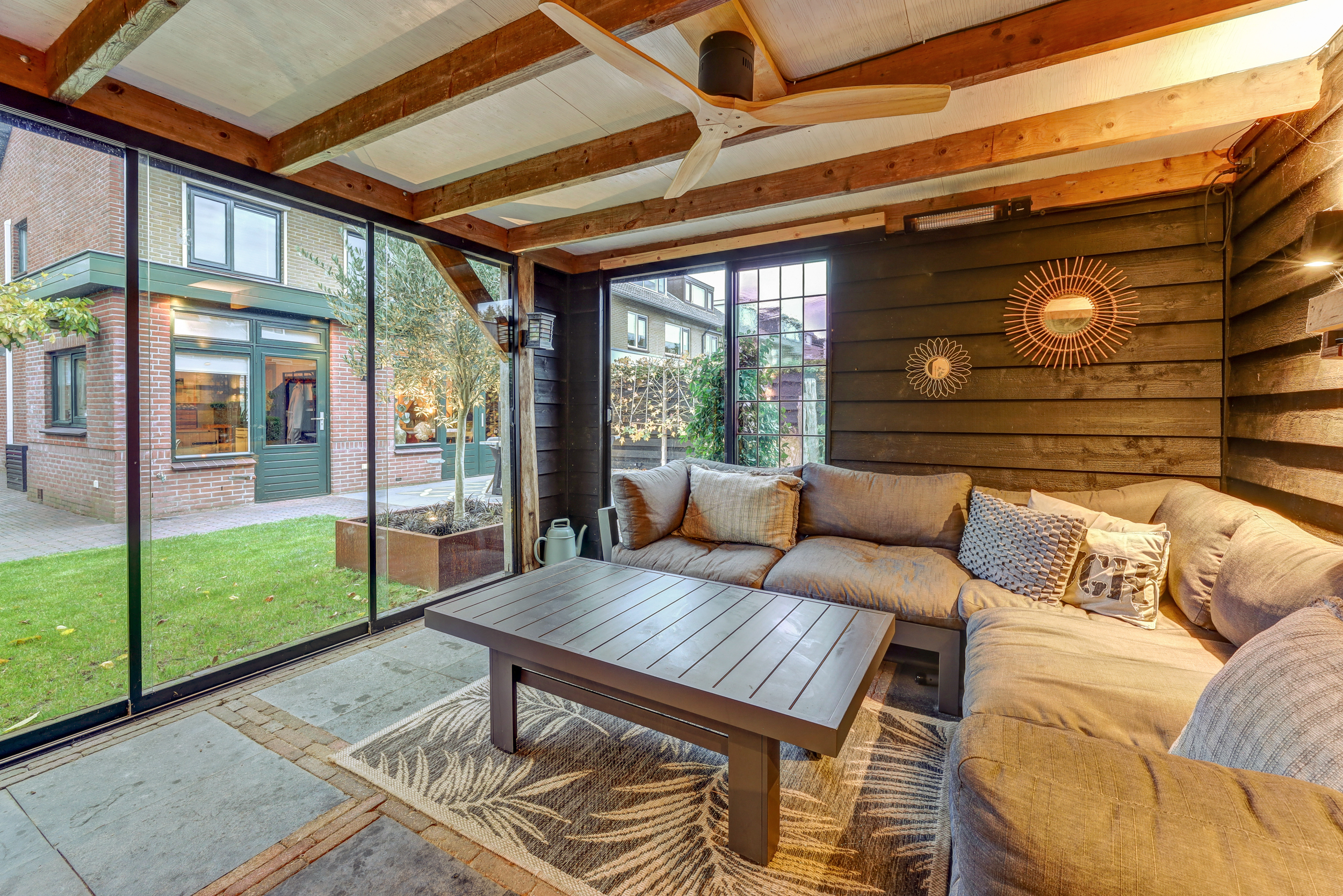 De achtertuin is in 2022 volledig vernieuwd en dat is op een nette, doordachte manier gedaan. De indeling is overzichtelijk, het onderhoud blijft beperkt en de moderne voorzieningen maken het gebruik comfortabel. De veranda is een fijne toevoeging: een plek waar je op warme dagen wat schaduw hebt en waar je ook bij minder weer gewoon buiten kunt zitten. Met een sproei-installatie, grondwaterpomp, tuinverlichting en voorbereidingen voor elektrisch laden is de tuin praktisch en toekomstgericht. Door de ligging op het zuiden heb je veel zon, maar dankzij de veranda en de ruime opzet kun je altijd makkelijk een ander plekje kiezen. De voortuin is in 2024 vernieuwd en geeft het geheel een verzorgde, rustige uitstraling zodra je komt aanlopen.